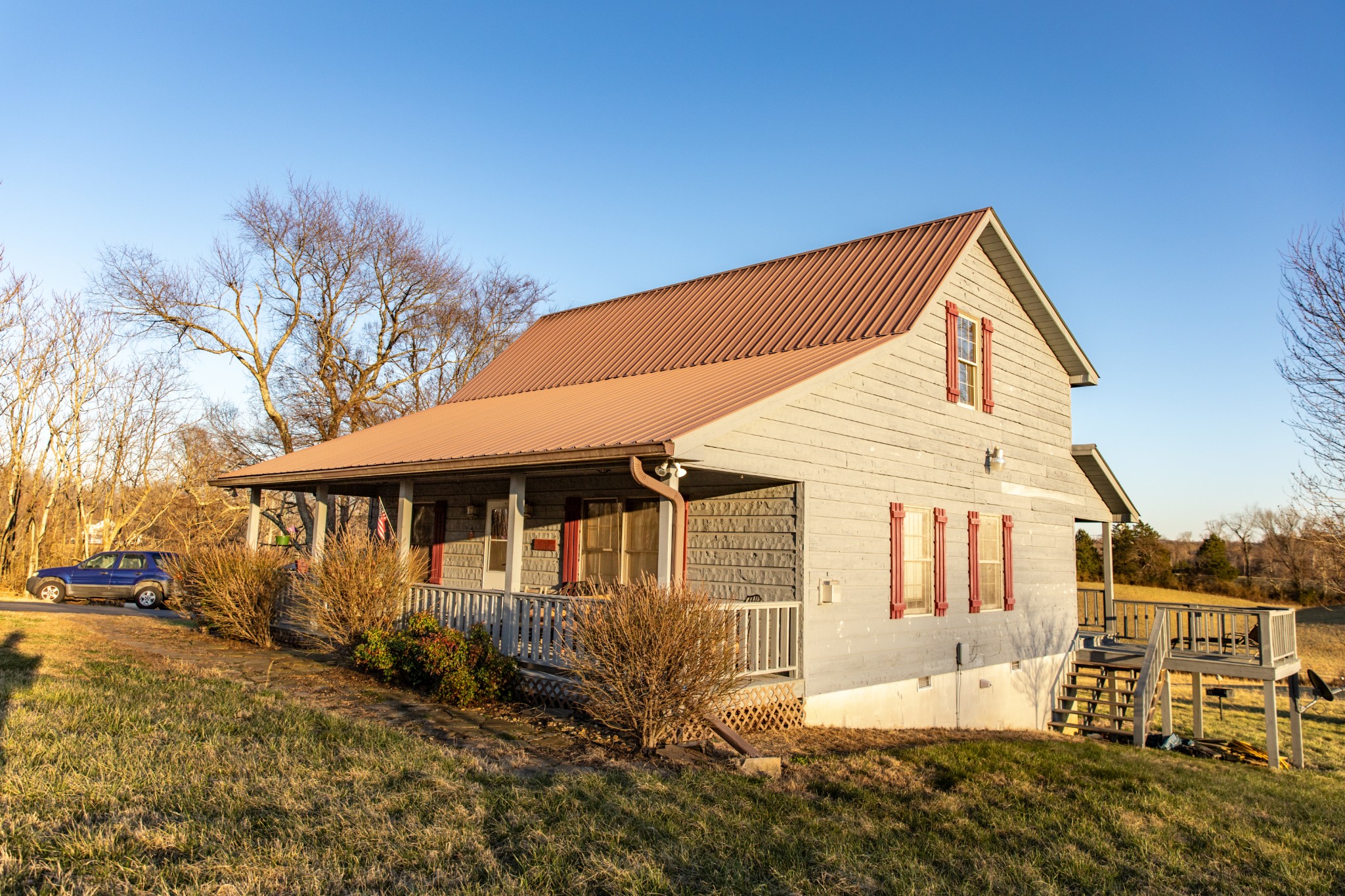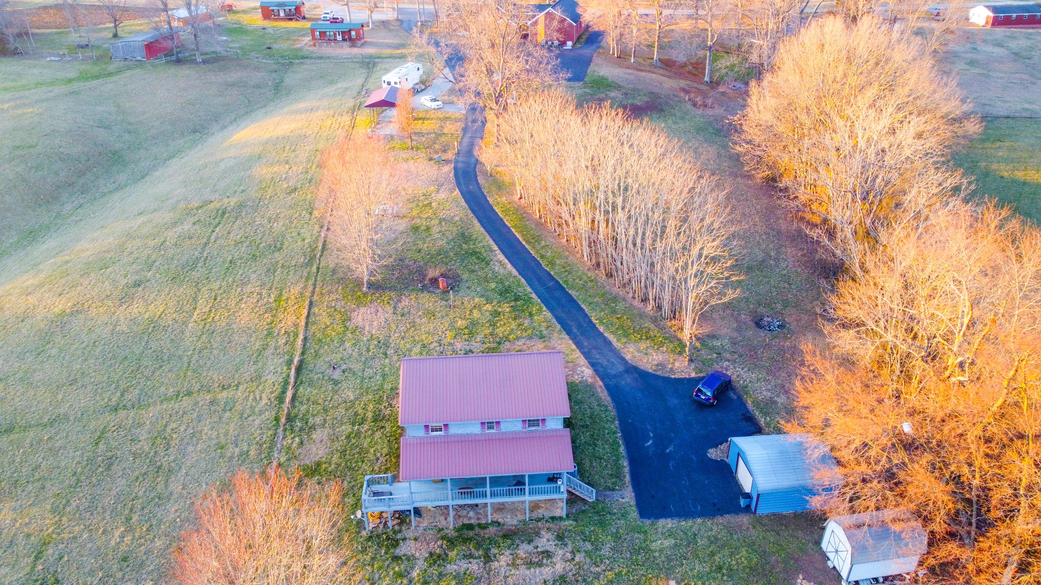 The perfect Dale Hollow Lake vacation or forever home. The setting is perfect unrestricted 1.17 acres surrounded by beautiful views of the hills and pastures. The main level has an open floor plan with vaulted ceilings and a fireplace. Also, the master suite with handy laundry in master bath is located on the main level. The upstairs is another full bath, spacious bedroom and an office/play area. Just imagine enjoying a cup of coffee on your covered porch looking at those views. The detached garage and outbuilding storage for your garden and lawn supplies. All this and just mintues away from several marinas.