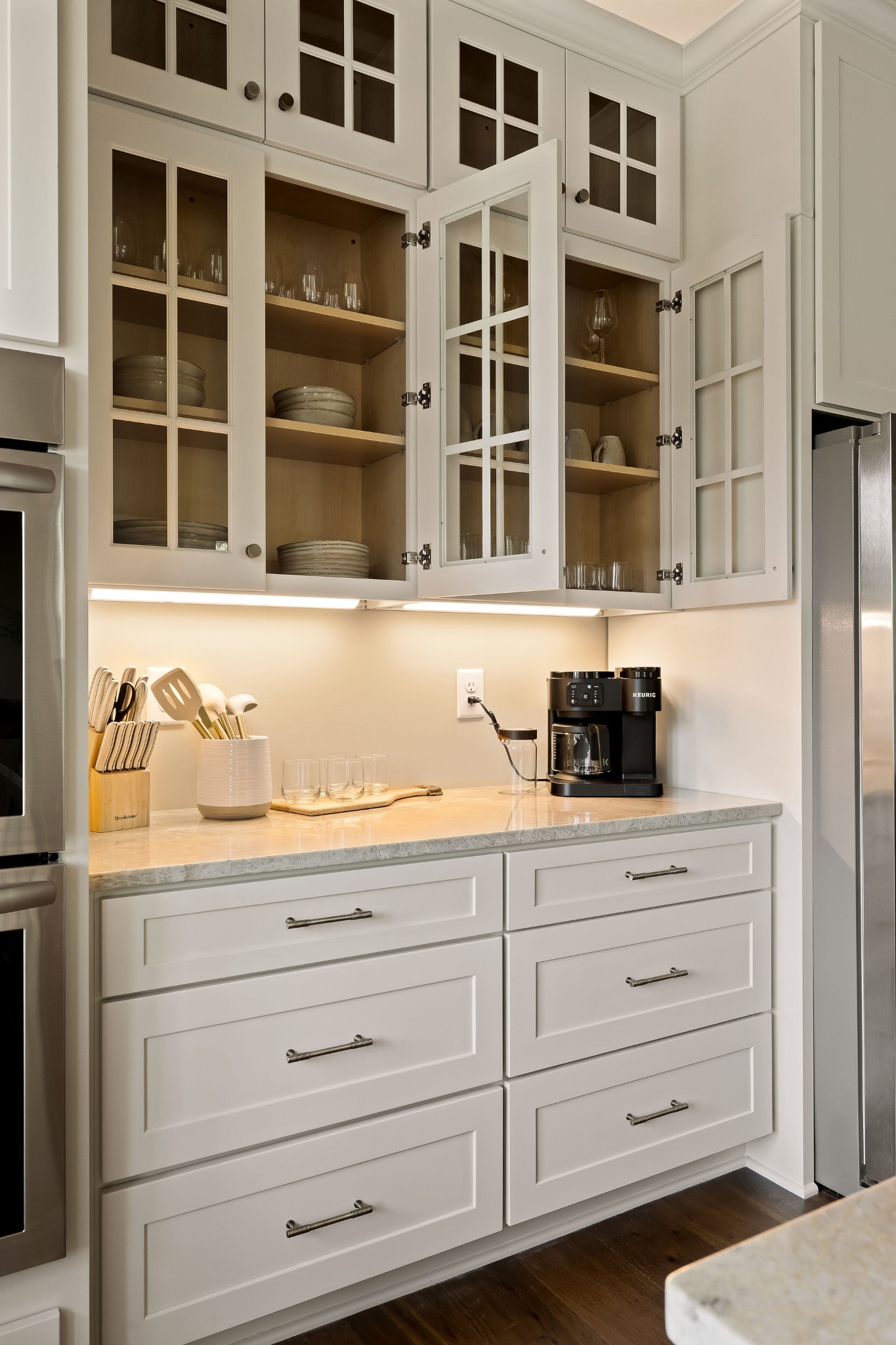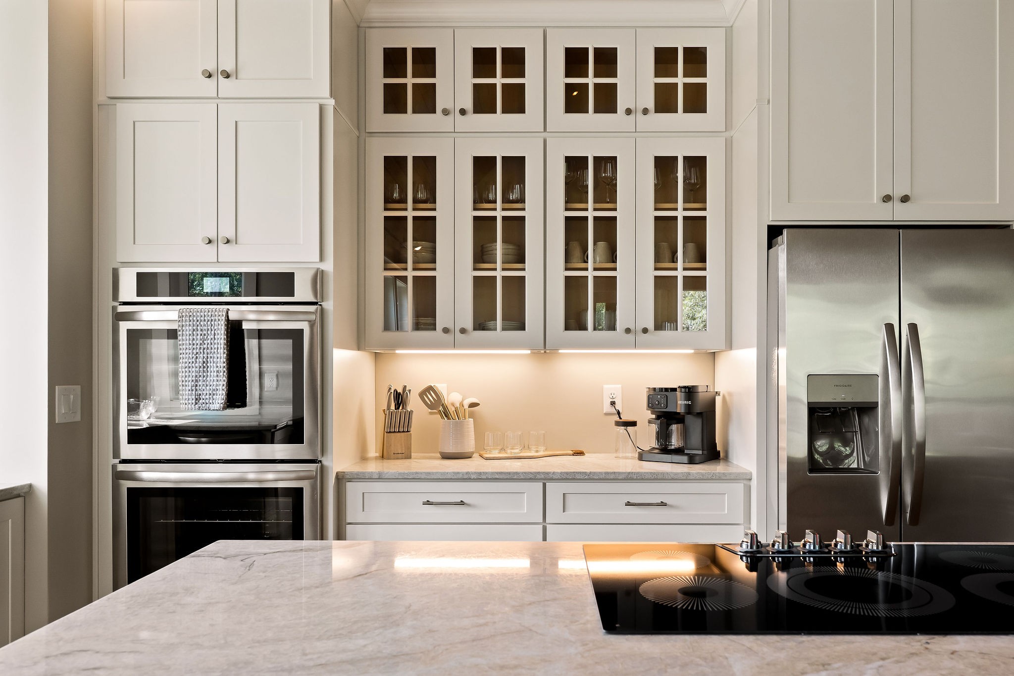 - AppliancesDouble Oven, Cooktop, Dishwasher, Ice Maker, Microwave, Refrigerator