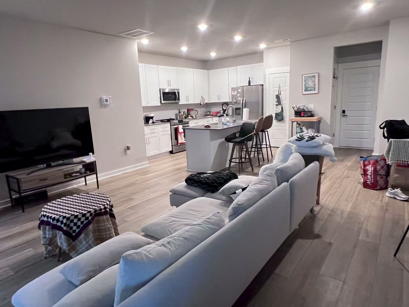Welcome to this stylish townhome, perfectly designed for modern living and everyday convenience. Built in 2022, this 3-bedroom, 2.5-bath home combines elegant design, smart tech, and a prime location—all in one! Smart home features including a Ring video doorbell, Ring security system, smart lock, and MyQ smart garage opener. Open-floor concept with a huge living room to relax and entertain your guests. Kitchen features stainless steel appliances, kitchen island, quartz countertops, sleek white cabinets, soft-close drawers and a pantry. Convenient powder room on the main level for guests. Spacious master suite with a double vanity, standing shower and walk-in closet. Two additional bedrooms upstairs with ample closet space. Upstairs laundry room includes a washer & dryer for your convenience. 2-car rear-entry garage and a driveway for plenty of parking. Pets are allowed. Just minutes to Publix, Sam’s Club, Costco, local dining, and other daily conveniences. Don’t miss this move-in-ready townhome that blends modern technology, functionality, and a prime location!