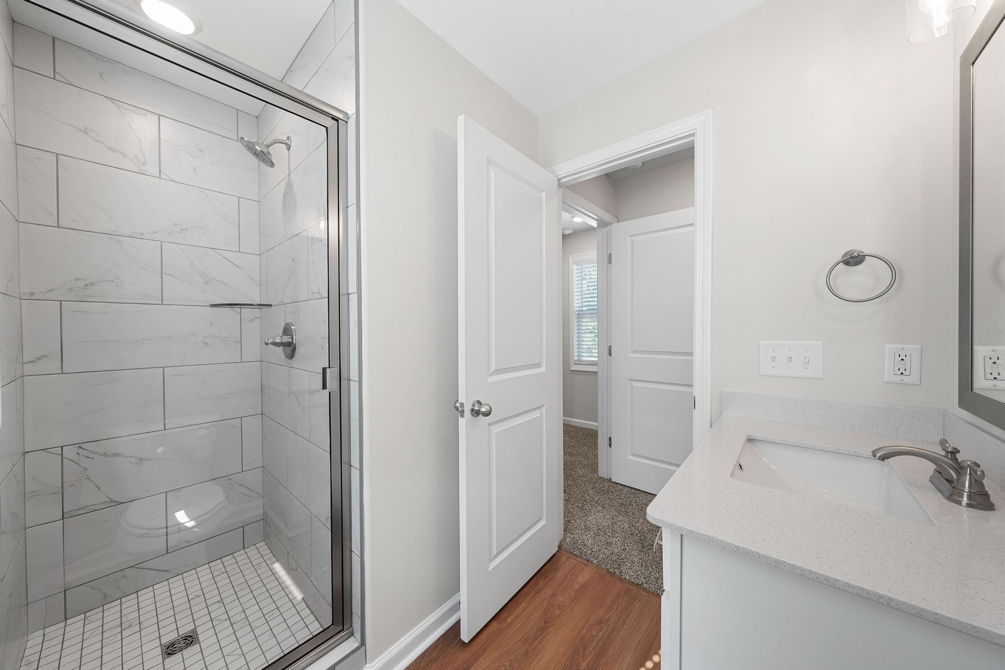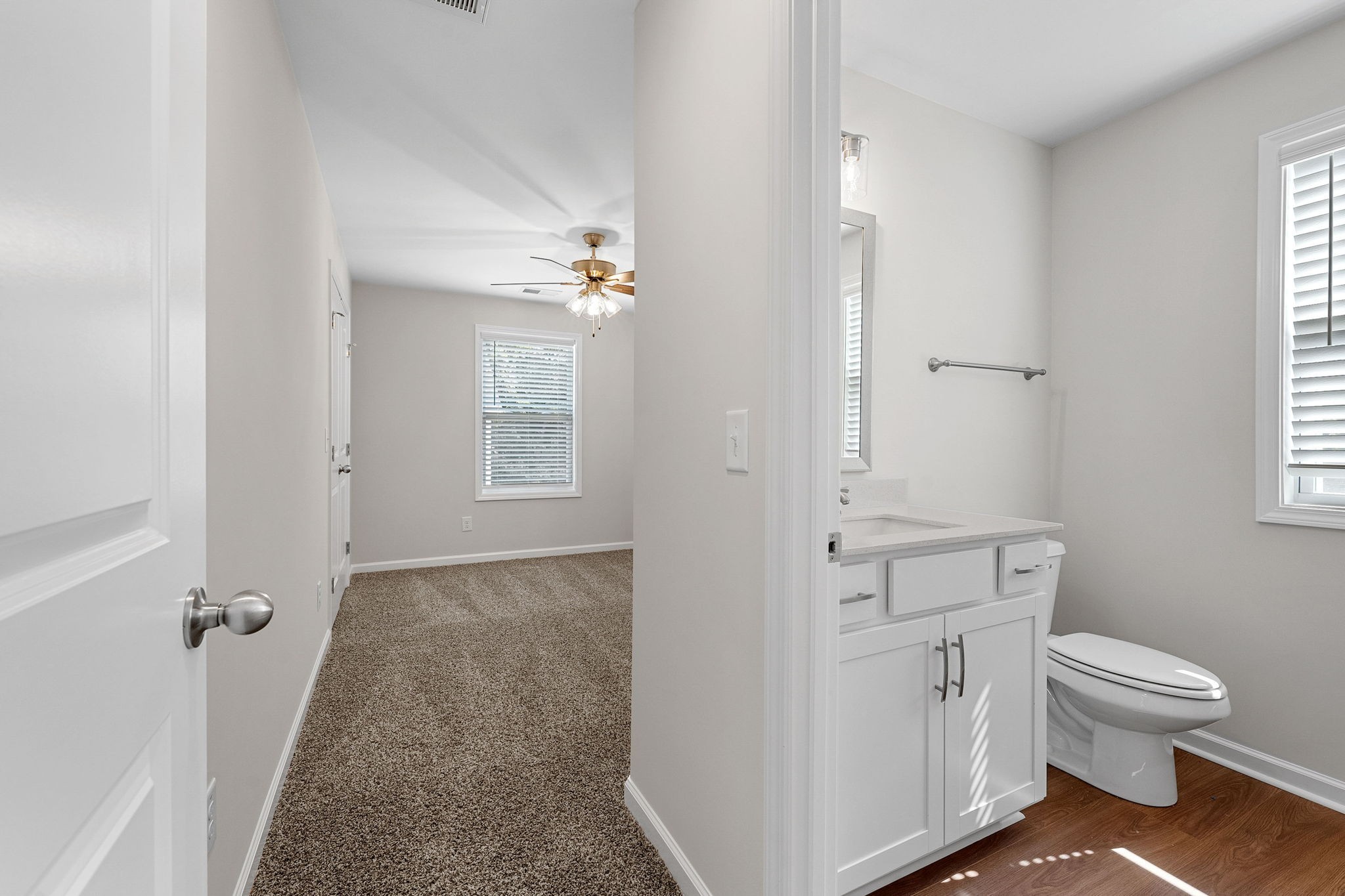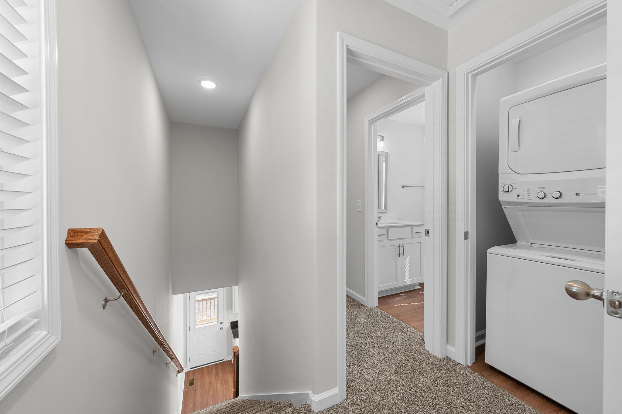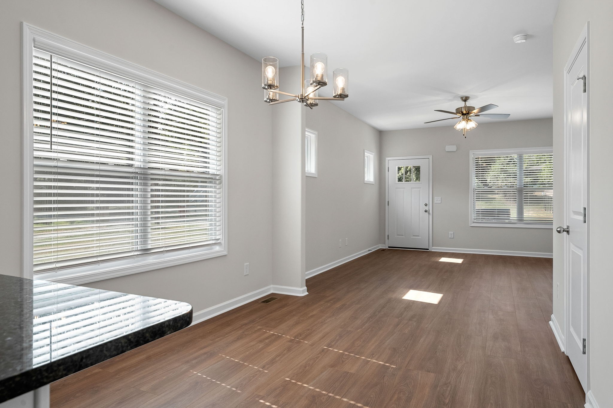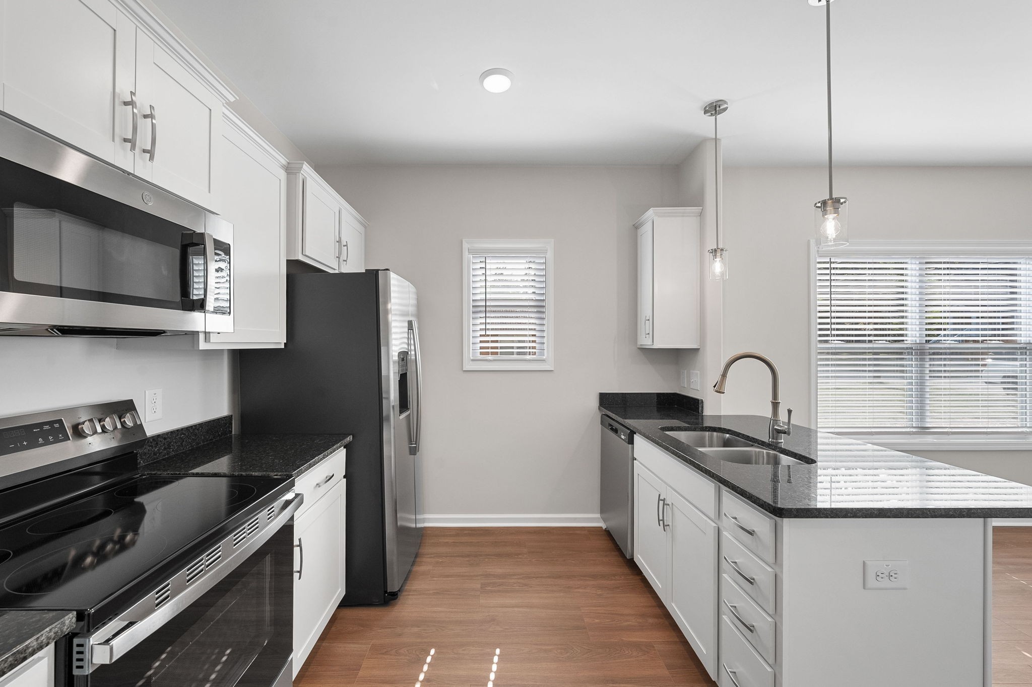 Beautiful new construction home with large open concept on main floor. Covered porch and a rear deck. Both bedrooms on 2nd floor with private baths within the bedroom. Laundry on same floor as bedrooms. Washer dryer combo included in sale. Wood blinds throughout