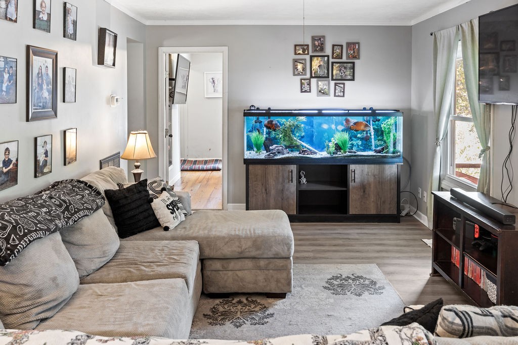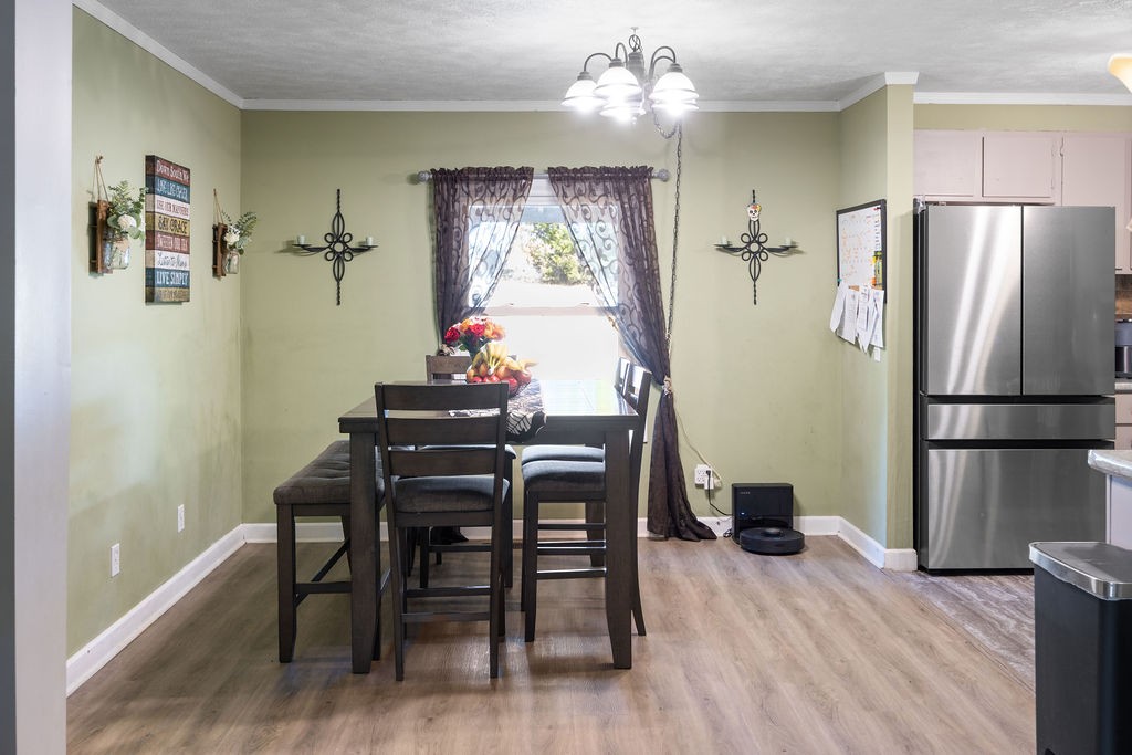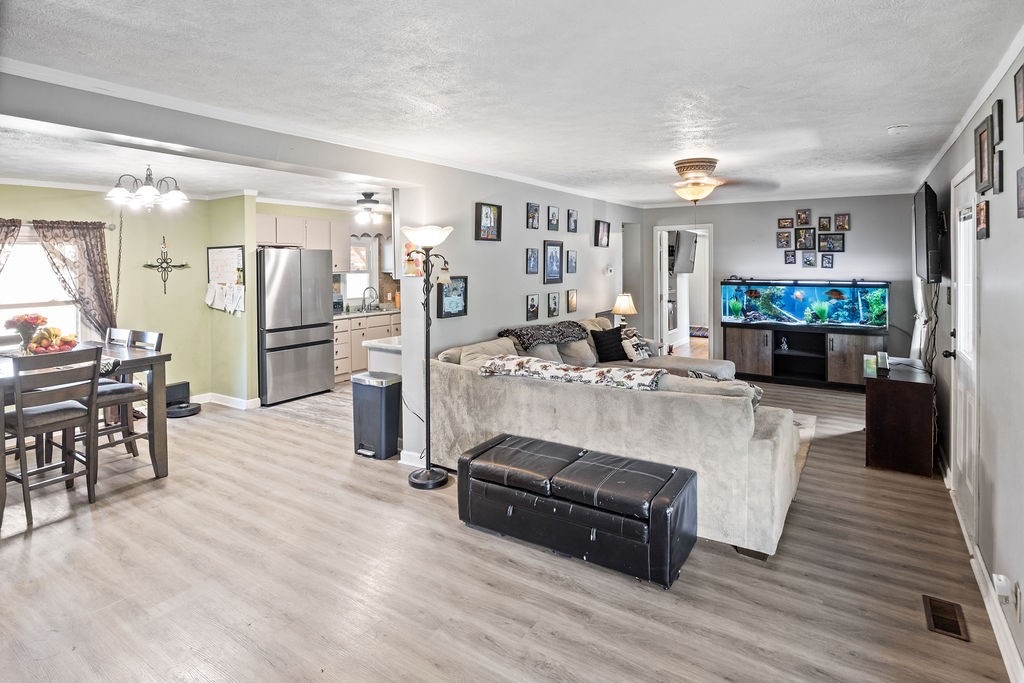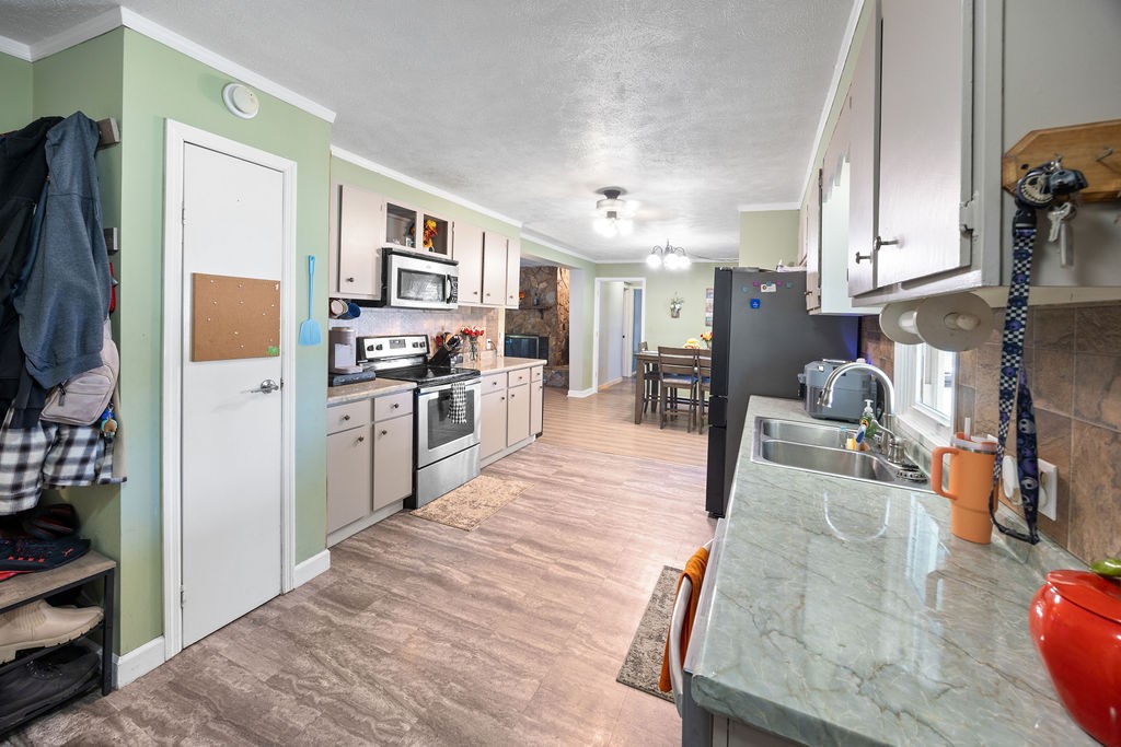Come see this wonderful home sitting in a quiet setting! 3 bedroom, 2 bathroom home. Updated kitchen with stainless steel appliances. Updated flooring throughout. Large detached garage for your hobbies. Beautiful view from the front porch with mature trees on your property.