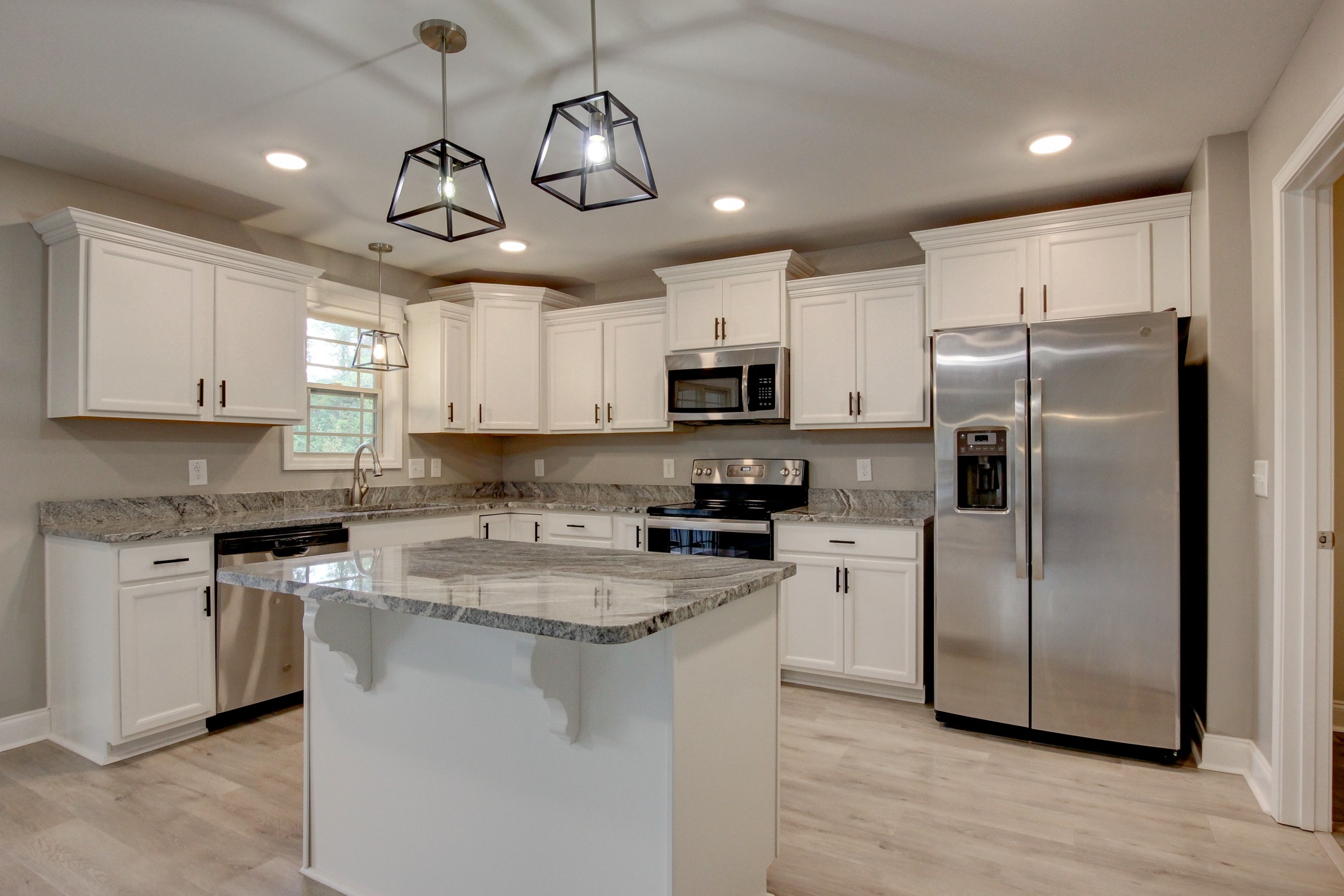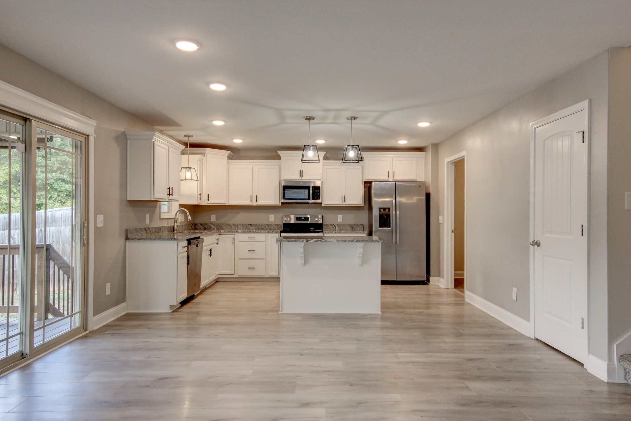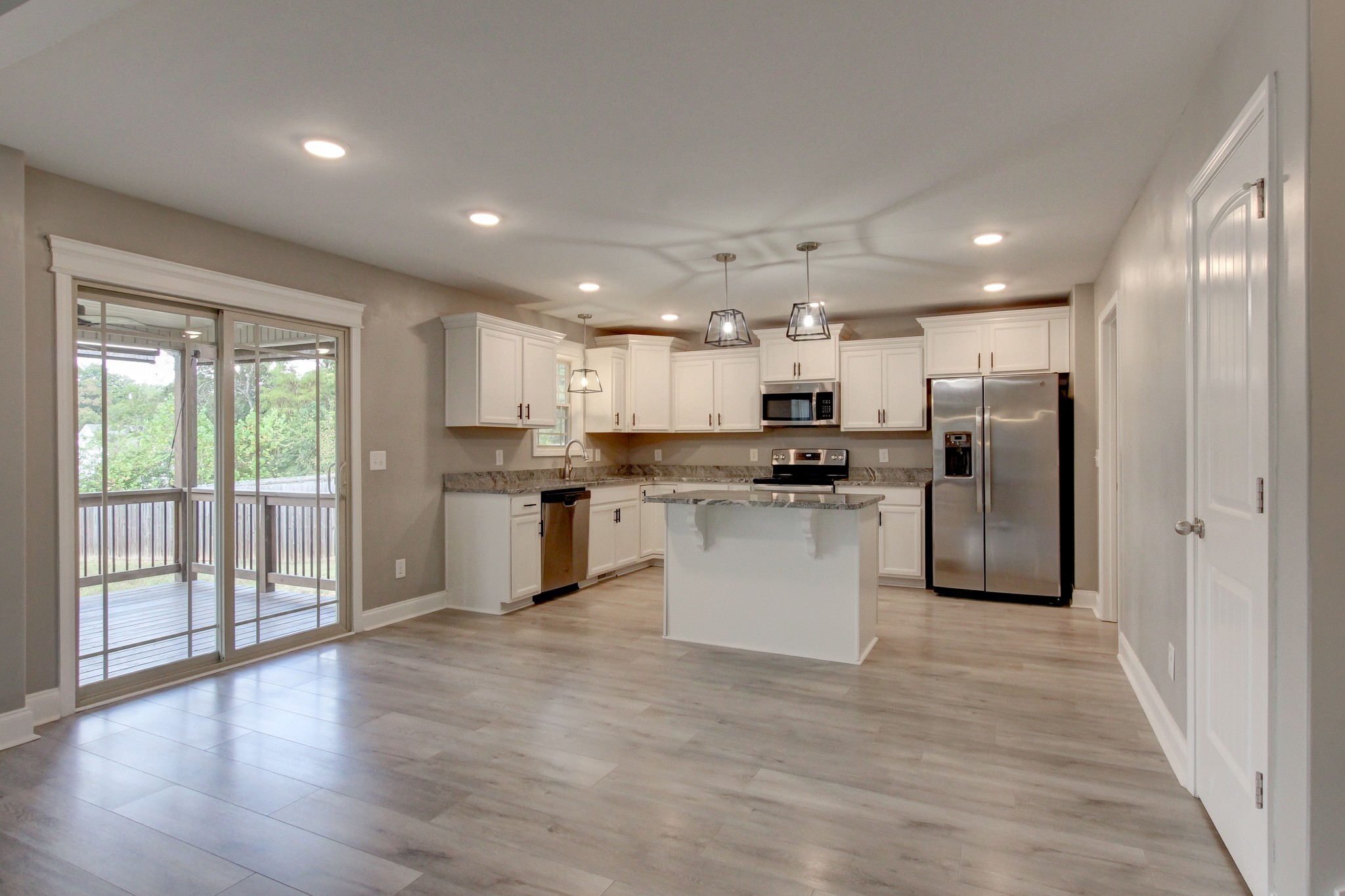 Stunning Home Two Story Open Floor Plan Home Boasts A Spacious Livivng Room With Fireplace and Hardwood Flooring. Amazing Eat In Kitchen with White Cabinetry, Granite Counters, Stainless Steel Appliances Pendant Lighting and Large Island With Storage. Primary Bedroom Suite Showcases A Trey Ceiling And Dual Vanities In The Primary Bathroom. The Secondary Bedrooms Offer Great Space For Your Personal Decorating Style. Completing This Home is A Covered Deck Overlooking The Privacy Fenced Bakyard and A Two Car Garage.
