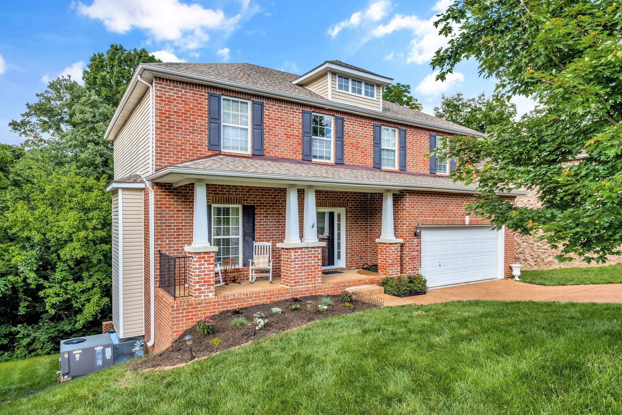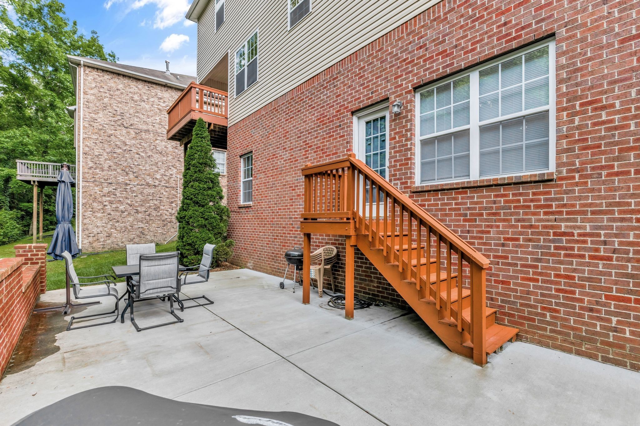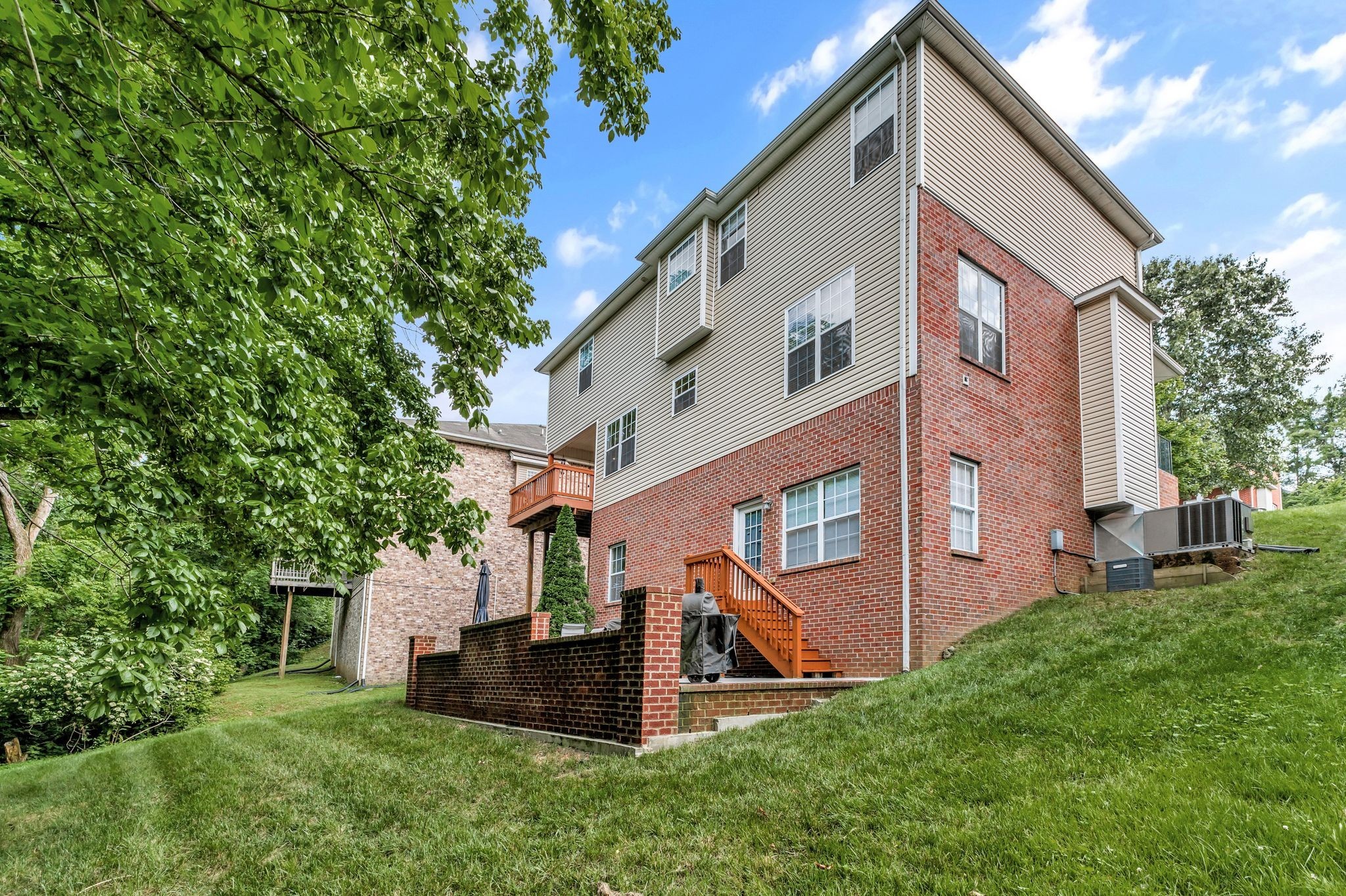 Beautifully updated 4 BR, 3.5 BA home in Brentwood offering 2,916 sq. ft. of living space and an open floor plan. The main level features spacious living areas that flow seamlessly for everyday living and entertaining. Upstairs, you’ll find three bedrooms including the primary suite with an updated bath. The full finished basement adds incredible versatility with a bonus room, bedroom, full bath, and abundant storage. Step outside to the oversized patio with a charming brick wall accent, perfect for relaxing while enjoying the private backdrop of trees and a creek. Just a short walk to Starbucks and minutes to grocery, dining, and more—this home blends convenience with comfort in one of Brentwood’s most desirable locations.