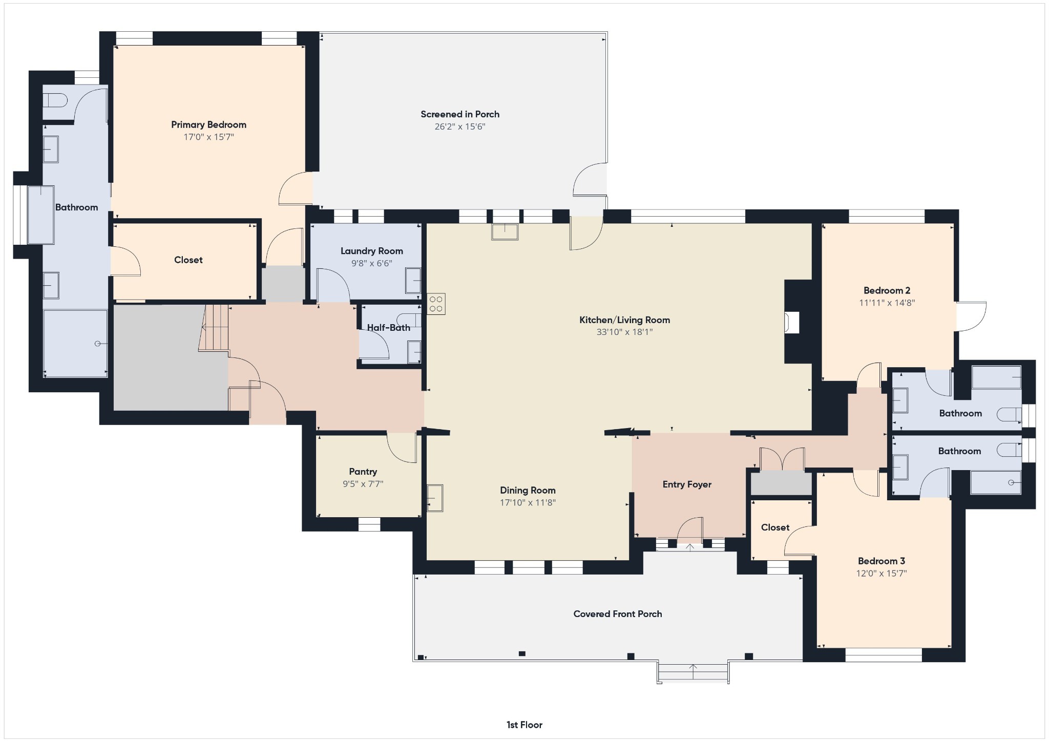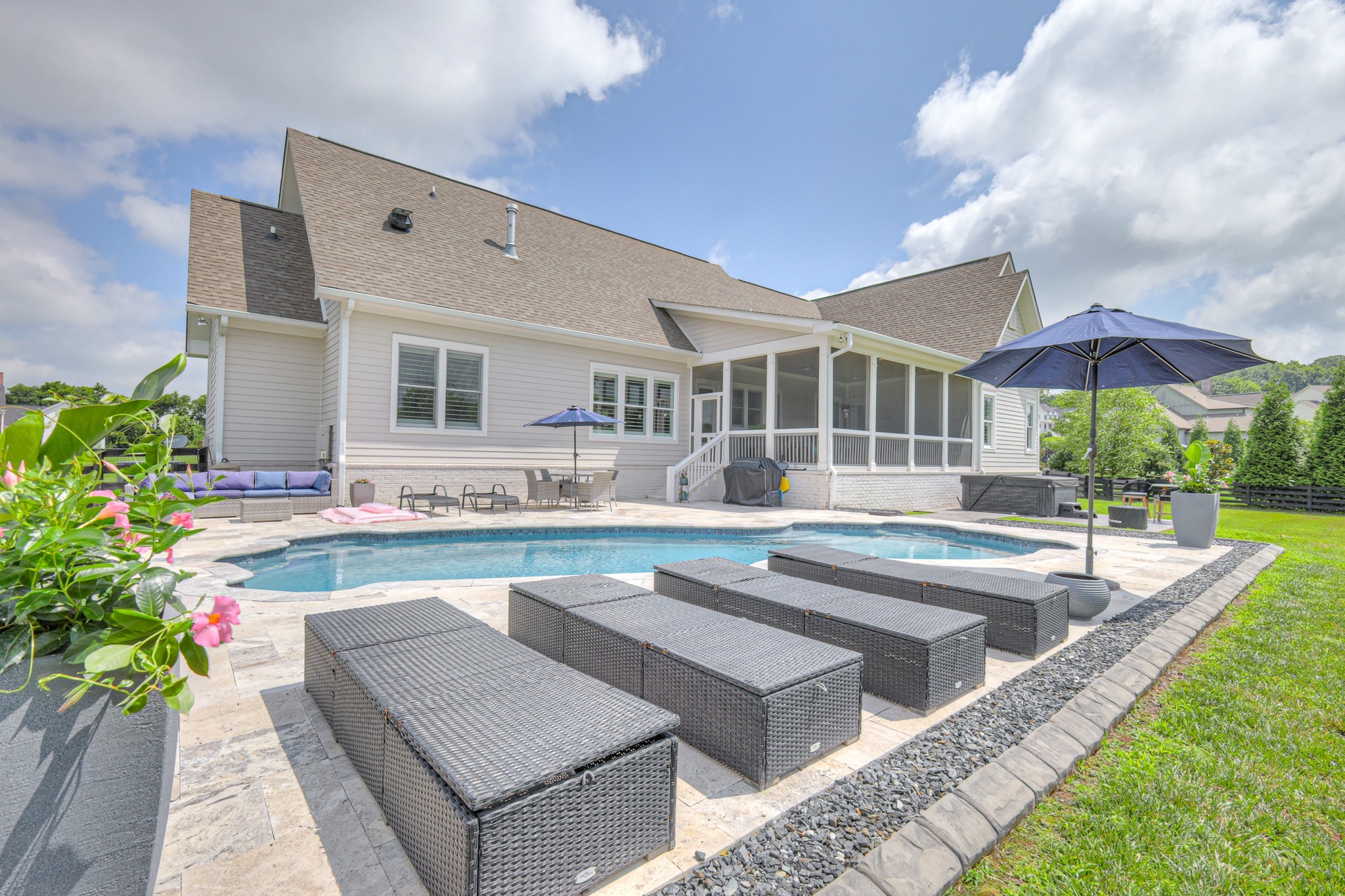The backyard is an entertainer’s dream—complete with an in-ground pool, travertine deck, hot tub, screened porch, and even an in-ground storm shelter for extra peace of mind. Inside, you’ll find a custom-built wet bar, while outside the extended parking area and widened driveway make hosting easy.