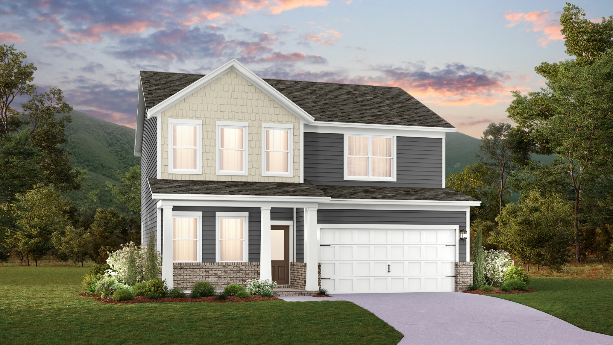 LOT #379 - Hamilton. The first floor of this two-story home offers an open family room, kitchen and dining room at the back of the home, while a convenient study is located off the foyer. Four bedrooms – including the spacious owner’s suite – are situated on the second level. *Images from a furnished model of this home. Actual configuration and features may vary.