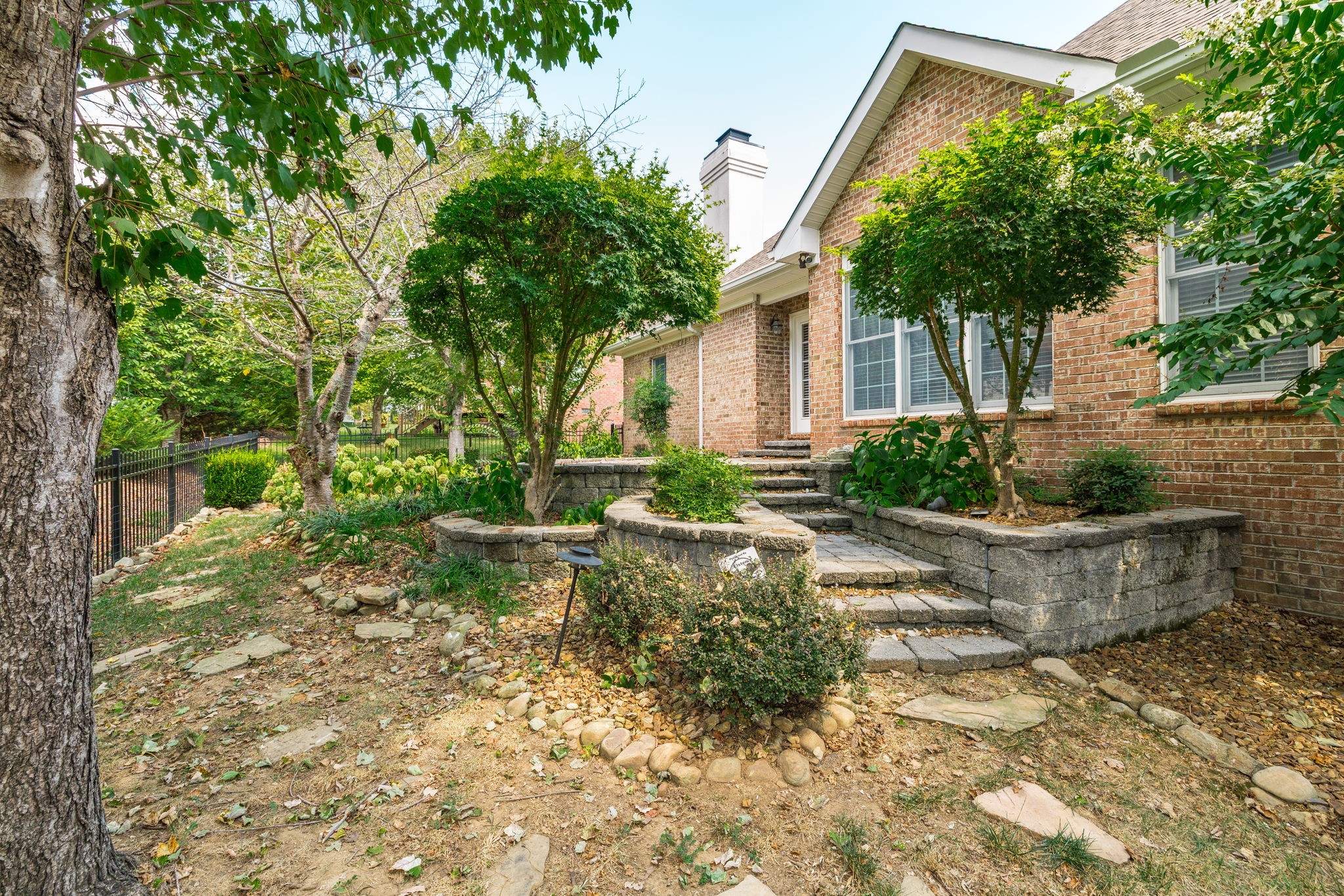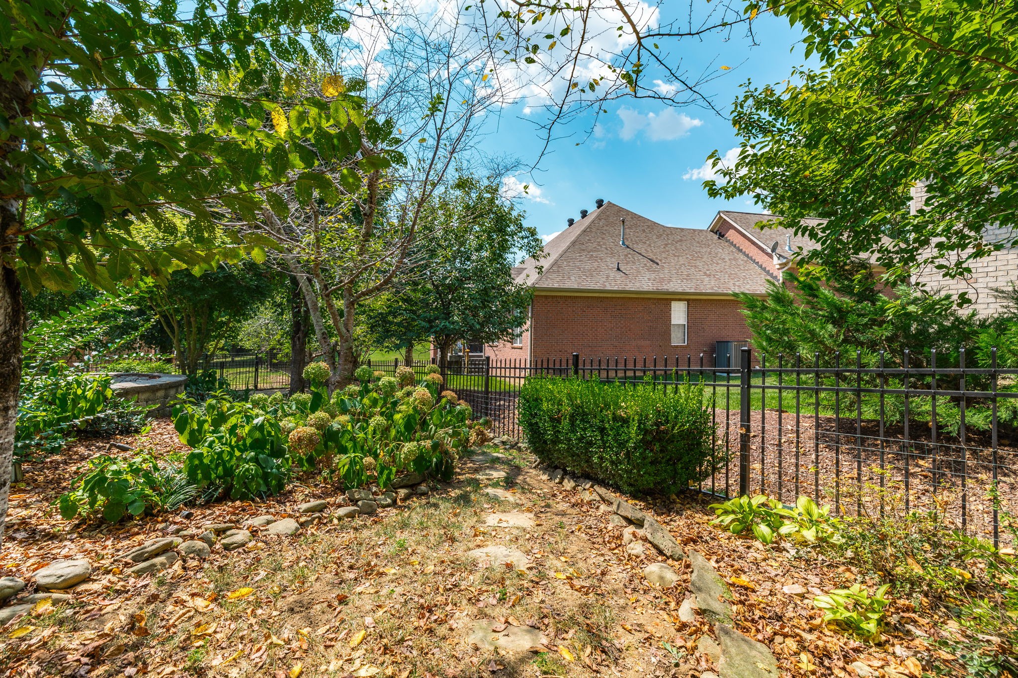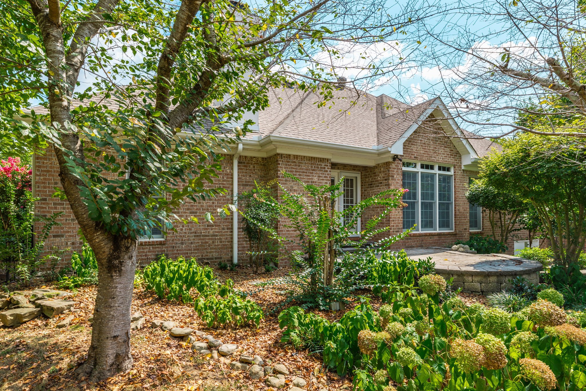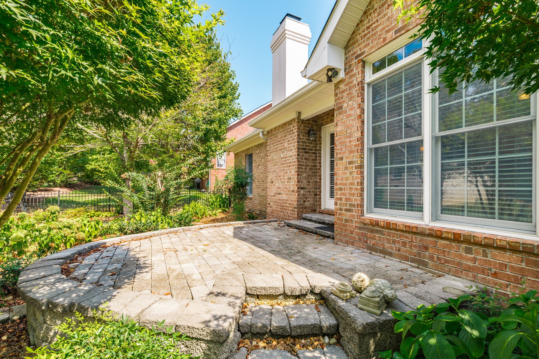 The primary suite boasts a tray ceiling and a relaxing retreat-like feel. Enjoy hardwood and tile floors, a large bonus room with extra storage, and a dedicated laundry room. Step outside to a hand-laid stone patio with a fountain, surrounded by lush landscaping—perfect for outdoor entertaining.