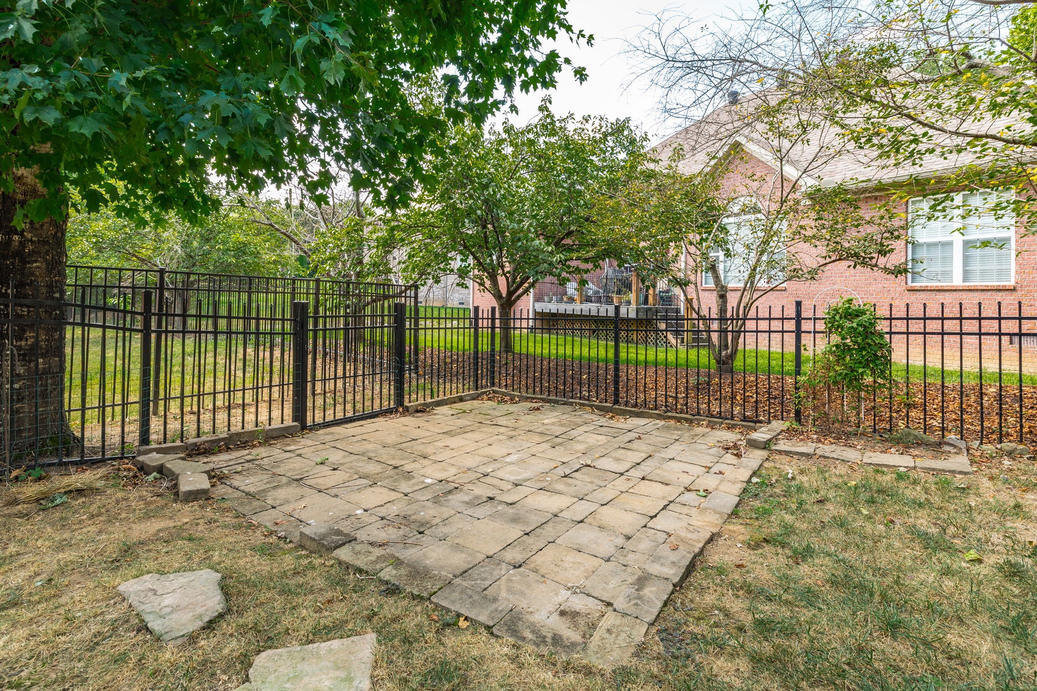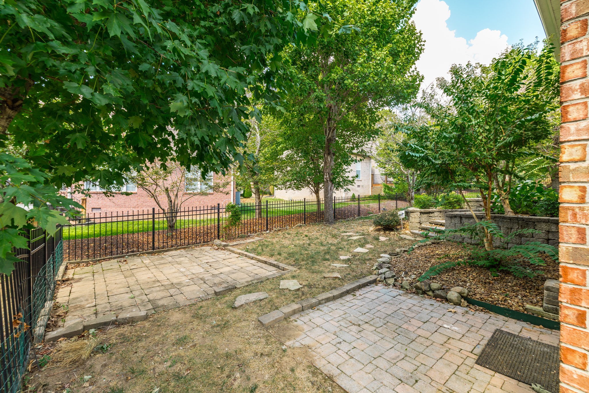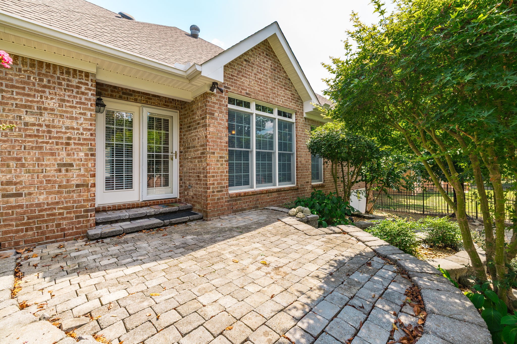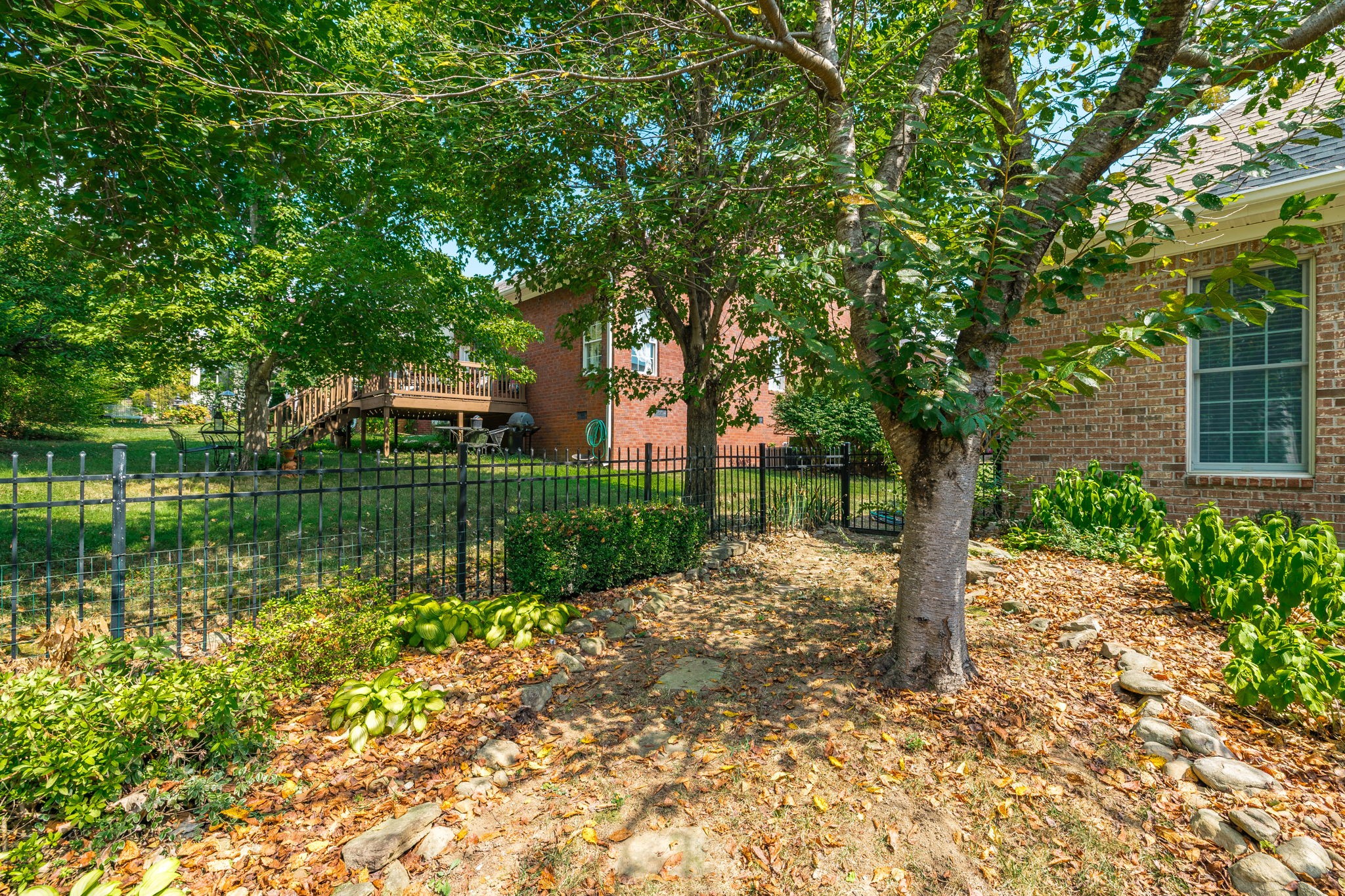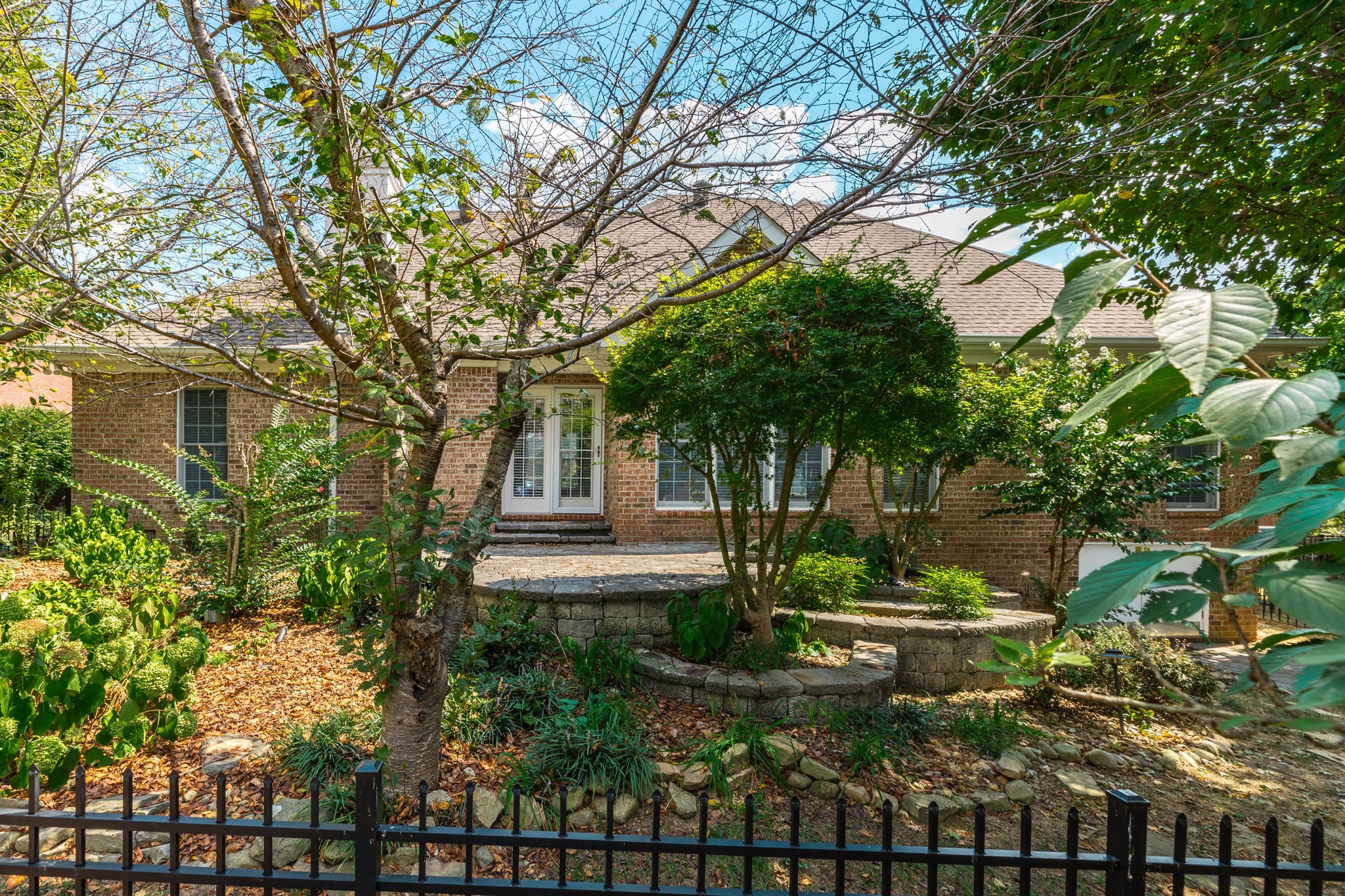 The primary suite boasts a tray ceiling and a relaxing retreat-like feel. Enjoy hardwood and tile floors, a large bonus room with extra storage, and a dedicated laundry room. Step outside to a hand-laid stone patio with a fountain, surrounded by lush landscaping—perfect for outdoor entertaining.