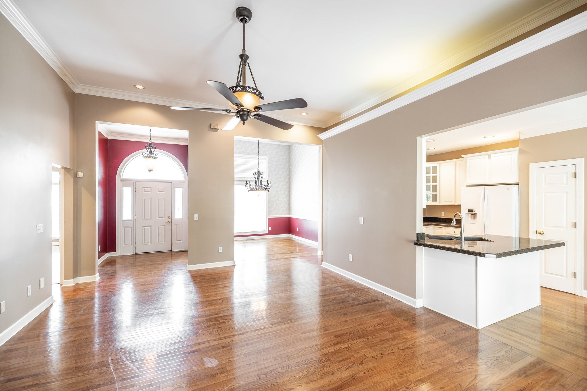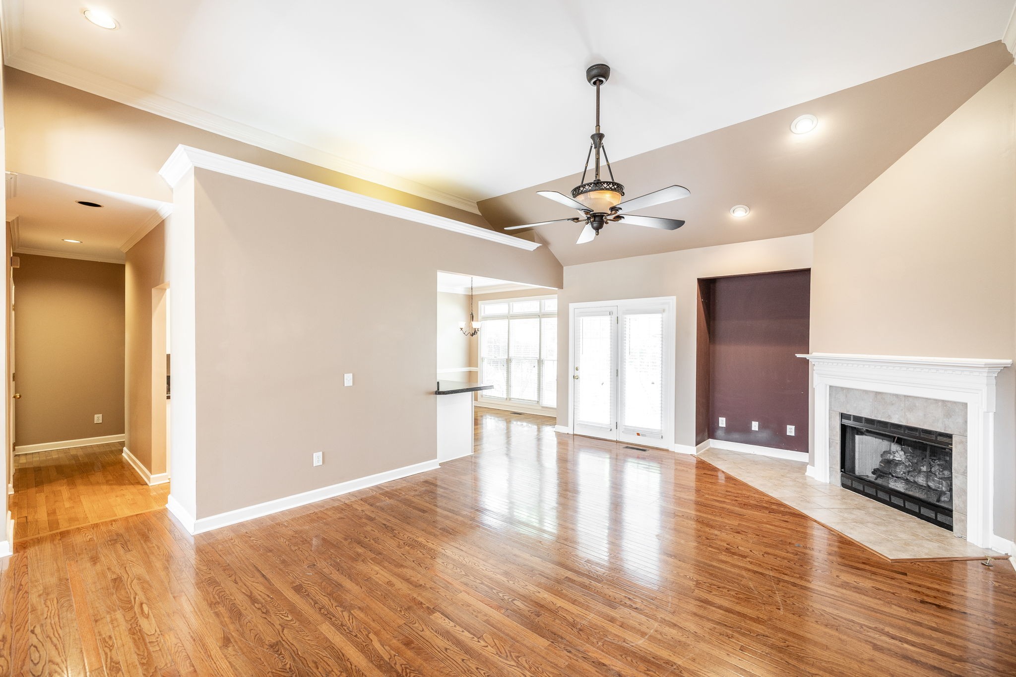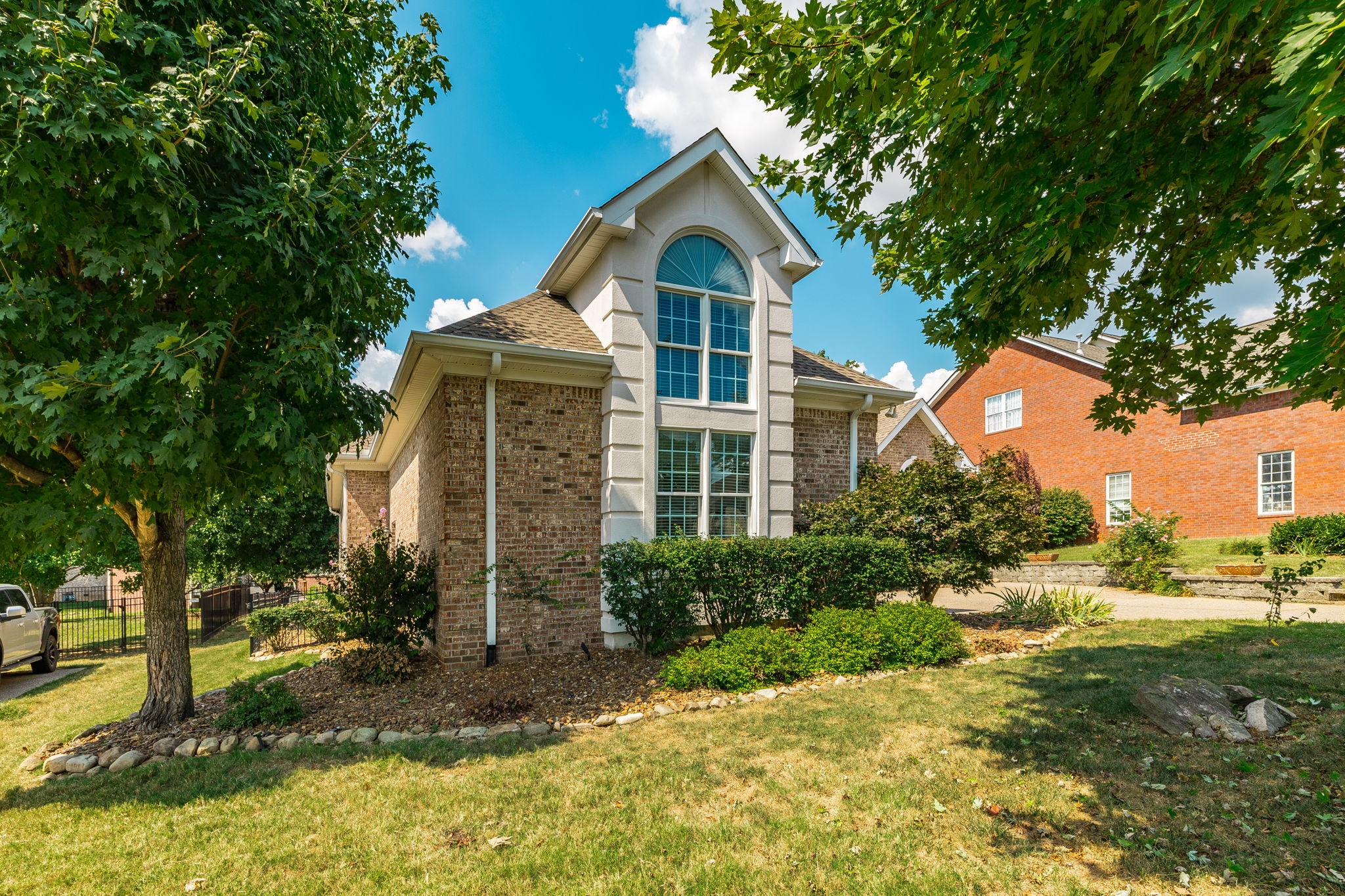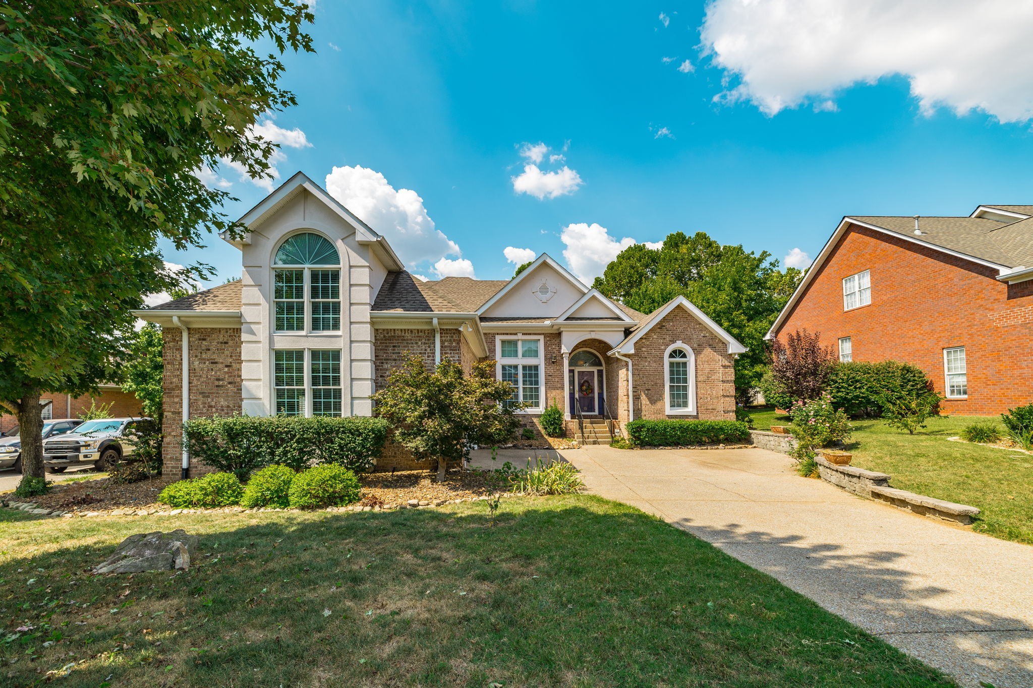This stunning 3-bedroom, 2.5-bath home in Hendersonville’s. Is full of upgrades and charm. Featuring 12- and 13-foot volume ceilings, an open floor plan, and designer colors throughout, this home feels bright and inviting. The spacious living room offers a cozy fireplace, while the fully updated guest bath includes granite counters and custom tile.