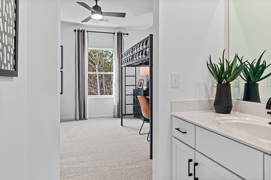 This stunning 5 bedroom, 4 bathroom Buchanan plan in Slatewood offers a perfect blend of elegance and functionality. HUGE .39 ACRE, CORNER HOMESITE. This home is MOVE IN READY!. Step inside to find a private study with double French doors and LVP flooring, ideal for working from home. The formal dining room, enhanced with a tray ceiling, sets the stage for memorable gatherings, while the gourmet kitchen with white cabinets flows seamlessly into the sunlit great room, where a coffered ceiling and electric fireplace create a warm and inviting atmosphere. Upstairs, a spacious loft provides additional living space, leading to the luxurious owner’s suite, complete with a tray ceiling, a spa-like bath featuring a built-in garden tub, and an oversized walk-in closet. Secondary bedrooms all boast walk-in closets, with two sharing a Jack & Jill bath and another offering a private en suite. Wood spindle stairs and wood treads add a refined touch throughout. Outside, enjoy the covered patio, perfect for outdoor relaxation. A tankless hot water heater adds efficiency, while Century Home Connect® ensures modern smart home convenience in every space. Includes the refrigerator and blinds to make this beautiful home even more turnkey. Slatewood is in an ideal location on the North side of Murfreesboro, close to everything you need & zoned for top schools: Northfield Elementary, Siegel Middle & Siegel High schools. Come visit today!