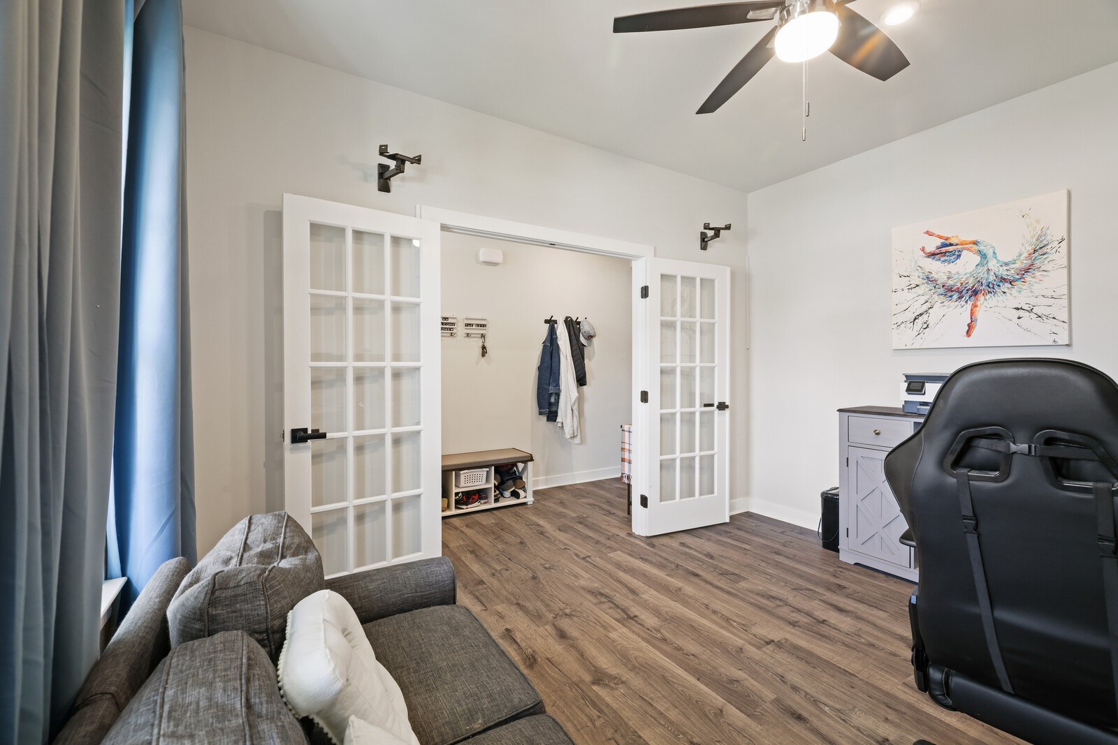 Dedicated Home Office: Work from home in style w/ elegant French doors for privacy.