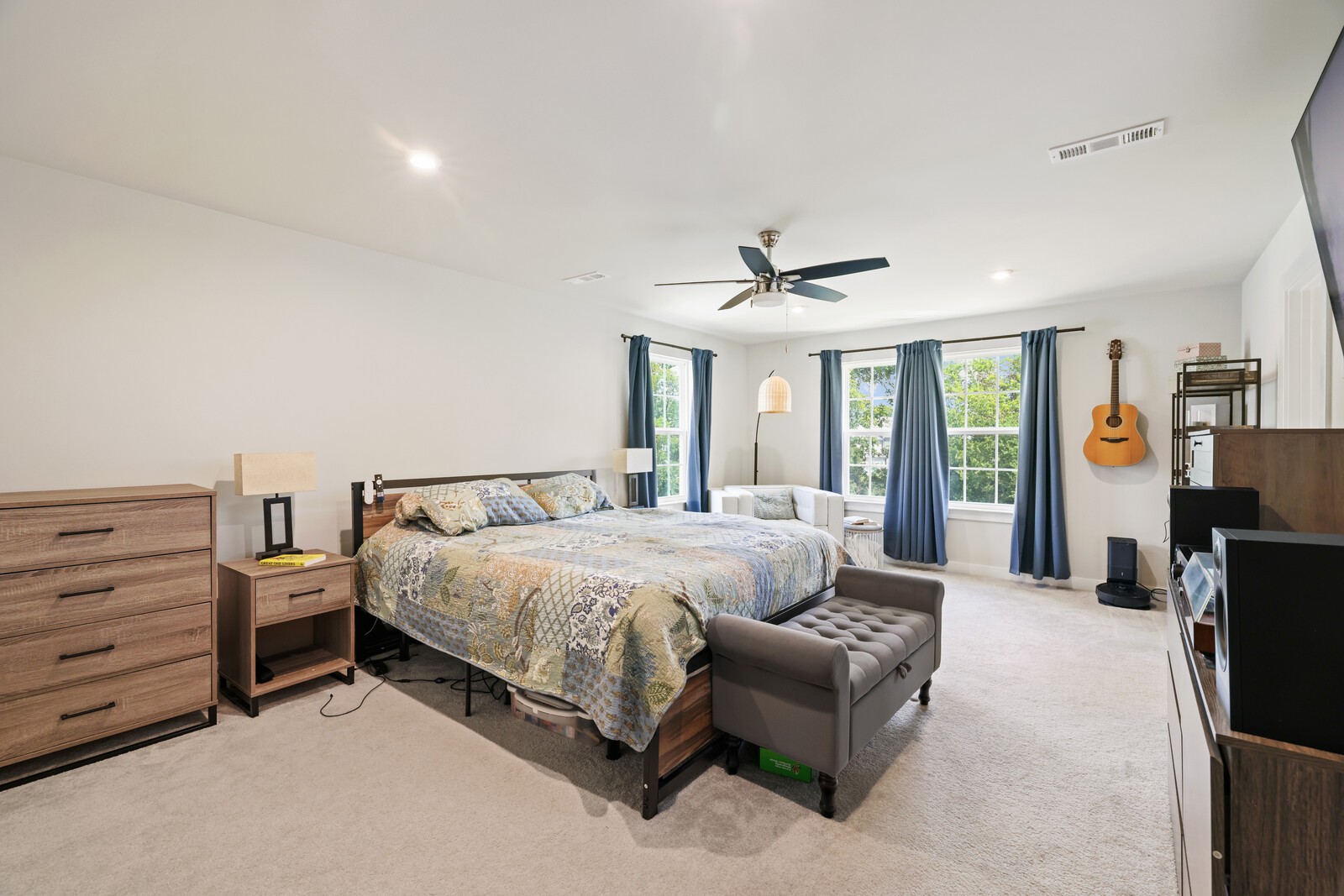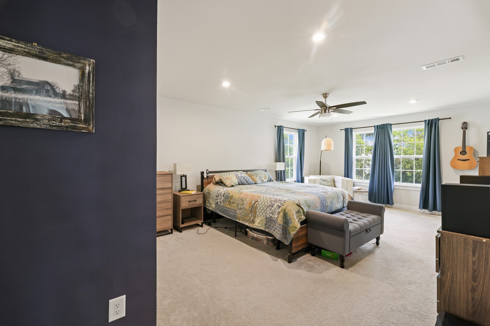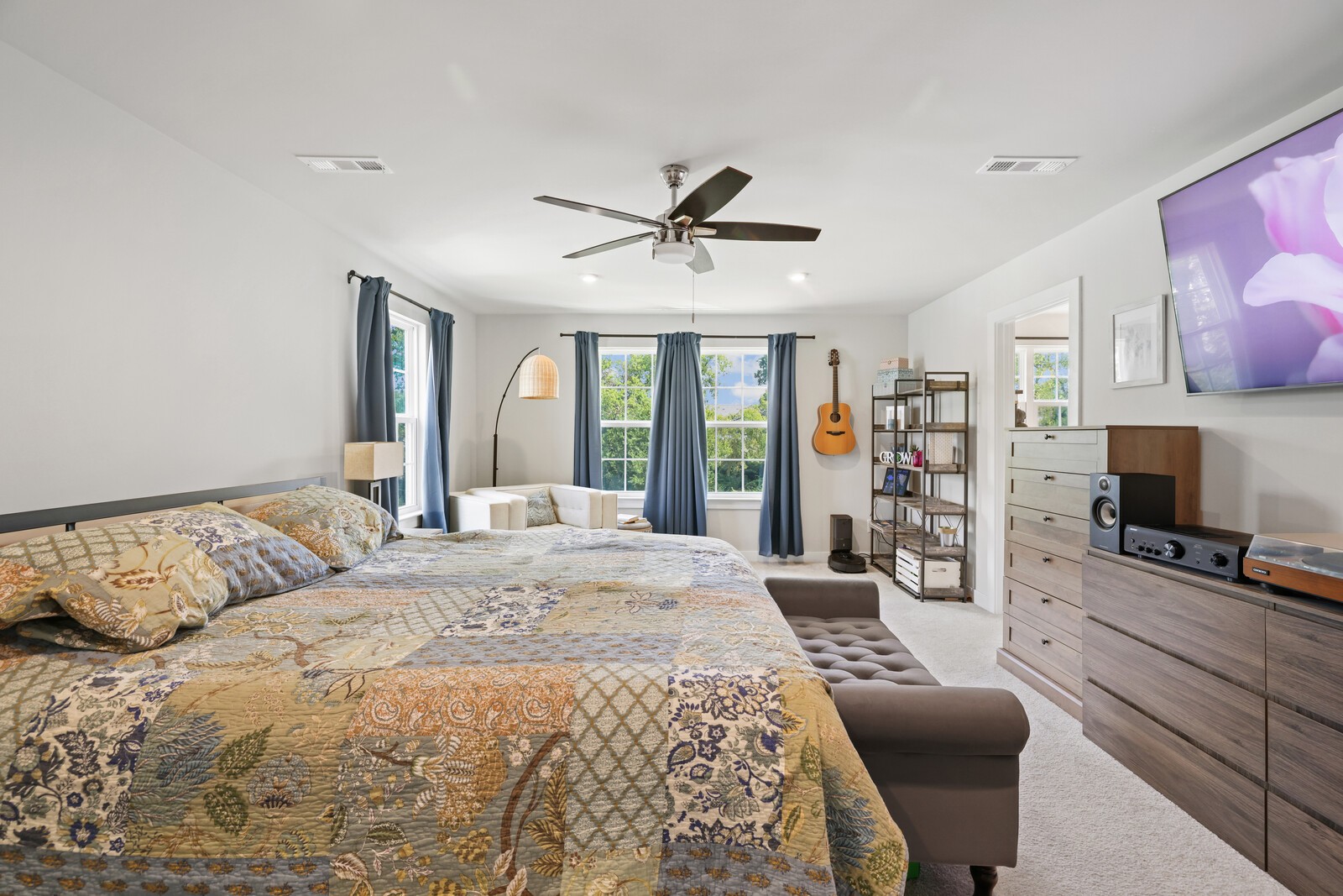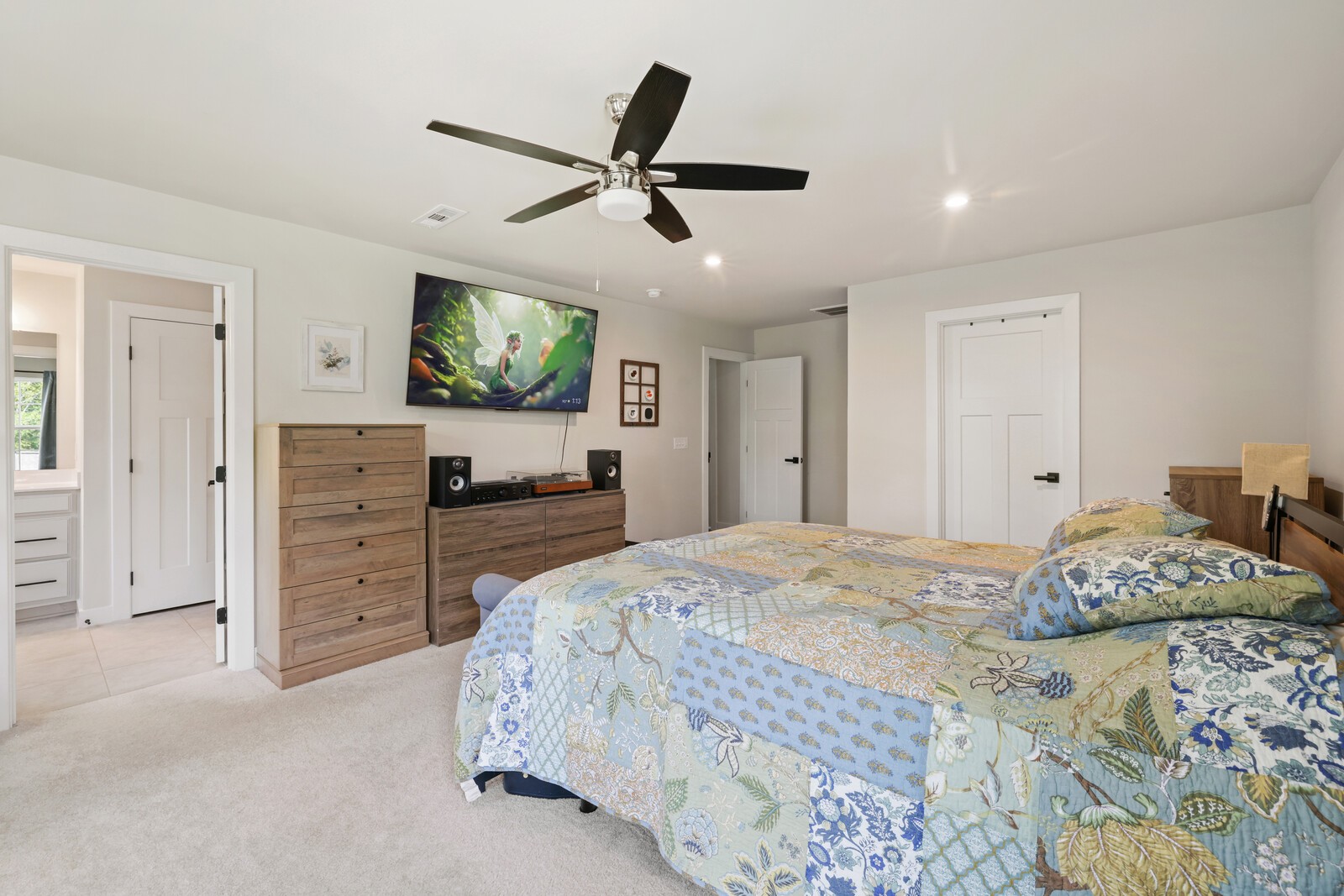 Spacious Primary Suite: A peaceful retreat w/ plush carpeting & an enormous walk-in closet.