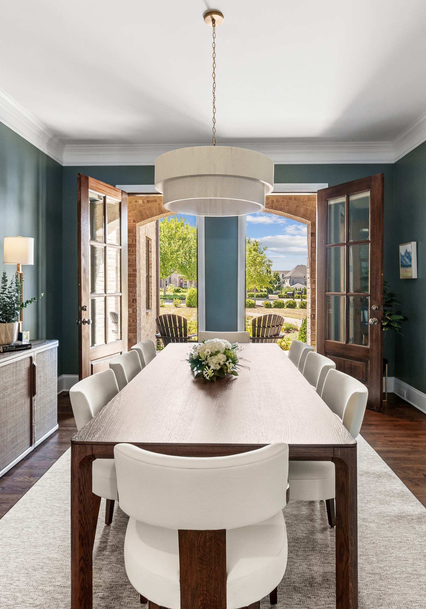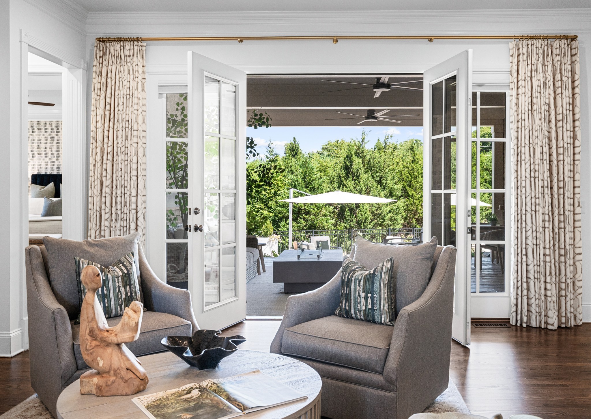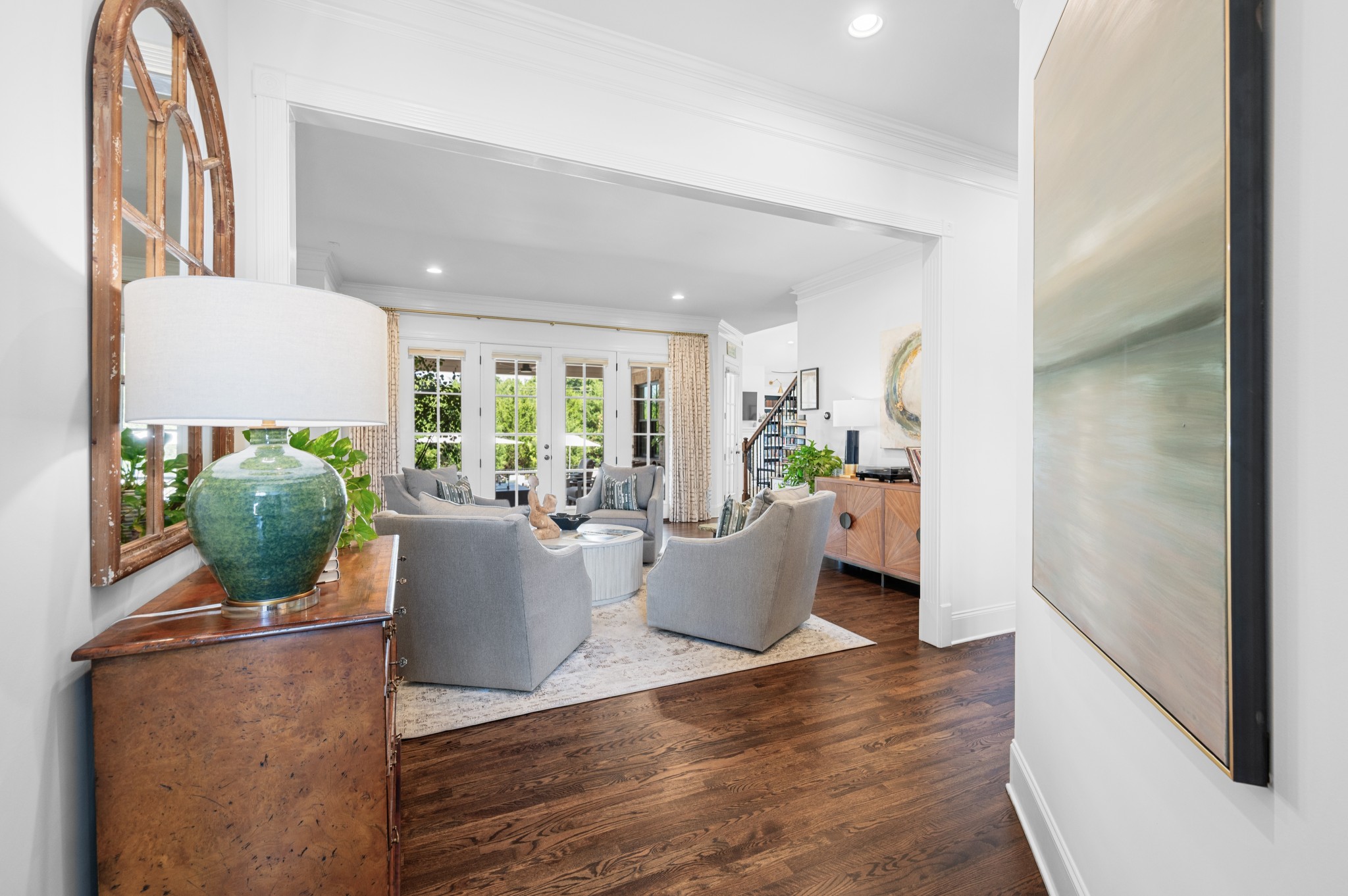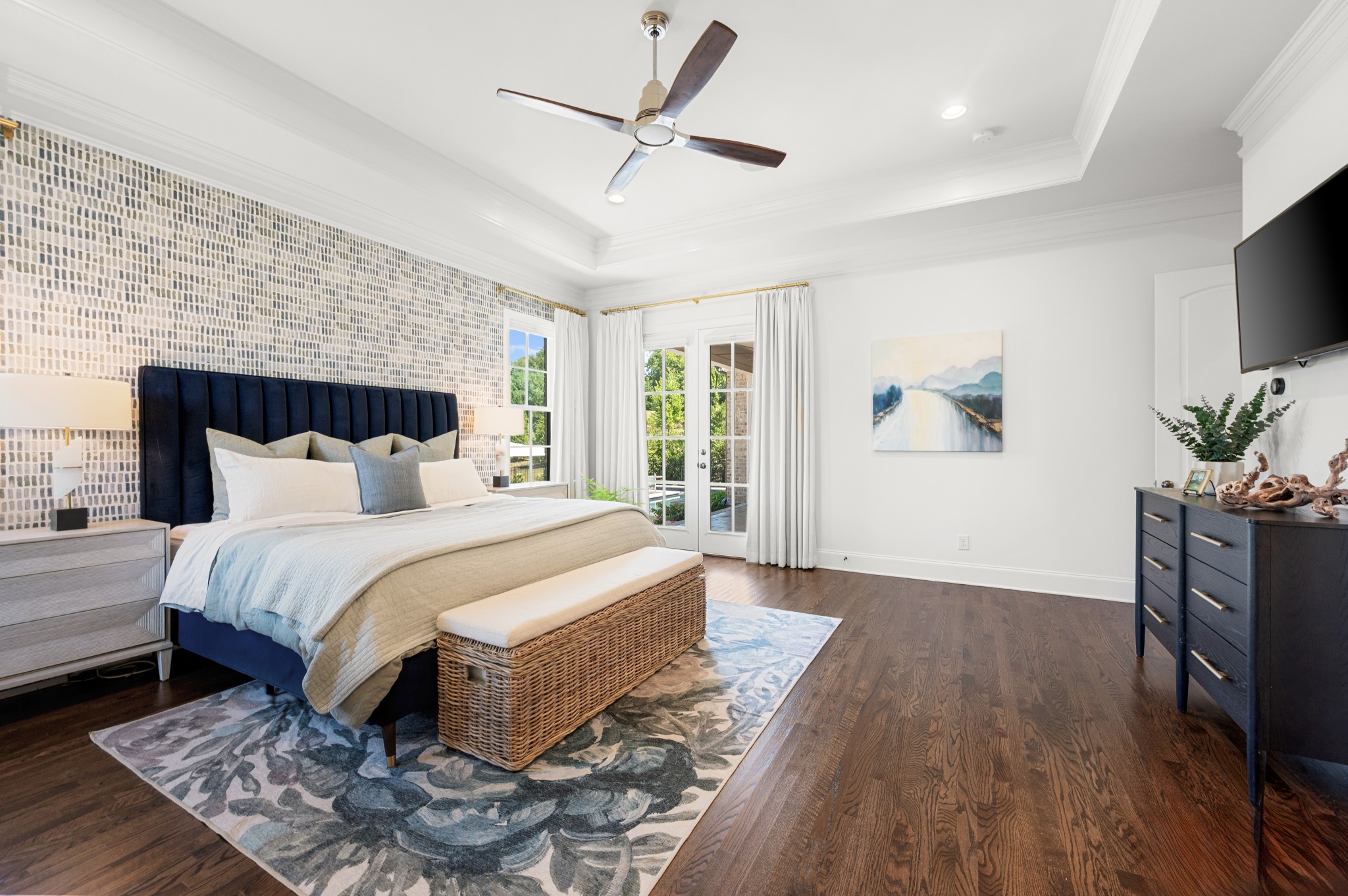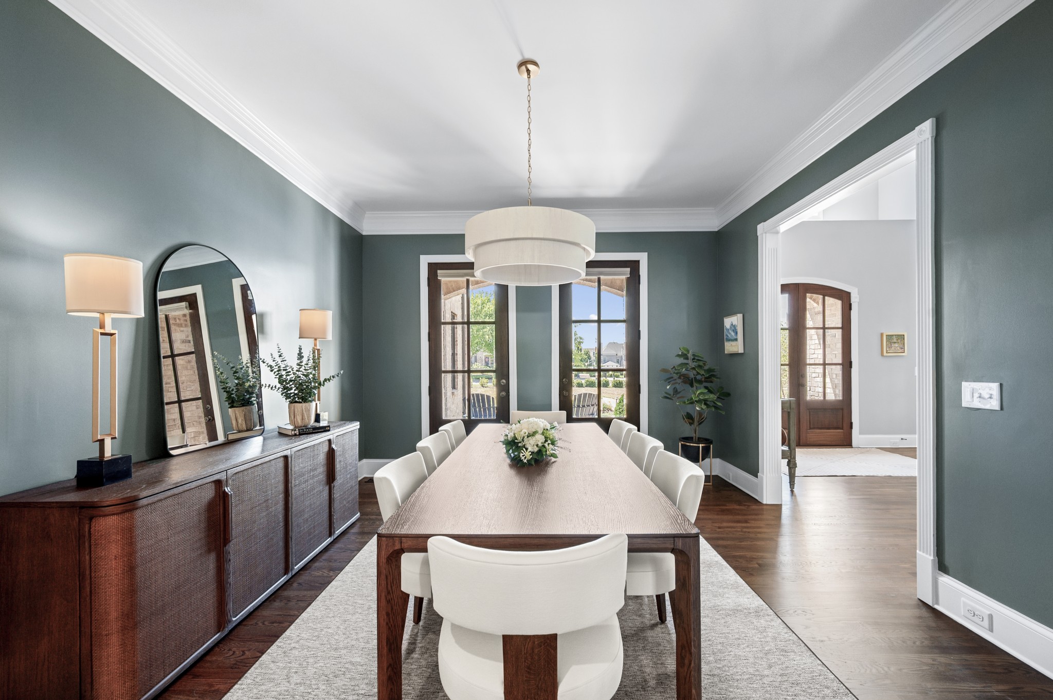 Inside, French doors throughout create seamless flow, and every room reflects a balance of scale, proportion, and timeless design. The main-level primary suite offers a serene retreat with spa-like bath and generous closet space, while additional bedrooms and bonus areas provide flexibility for family, guests, or home offices.