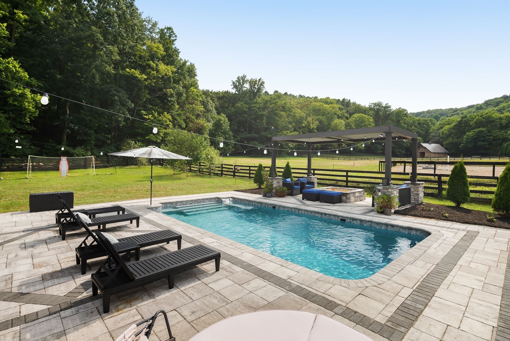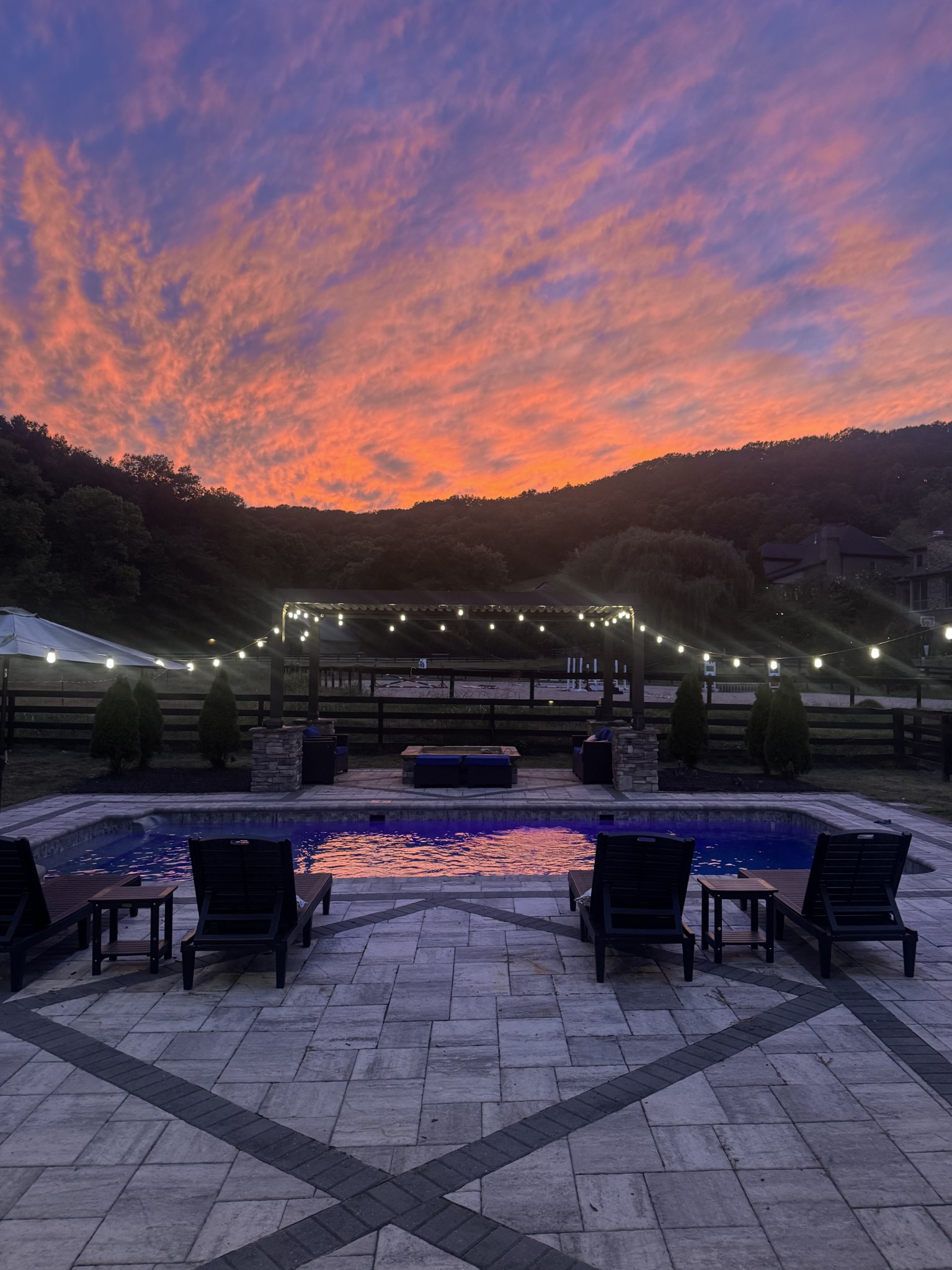 The beautiful heated saltwater pool invites you to unwind, or even spectate equestrian activities from poolside. There are endless opportunities for outdoor activities, whether you're enjoying a morning ride, hosting a barbecue, or simply taking in the breathtaking views, this property is a true sanctuary in every sense. Sunsets over the hills from the backyard are pure magic.