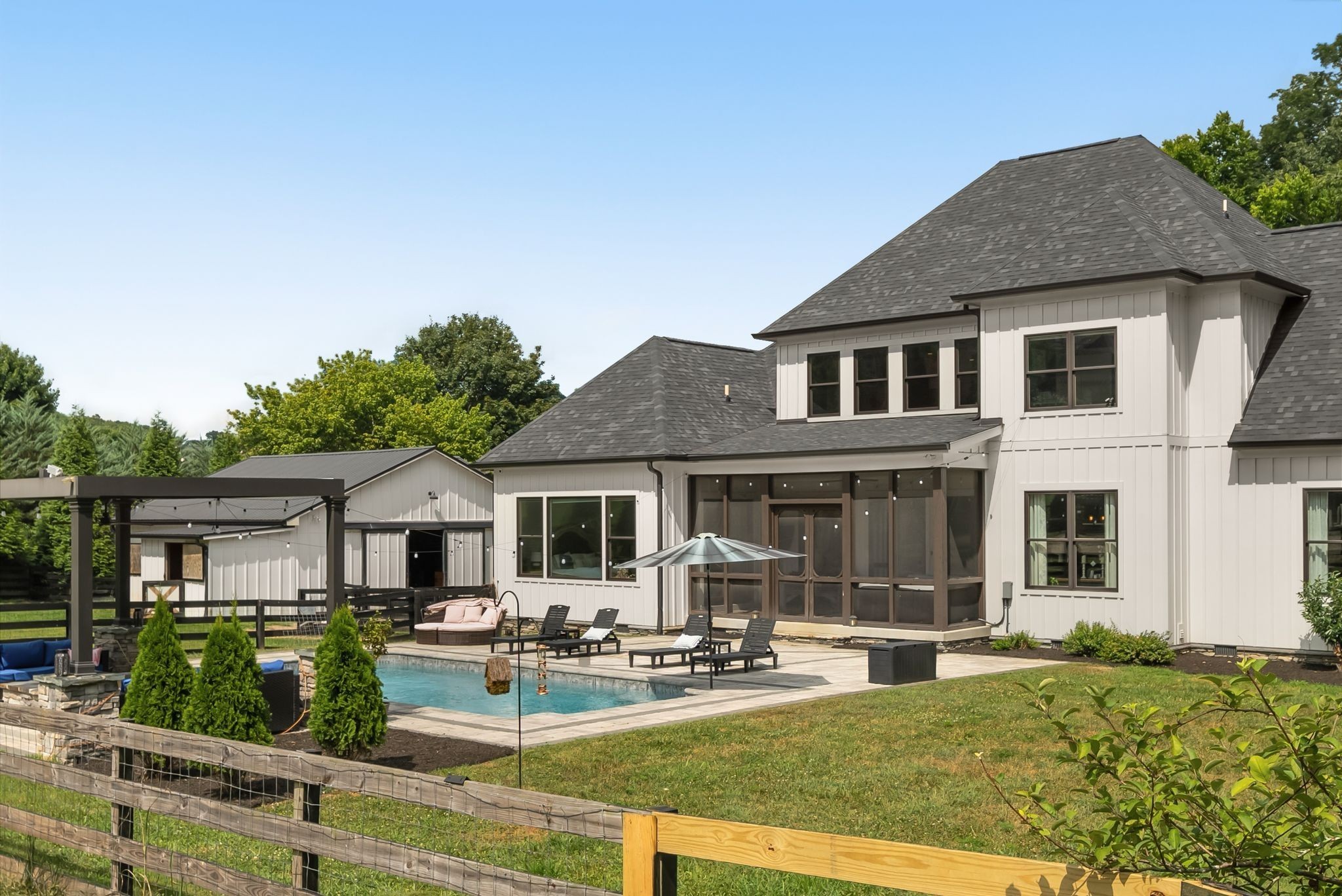 Welcome to your dream mini-farm retreat! Nestled on 5 picturesque acres, this magnificent property offers the perfect blend of luxury and functionality for horse lovers and families alike.