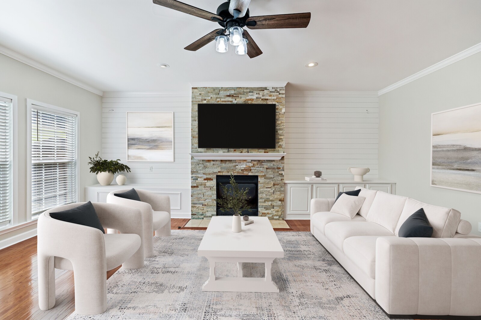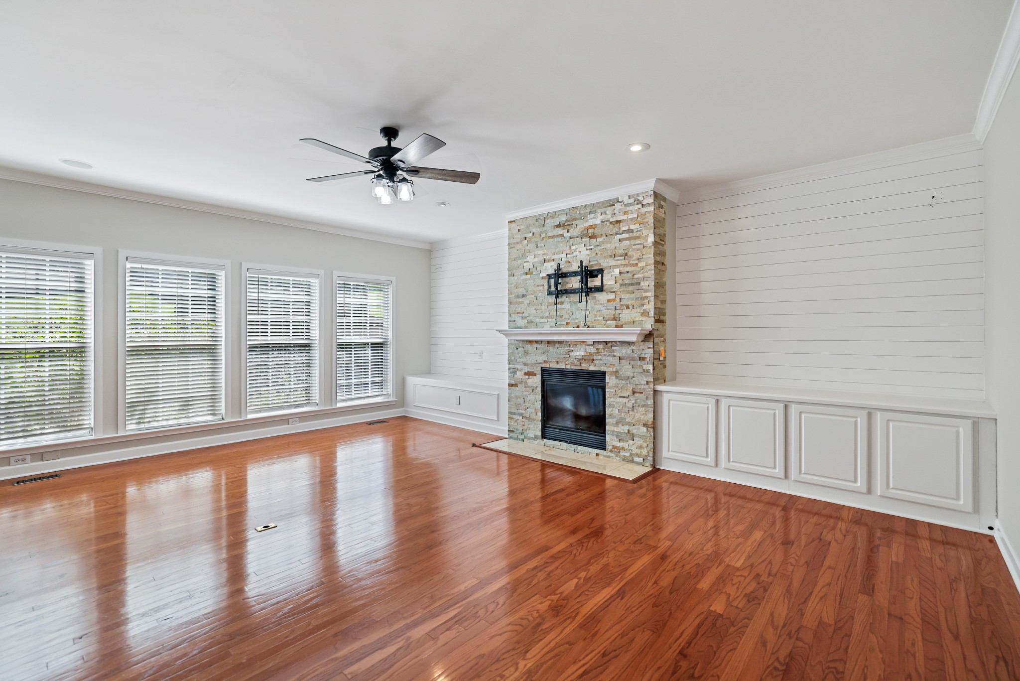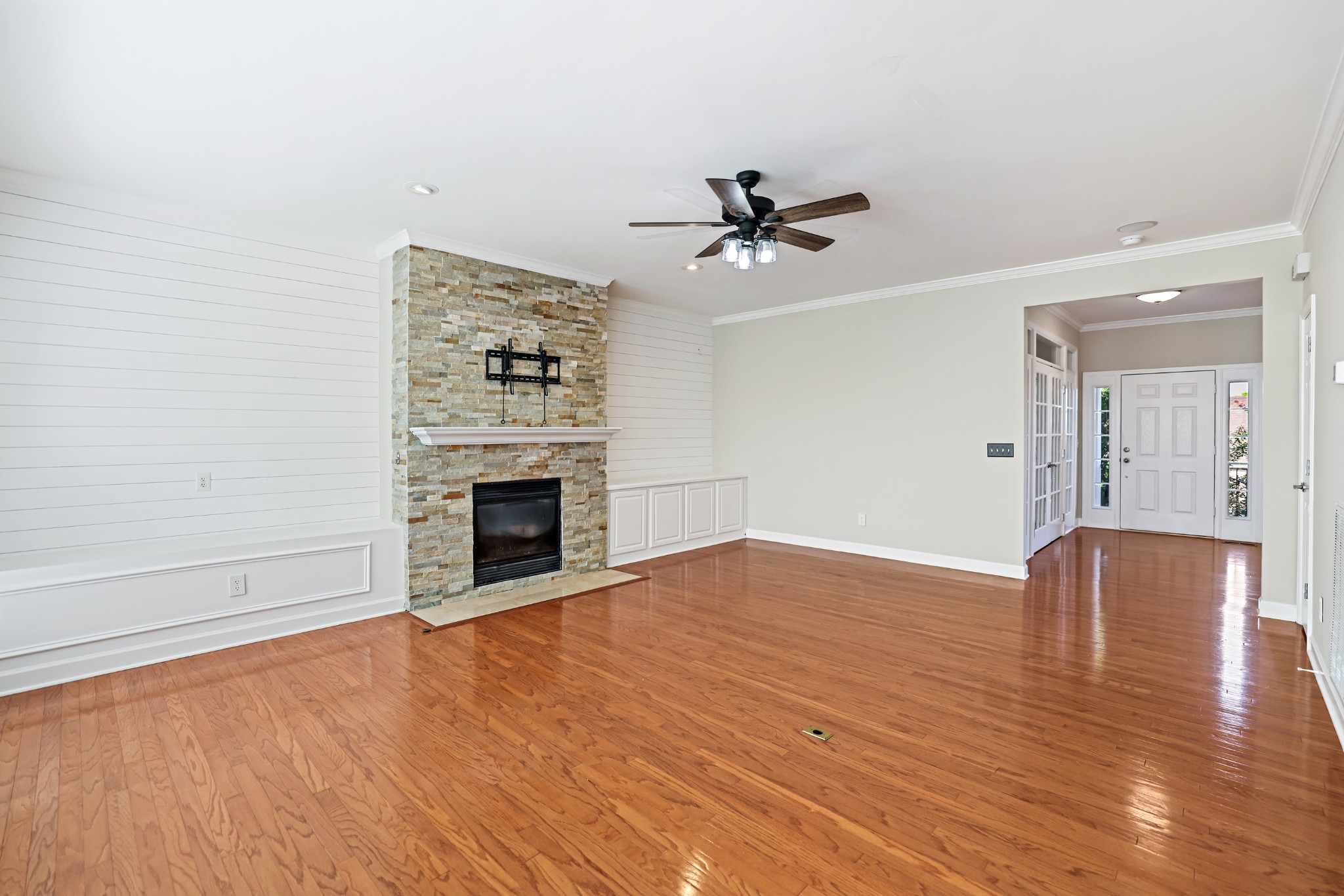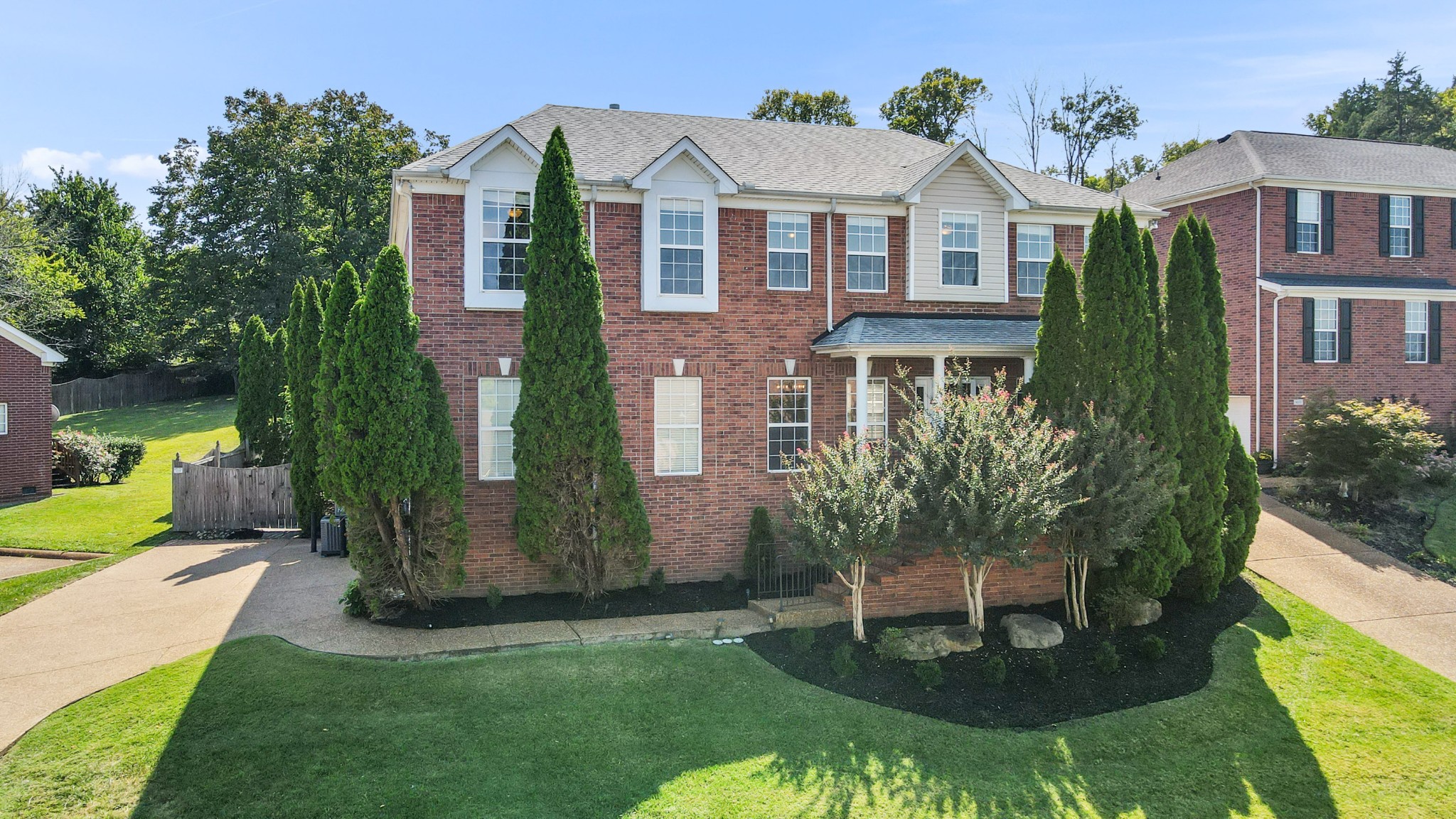 Welcome to this beautifully maintained Brentwood home offering 3,354 square feet of stylish living space with 4 bedrooms and 2.5 bathrooms. Conveniently located just minutes from both Nashville and Cool Springs, this home perfectly blends comfort, modern finishes, and functionality. Step inside the foyer and you’re greeted by a private office with French doors to the right and a formal dining room to the left. The inviting living room boasts a cozy fireplace flanked by built-in storage, while gleaming hardwood floors and shiplap accents add character throughout the main level. The kitchen is a delight with stainless steel appliances and a spacious island with seating. Upstairs, a flexible loft space offers room for work or play. The primary suite impresses with a trey ceiling, navy accent wall, customized walk-in closet, and a spa-like bath featuring a split dual vanity, jacuzzi tub, and glass shower. Relax year-round in the heated and cooled sunroom or step outside to enjoy the fully fenced, oversized backyard, perfect for entertaining, pets, or play. Recent updates include fresh interior paint, updated landscaping, pressure washing around the home, and a cleaned, mitigated crawlspace with a newly installed vapor barrier on September, 2025. Additional highlights include a two-car garage, water softener, gas water heater, new furnace (2024), and a new roof on the sunroom. This Brentwood gem combines space, style, and convenience in one exceptional package. Up to 1% lender credit on the loan amount when buyer uses Seller's Preferred Lender.