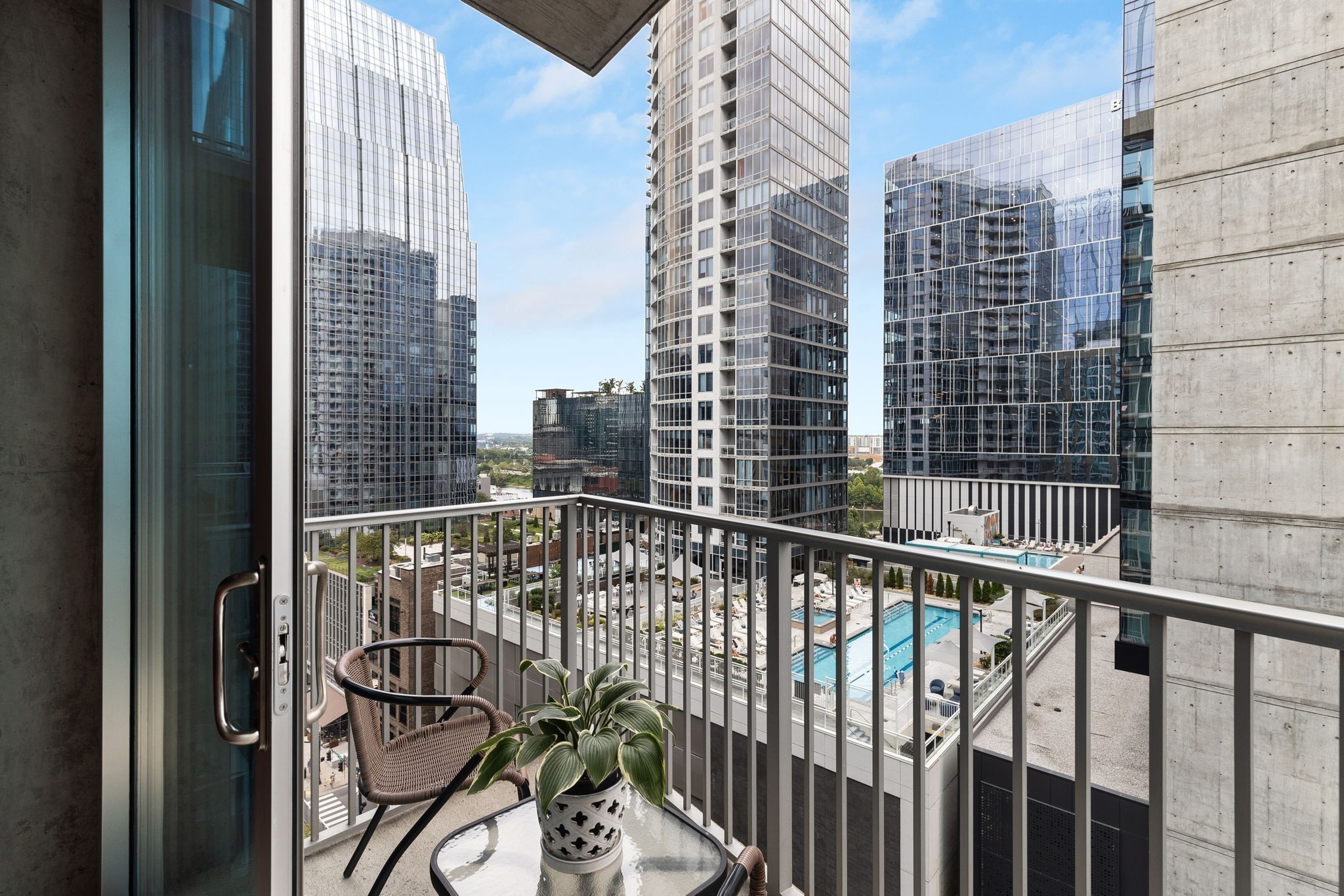 Luxury condo in the heart of downtown Nashville with stunning views! Unit 1313 offers floor to ceiling windows facing the river and a spacious layout with dining area, office nook, private bedroom, and large walk-in closet. Walk to Bridgestone, Ascend Amphitheater, Schermerhorn Symphony Center, Nissan Stadium, and enjoy all downtown Nashville has to offer. Resort-style amenities include 24 hour onsite concierge, rooftop pool, fire pit & grilling stations, fitness center, clubroom with kitchen/bar and game tables, theater room, fitness center, and conference room. Experience an immersive Nashville lifestyle with ultimate comfort and convenience!