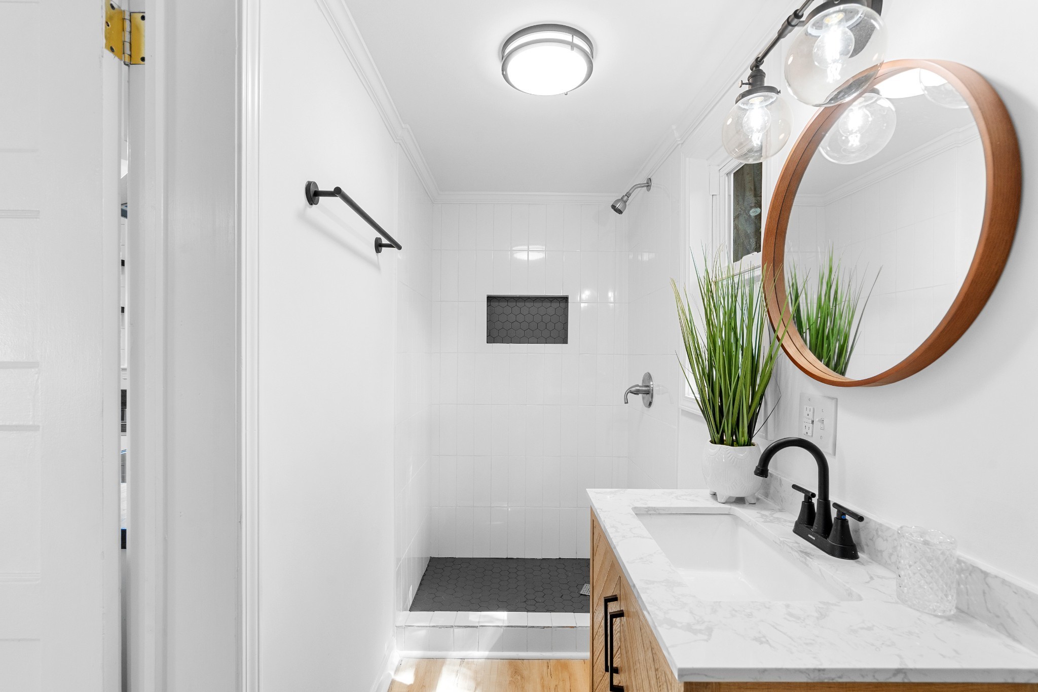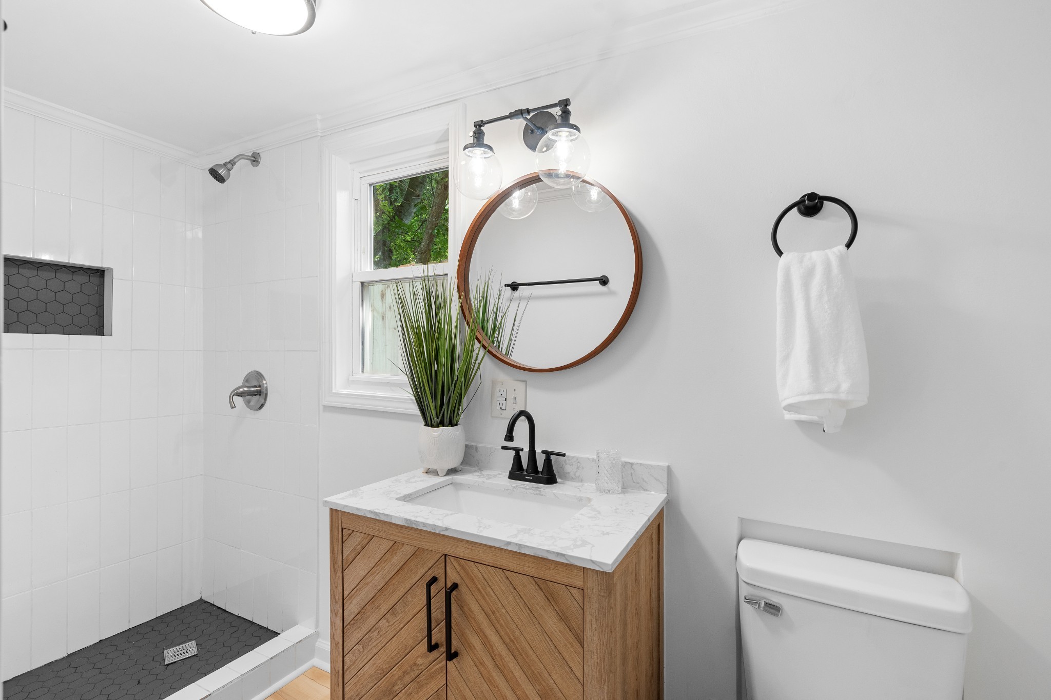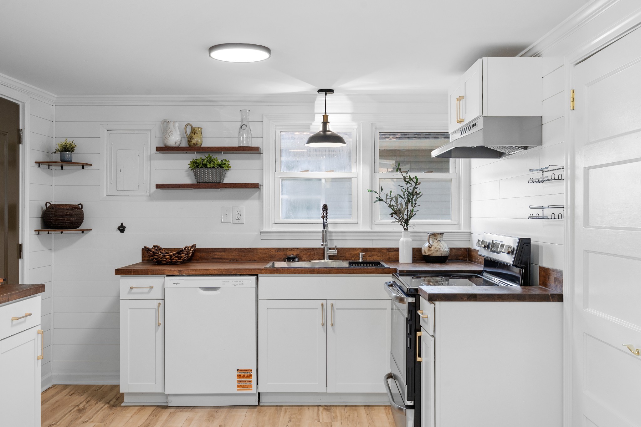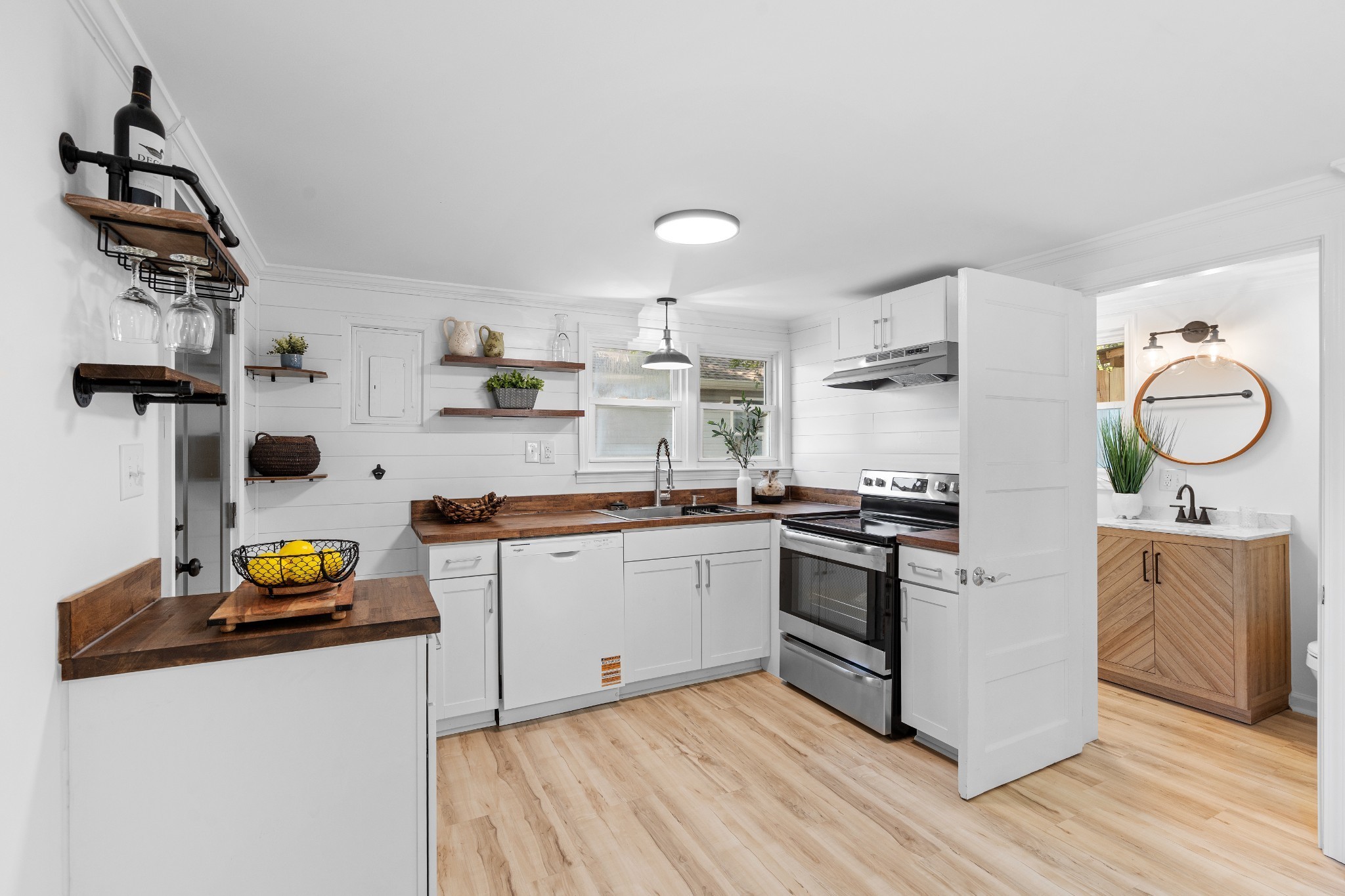 Fully renovated and move-in ready! This home features fresh paint, trim, lighting, LVP and carpet, plus all-new plumbing fixtures. The updated kitchen offers new cabinets, butcher block countertops, stainless appliances, ventless hood, and motion-sensor under-shelf lighting. The bathroom includes a wood-tone vanity with marble top, heated towel rack, and a fully tiled walk-in shower.