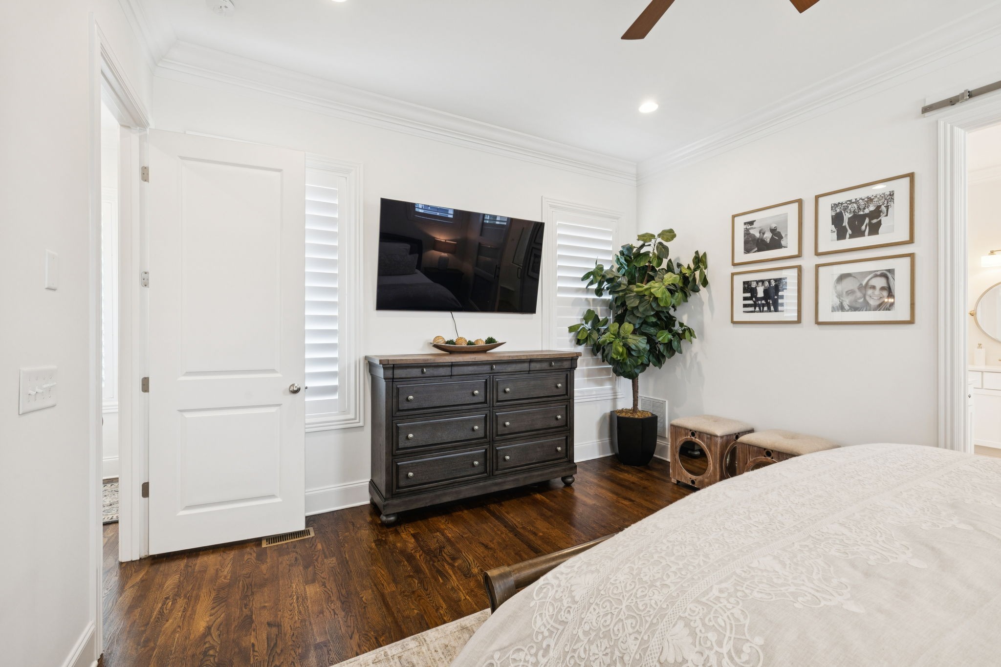 The main-level primary suite provides comfort and convenience, while upstairs you’ll find two additional bedrooms, two full baths, and a spacious bonus room. Throughout the home, enjoy hardwood floors (no carpet), marble and quartz countertops, plantation shutters, and upgraded trim details. The garage features an epoxy finish for durability and style. Home includes a reverse osmosis water filtration system as well as a tankless water heater.