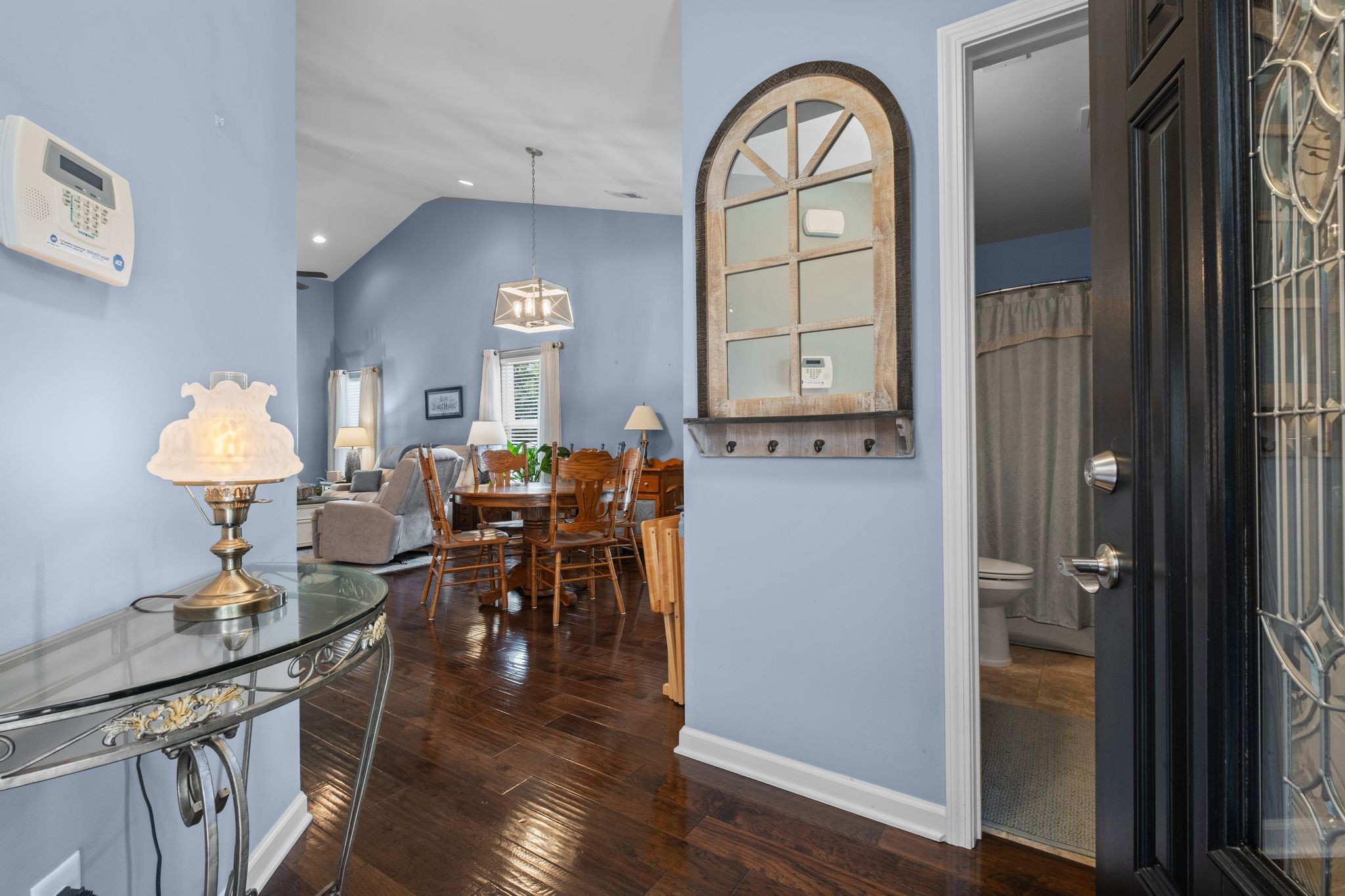 Like-new end unit in a premium setting within the sought-after 55+ community. This home is perfectly positioned with wooded views at the rear and a landscaped side yard, offering a serene natural backdrop. Step through the charming courtyard entry into an inviting floor plan featuring a bright Florida room, a central island kitchen with eat-up bar, glass tile backsplash, stainless steel appliances, and wide plank hand-scraped hardwood flooring. The separate bedroom layout ensures privacy, while the owner’s suite boasts a new deluxe shower. The oversized 2-car garage includes added wall, ceiling, and door insulation, plus attic storage and a Guardian garage floor with warranty. Every detail has been thoughtfully cared for—this home is in excellent condition and move-in ready.