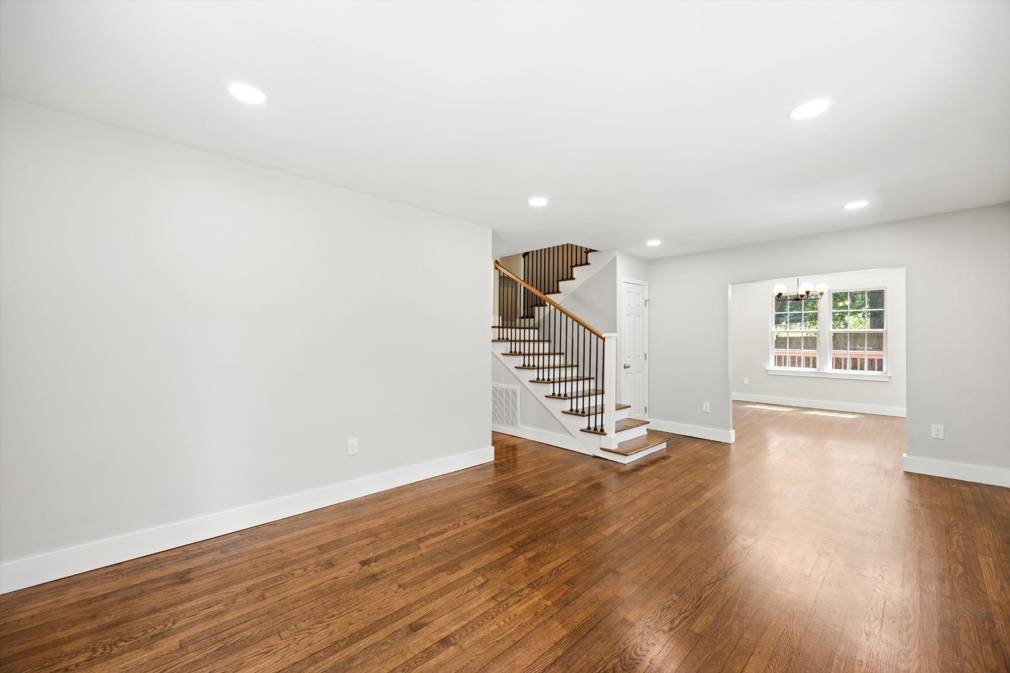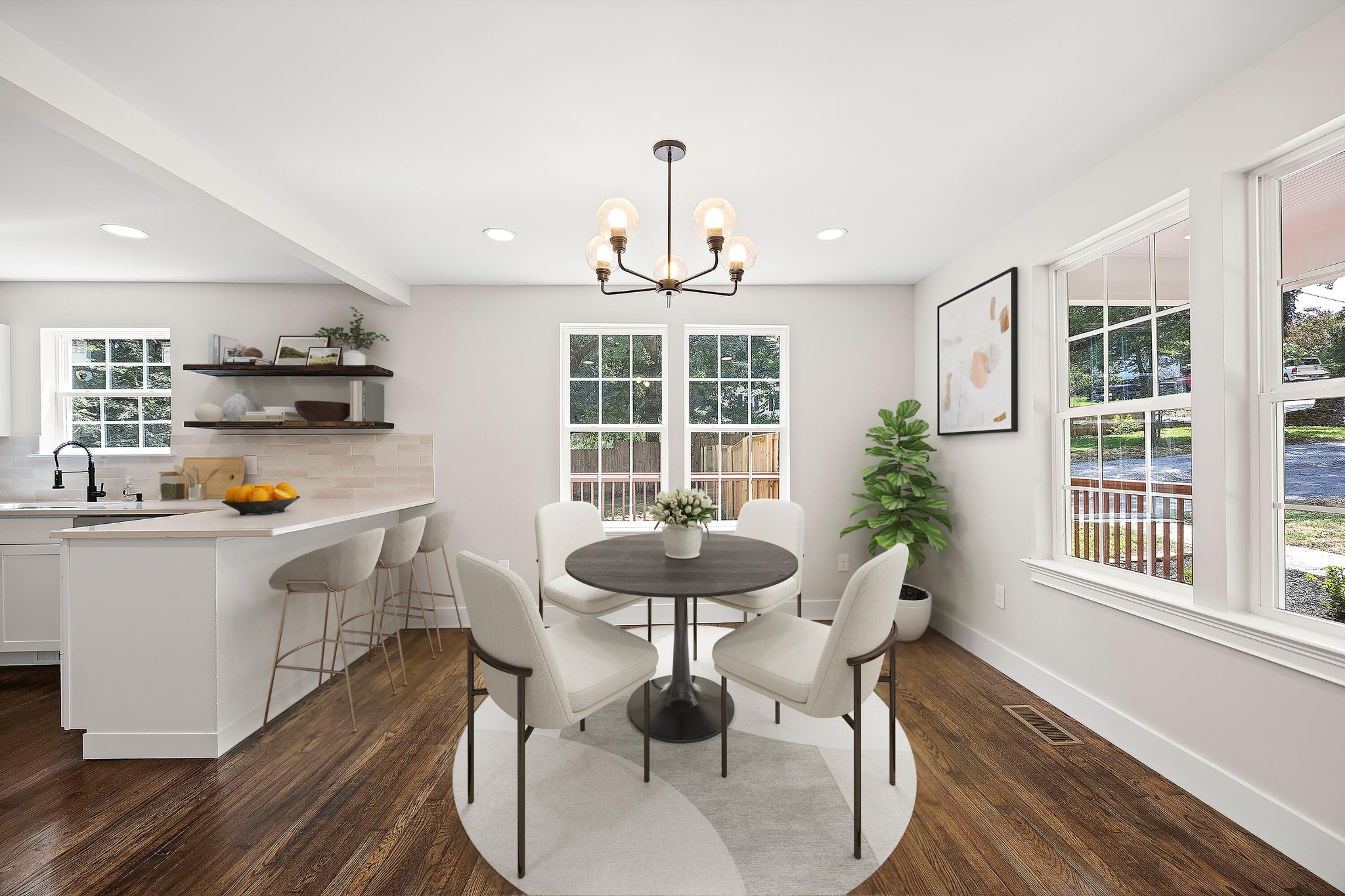 Step onto the inviting rocking-chair front porch and enter a spacious, thoughtfully designed, updated home where original hardwood floors have been restored! The open-concept main level features a bright living room that flows into a large dining area and a stunning kitchen.