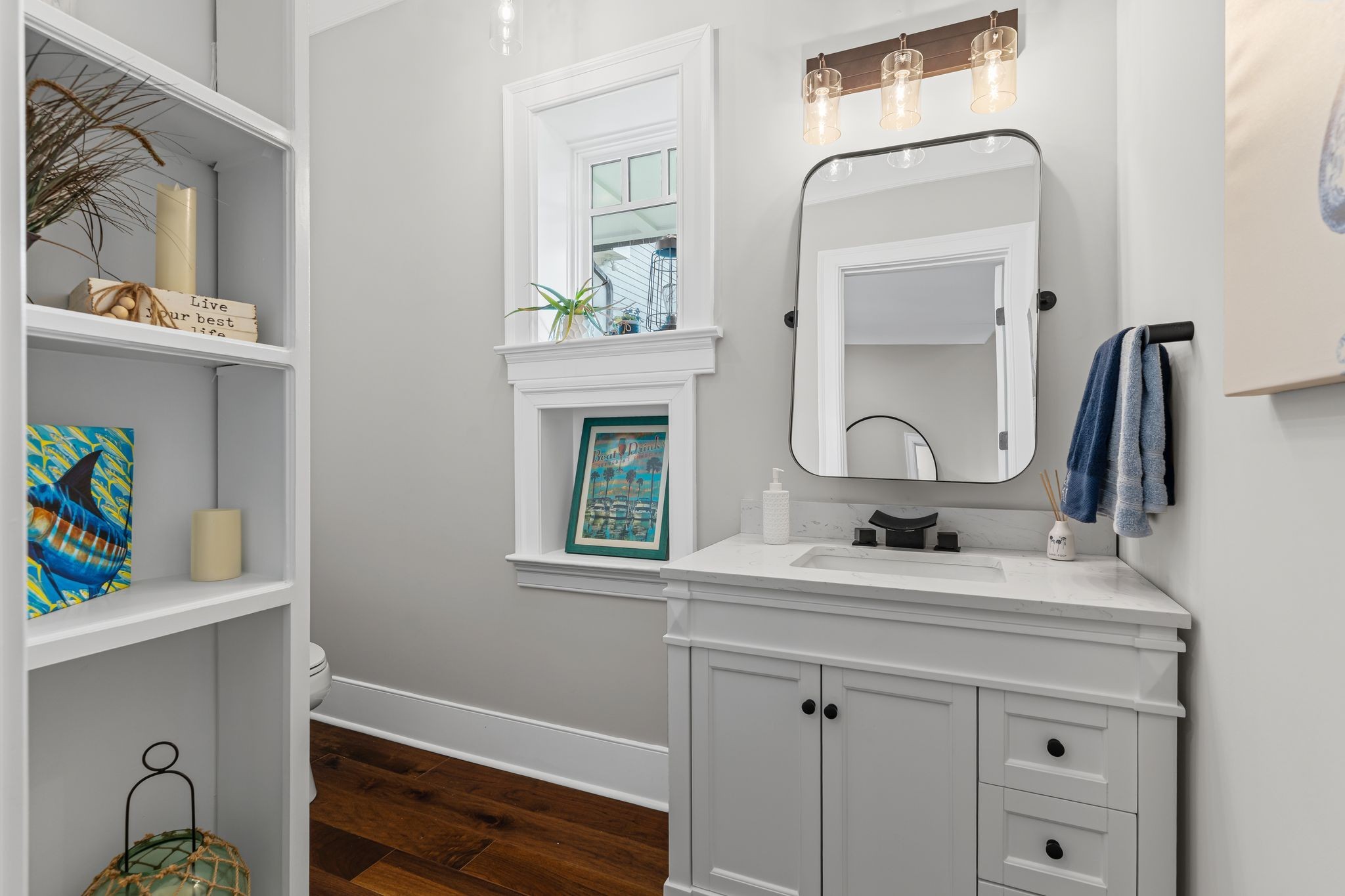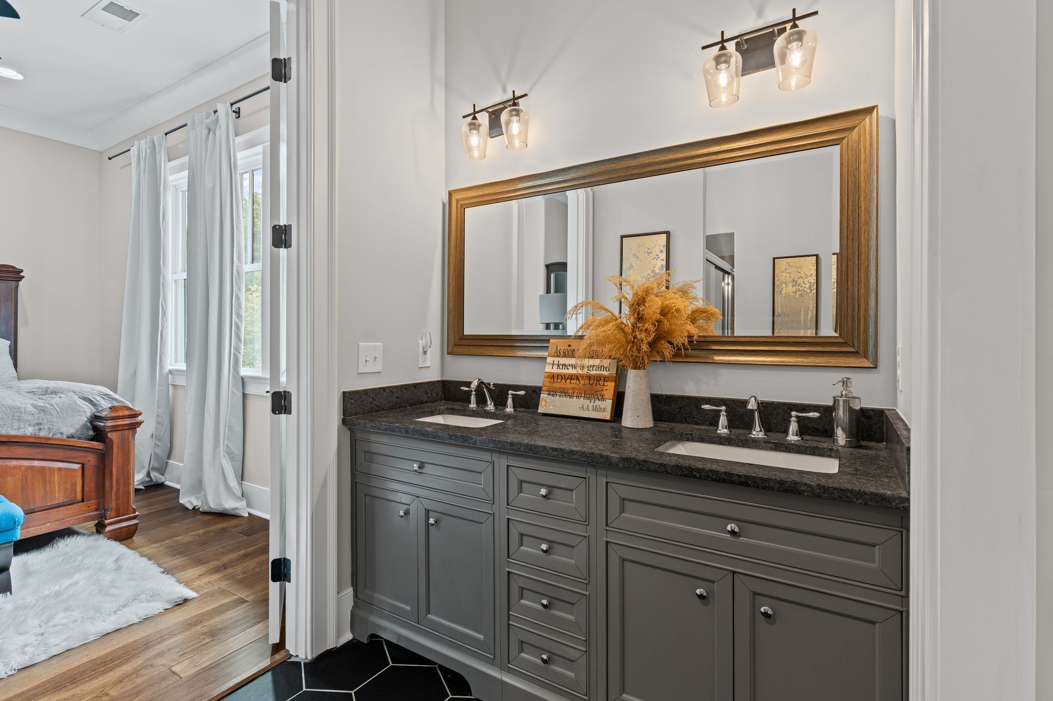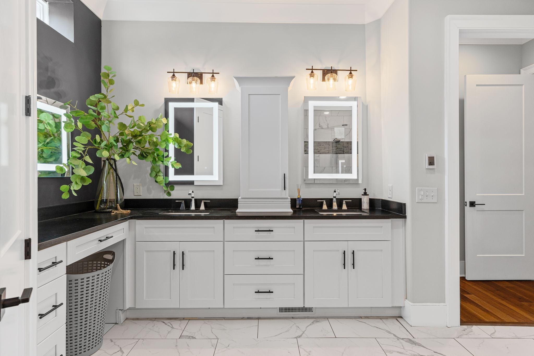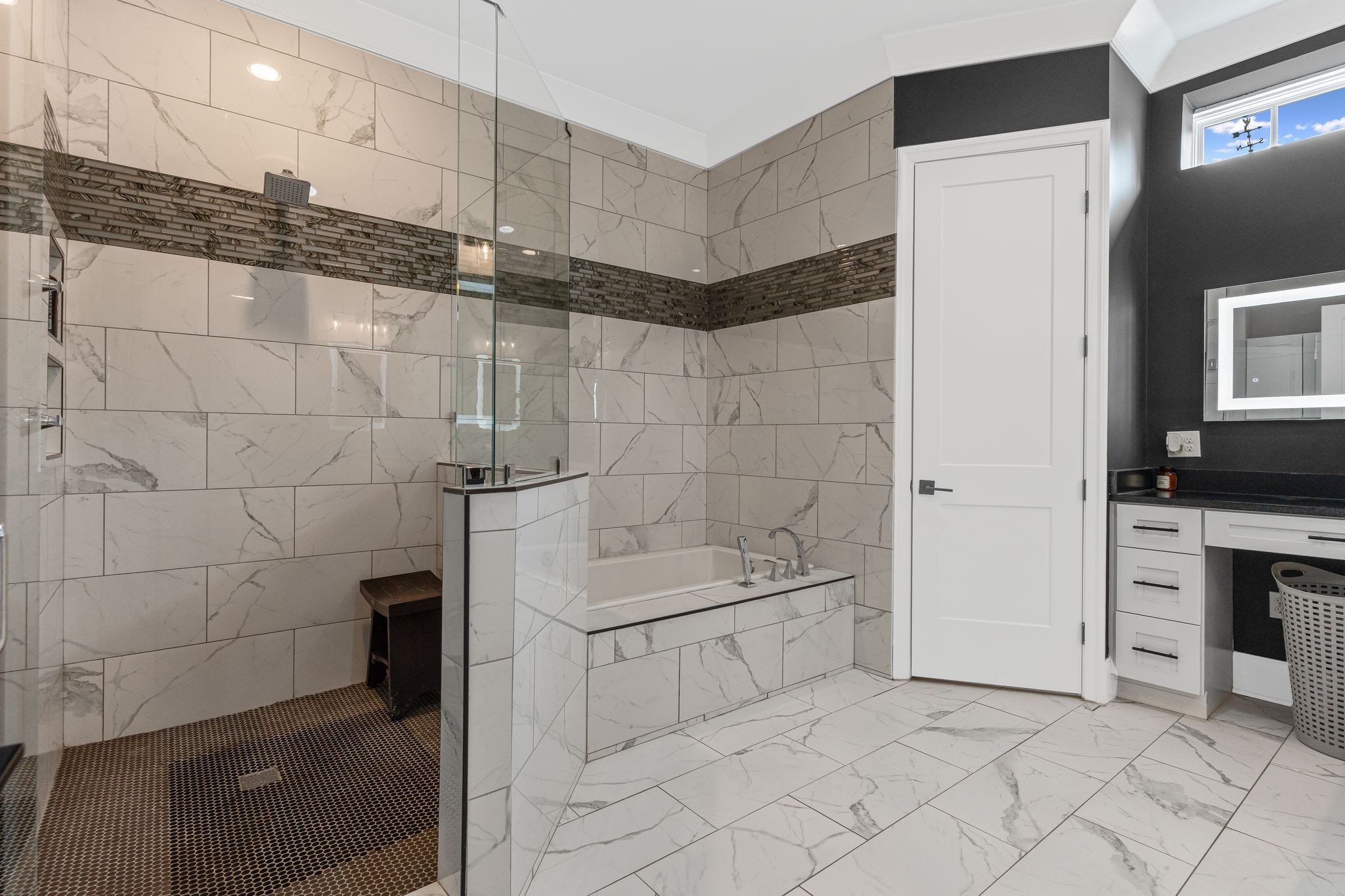 Inside the main home, every inch has been thoughtfully reimagined from the studs out. Gleaming hardwood and tile flooring throughout, rich trim work, and an exquisite owner’s suite featuring a spa-like bathroom and a showstopping dressing room with a custom-designed closet.