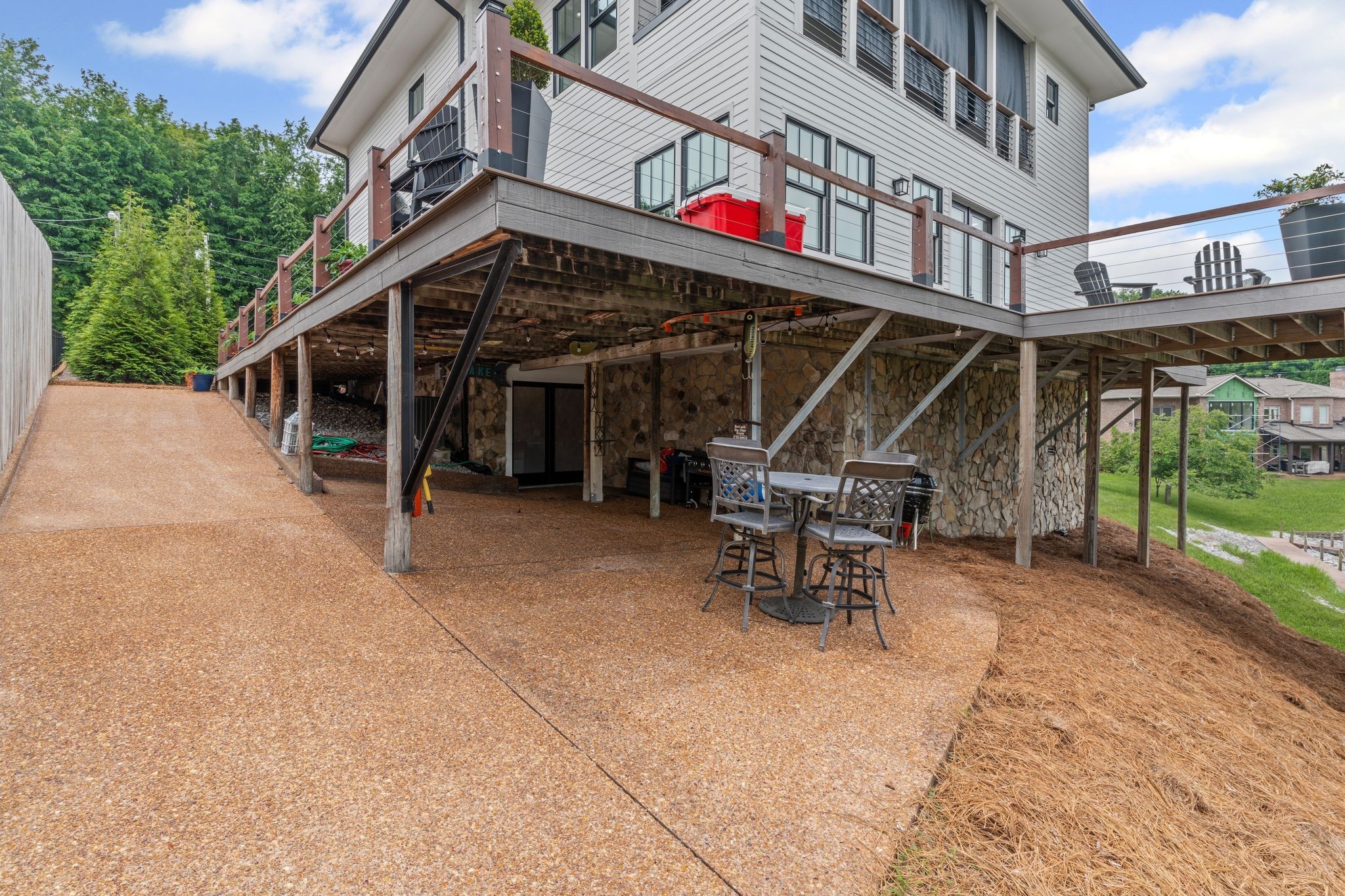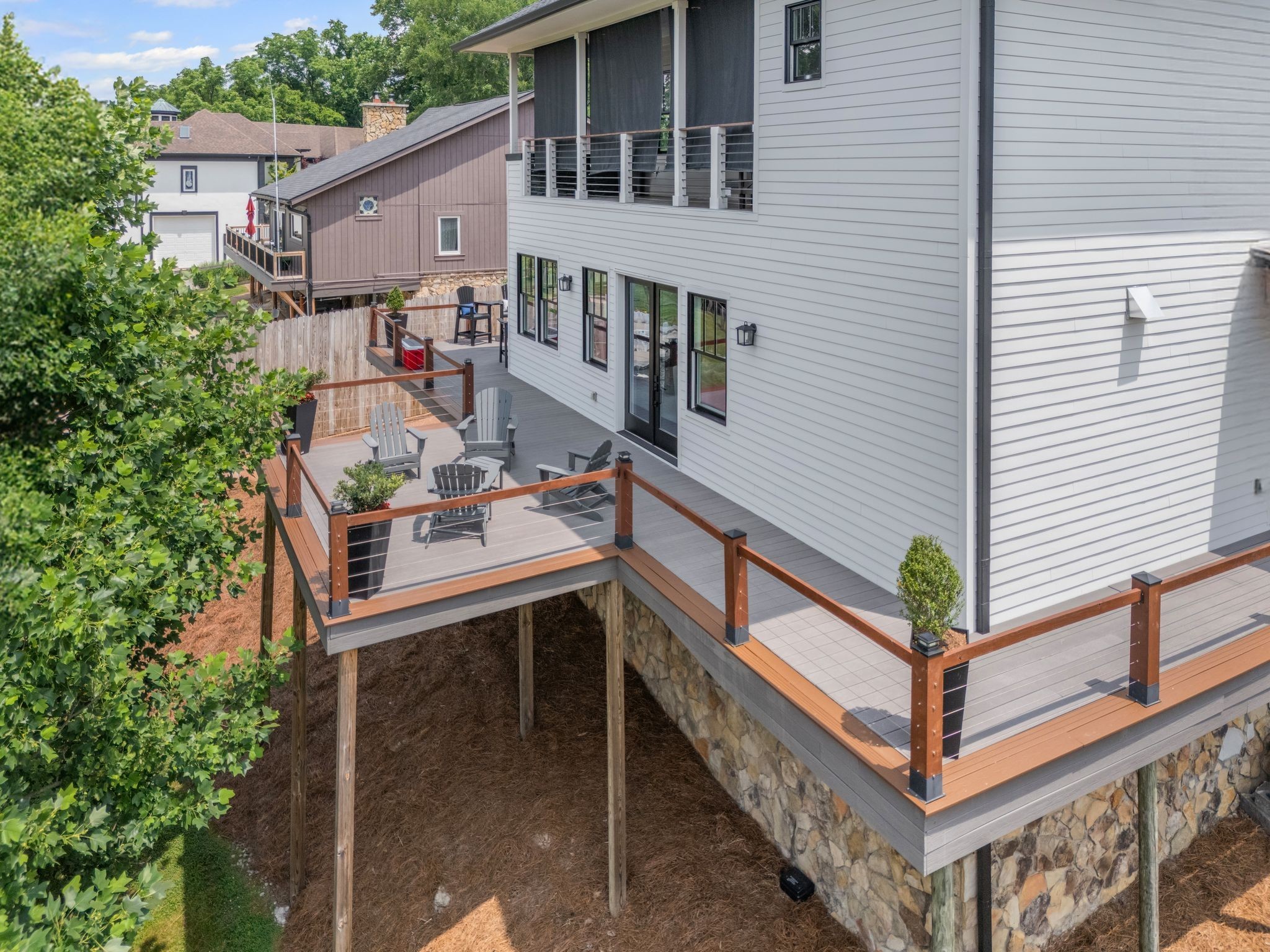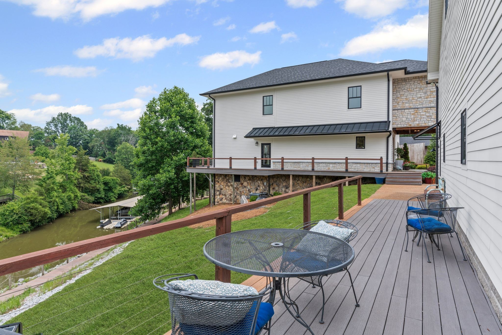 Welcome to your dream lake retreat! This stunning, fully remodeled lakefront home is the perfect blend of luxury, comfort, and lifestyle. Nestled in a peaceful cove, enjoy breathtaking water views from the expansive wrap-around deck—ideal for morning coffee, evening sunsets, or entertaining under the stars. A private staircase leads you down to the scenic community boardwalk, which winds along the shoreline and connects you to two deeded boat slips w/ power—just bring your water toys!