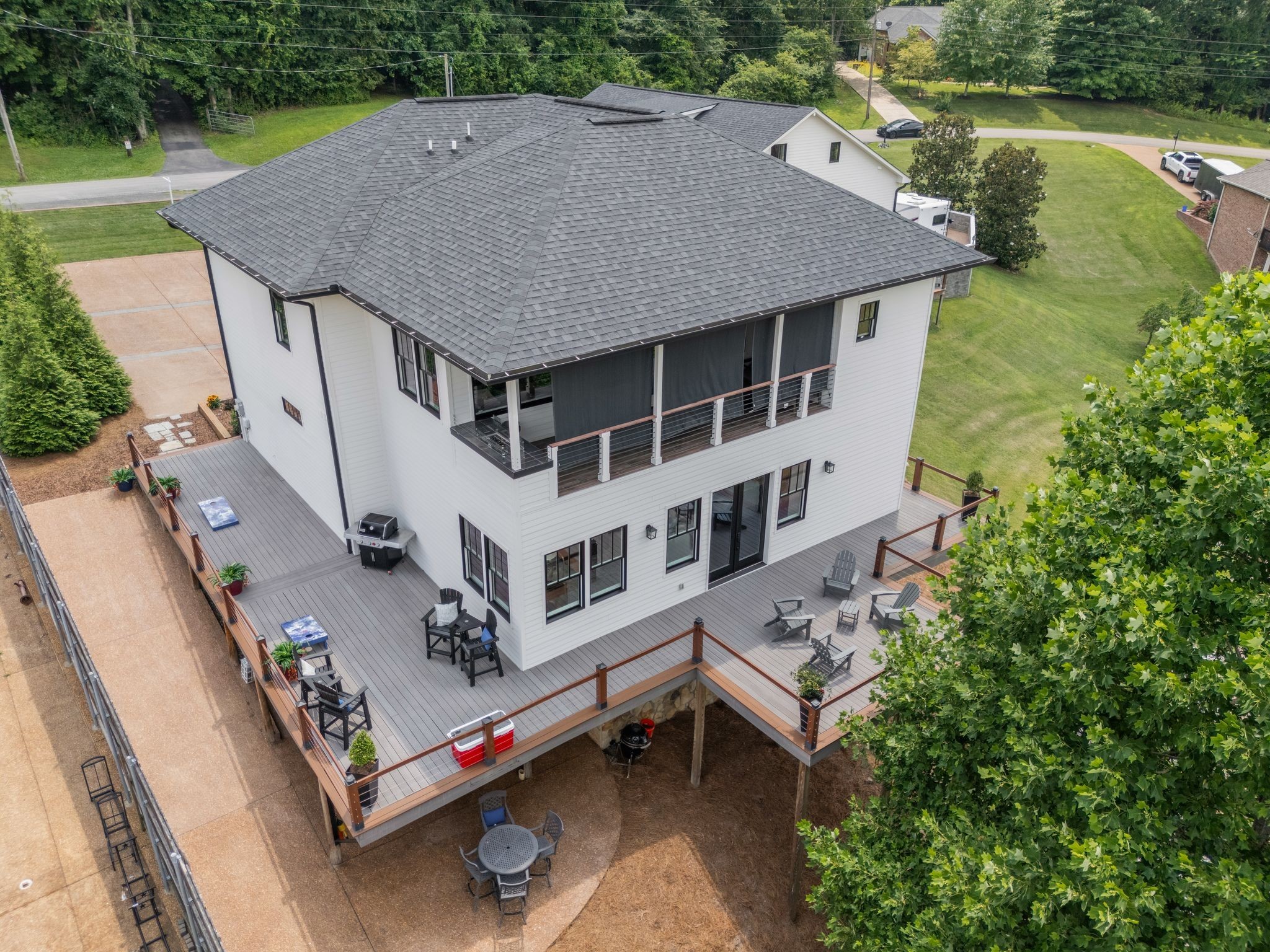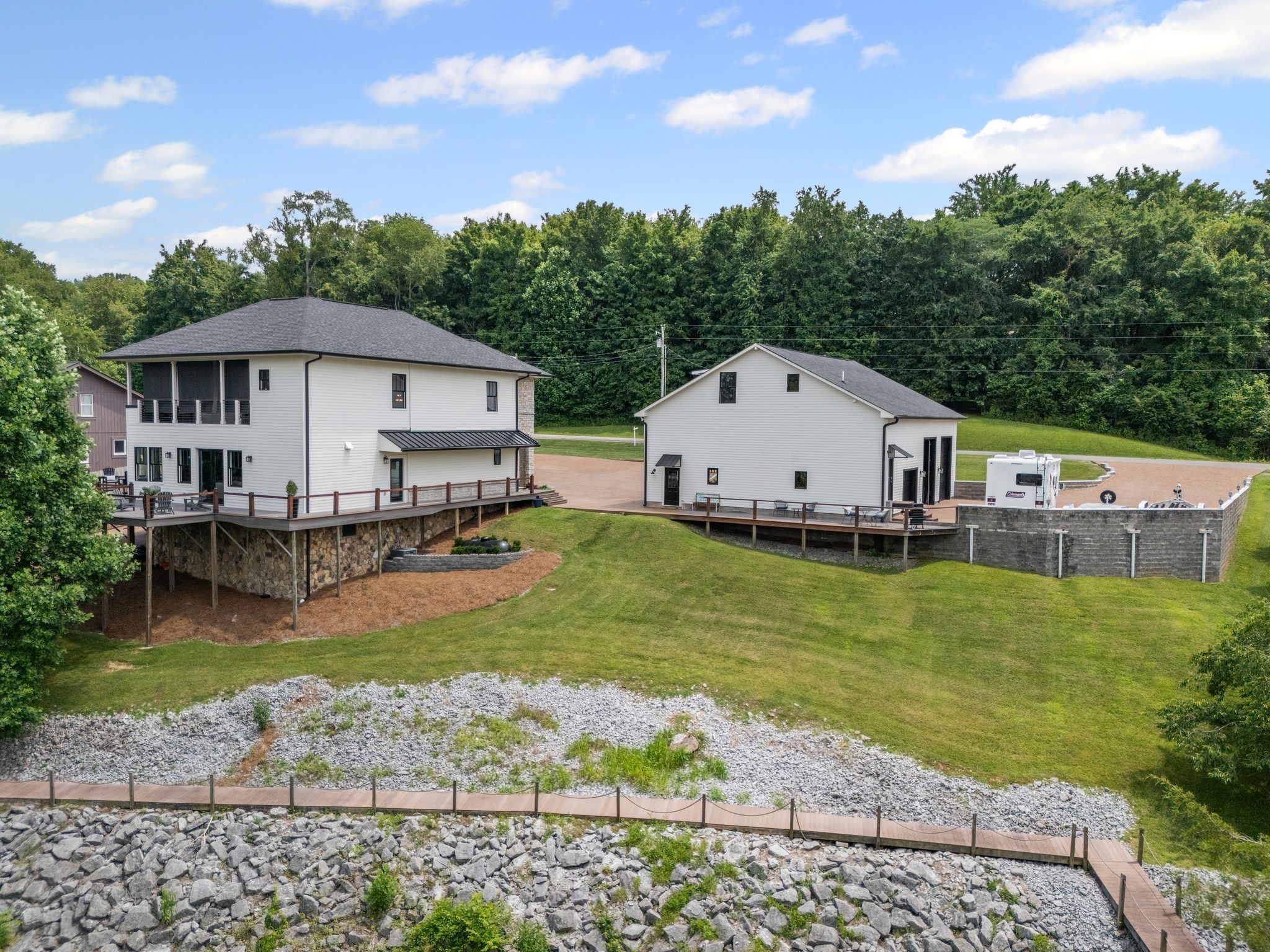 The showstopper? A massive detached 50' x 40', 8-car garage, fully insulated with central HVAC, perfect for storing boats, RVs, cars, or converting into the ultimate workshop or hobby space with 1/2 bath.. Above the garage sits a fabulous 2-bedroom apartment (approx. 1,400 sq ft) with its own full kitchen and bath—ideal for guests, extended family, or rental income.