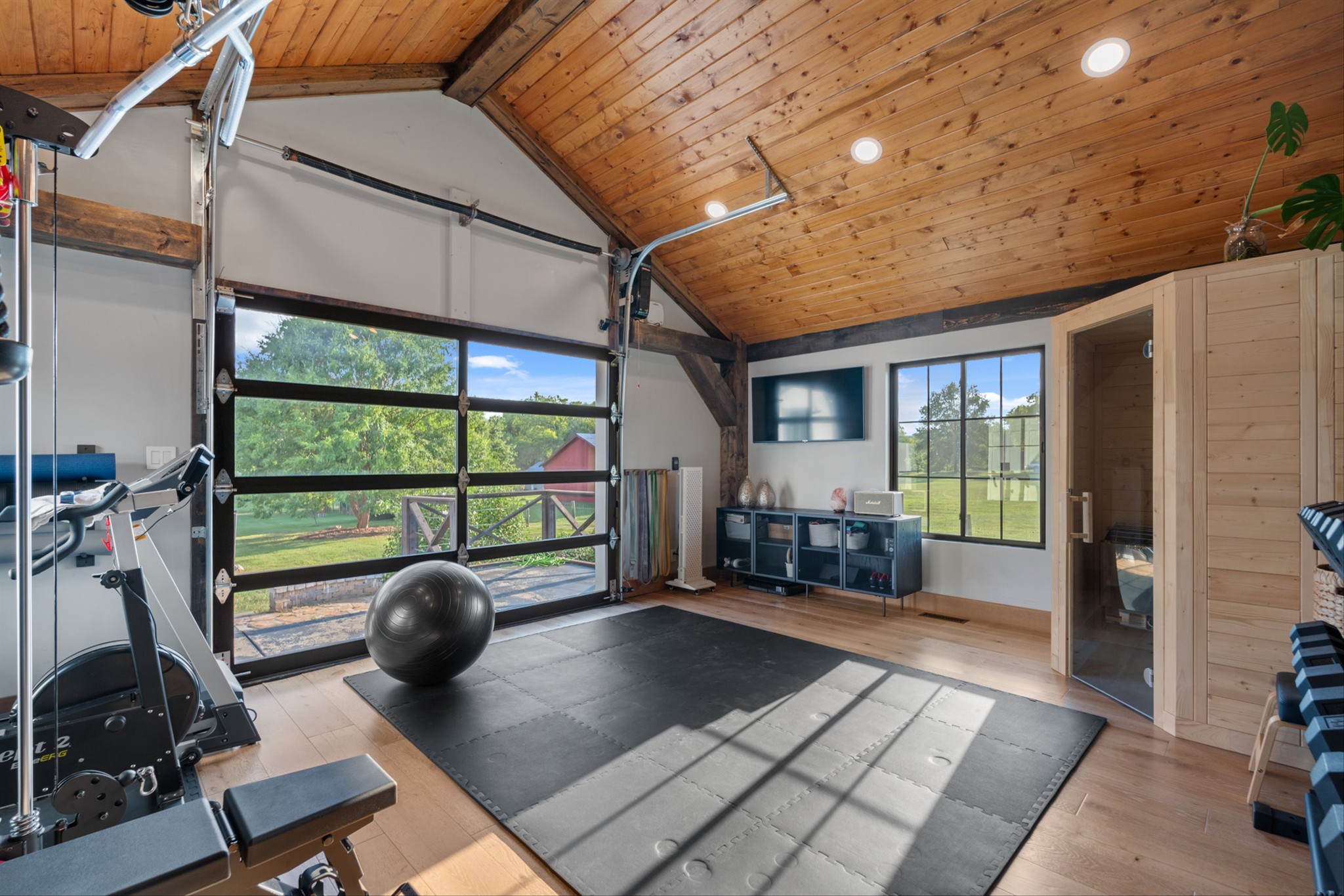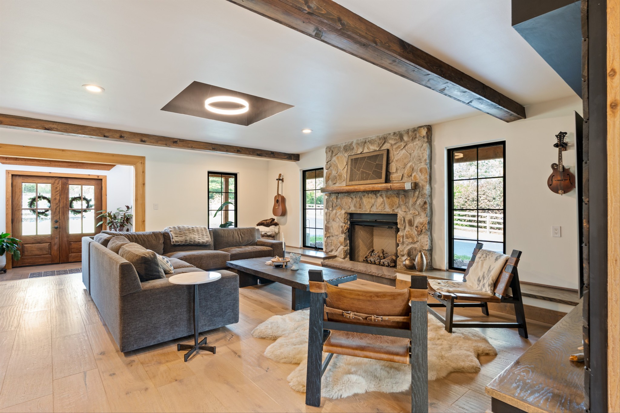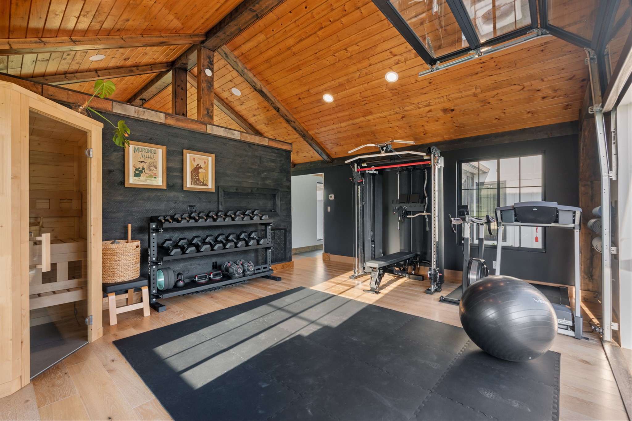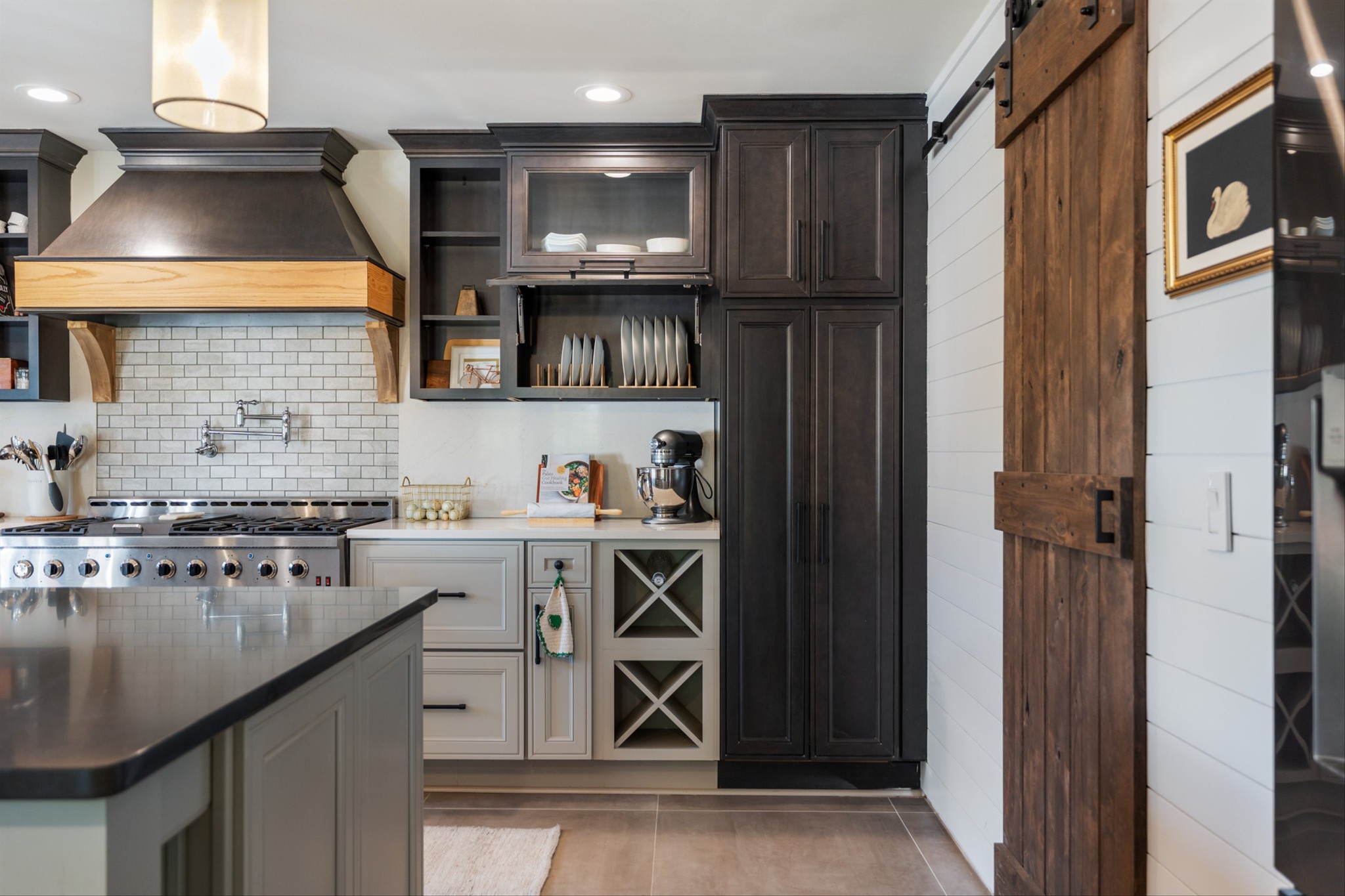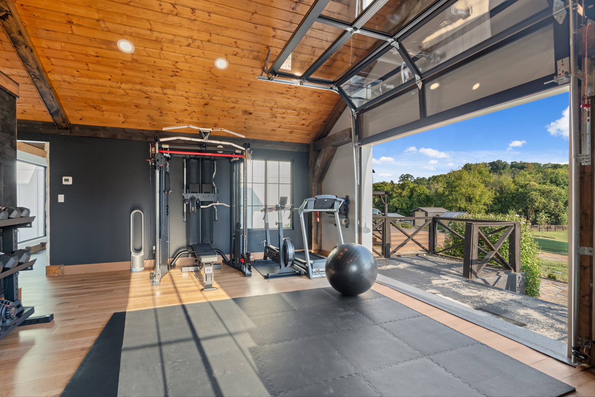 Step inside to a stunning layout featuring a private home gym with custom glass doors that open to the backyard, a separate corporate-style office, and a chef’s kitchen with a 6-burner gas range, custom waterfall coffee bar, and wine bar with dual refrigerators. Cedar accents, two gas fireplaces, and spa-inspired bathrooms with oversized rain-shower retreats add warmth and sophistication throughout.