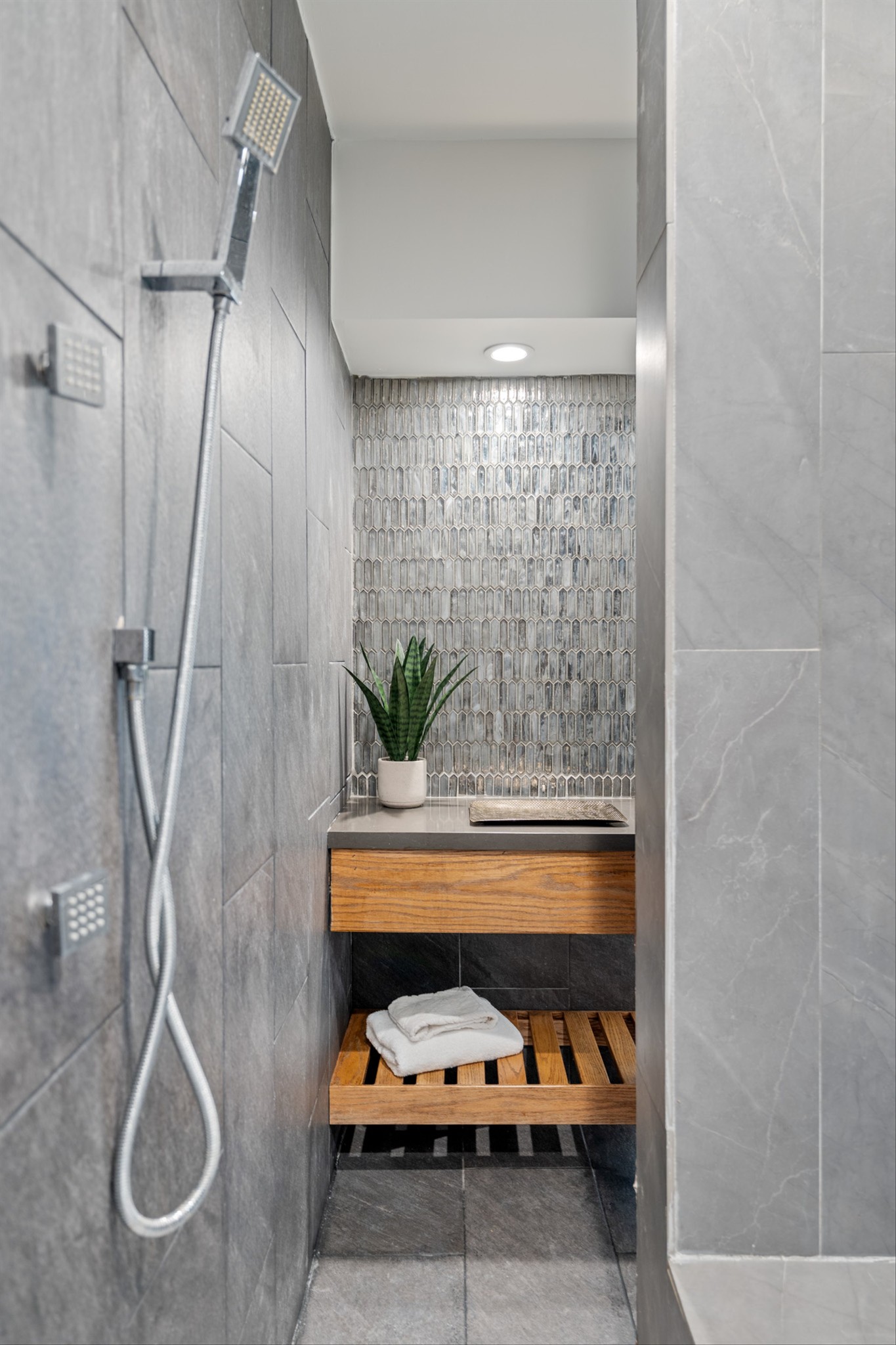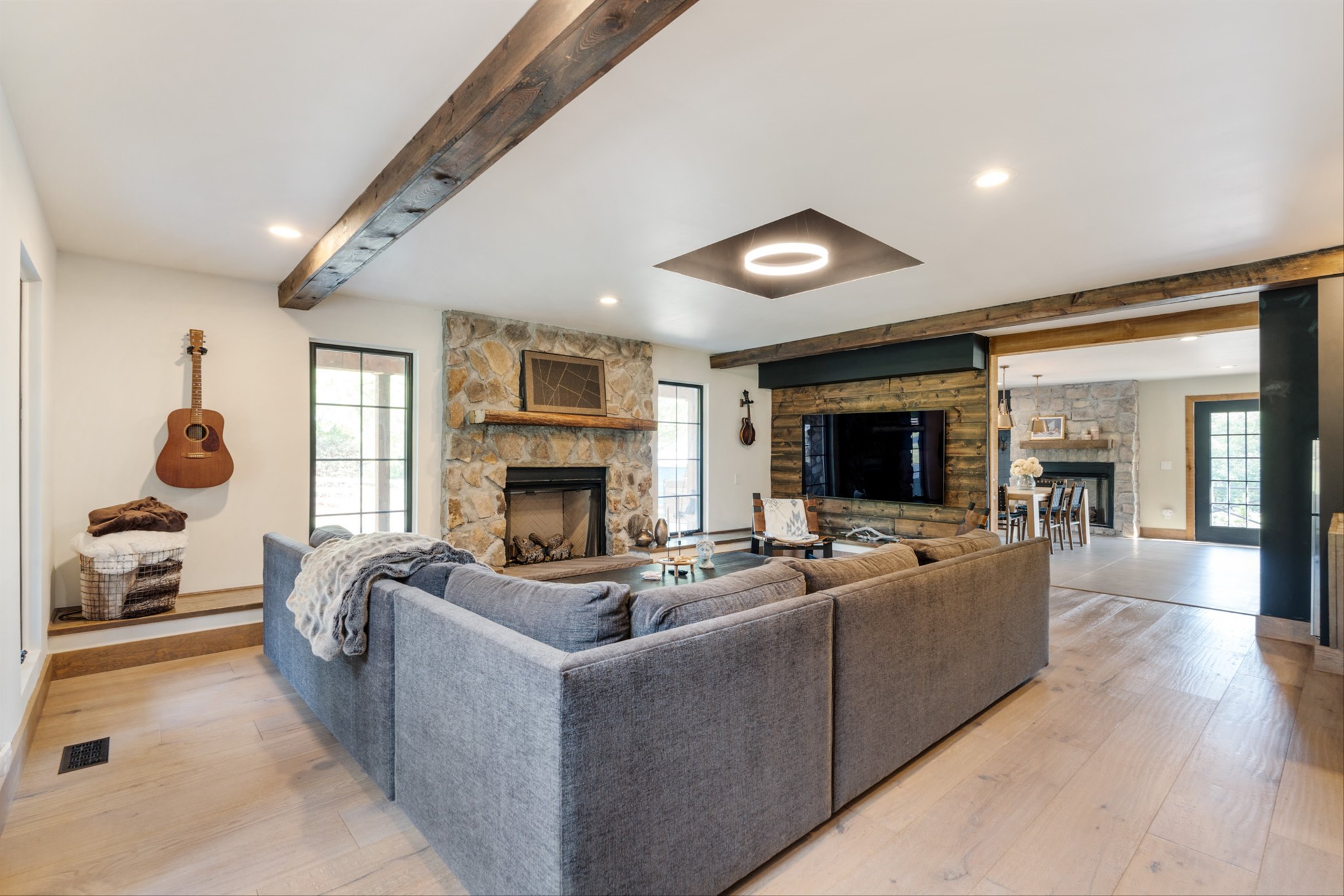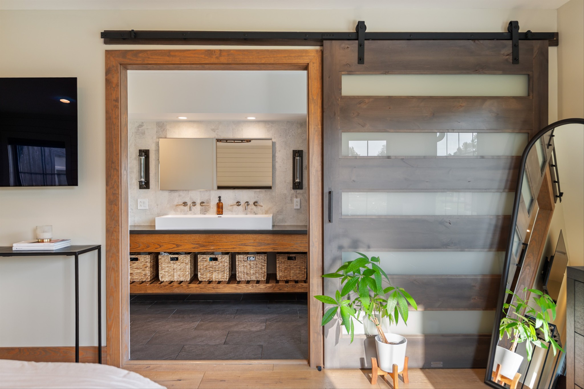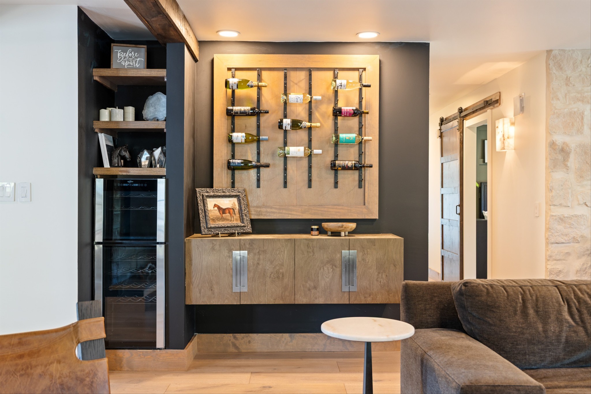 Step inside to a stunning layout featuring a private home gym with custom glass doors that open to the backyard, a separate corporate-style office, and a chef’s kitchen with a 6-burner gas range, custom waterfall coffee bar, and wine bar with dual refrigerators. Cedar accents, two gas fireplaces, and spa-inspired bathrooms with oversized rain-shower retreats add warmth and sophistication throughout.