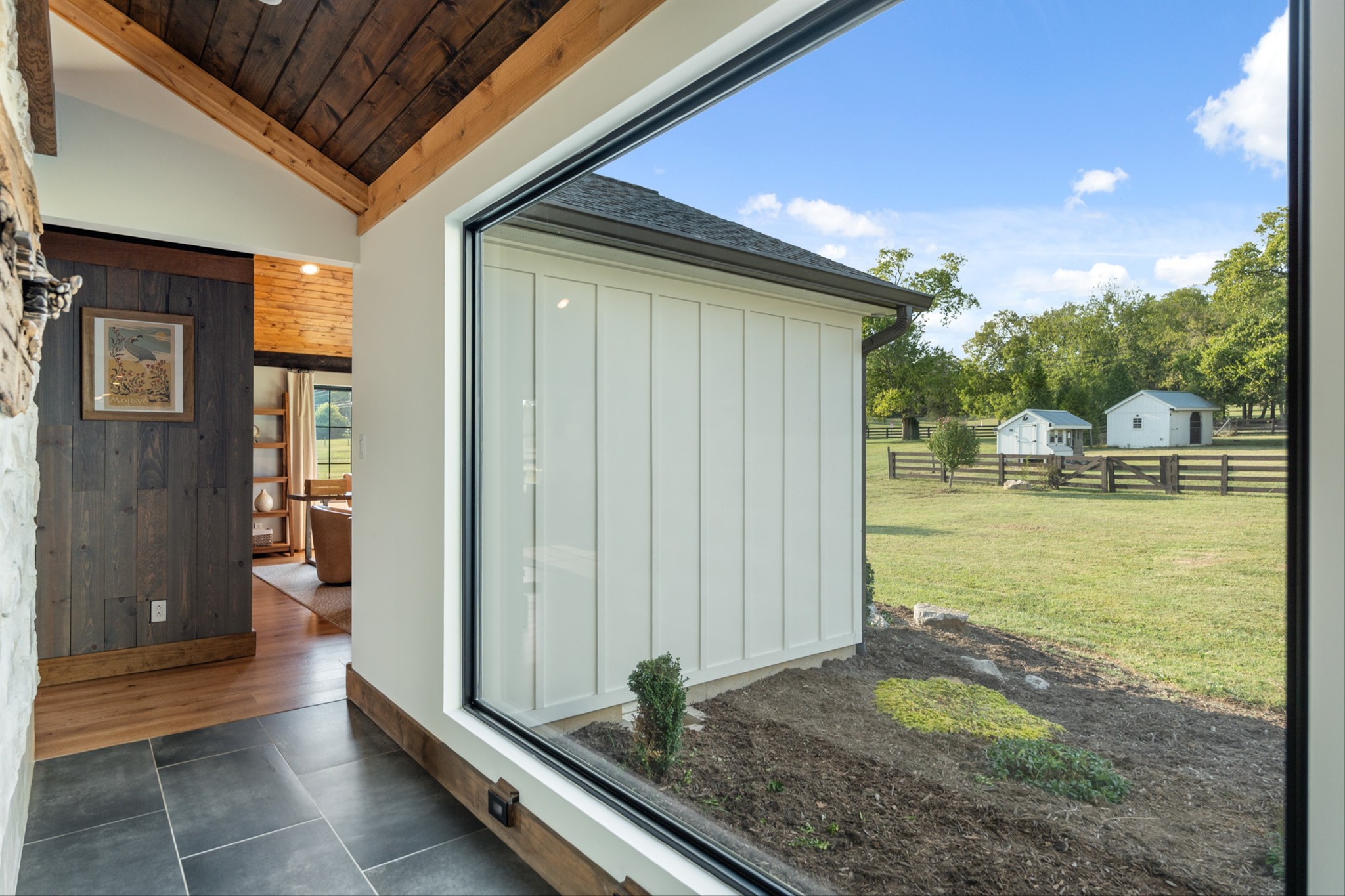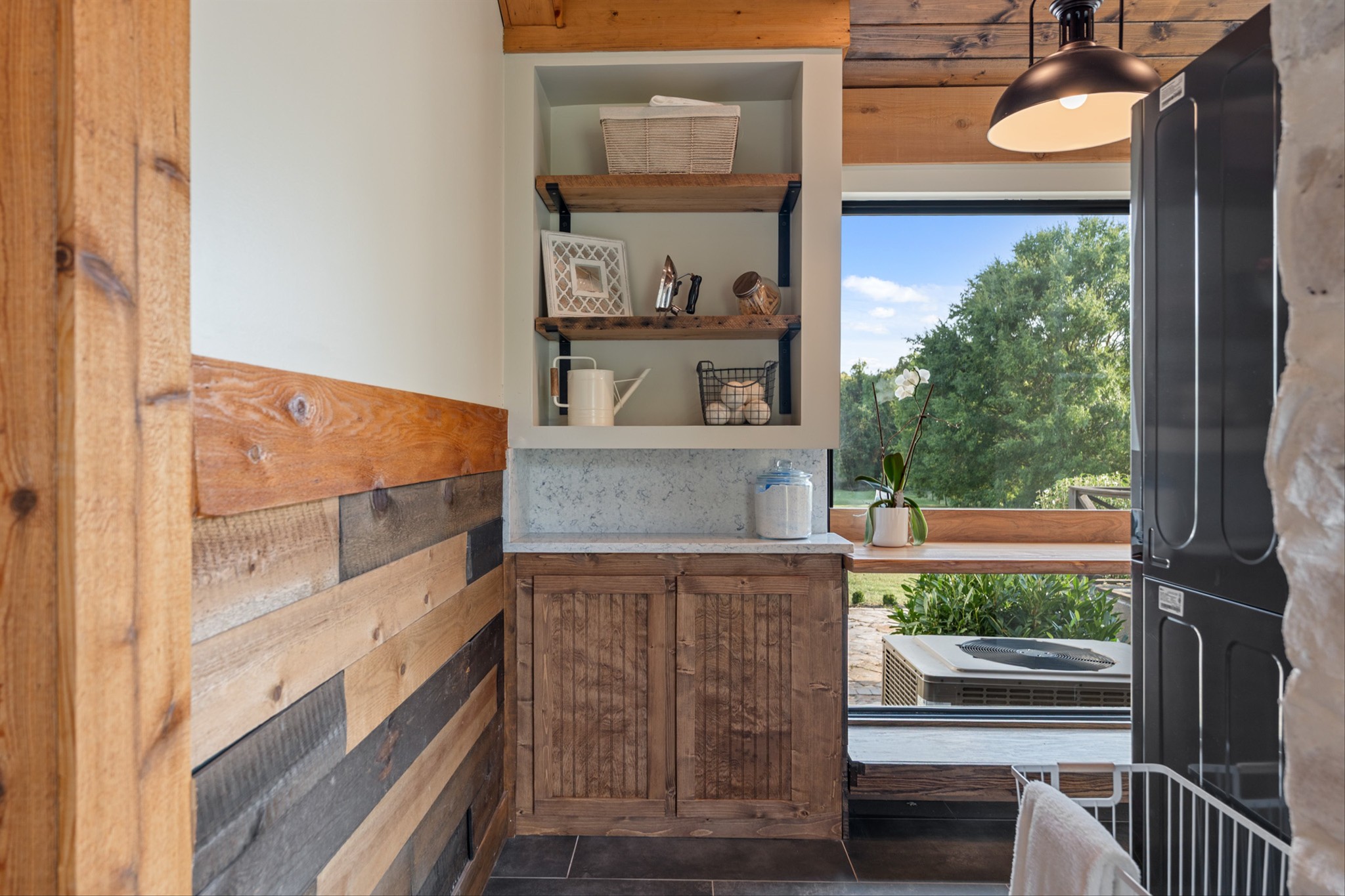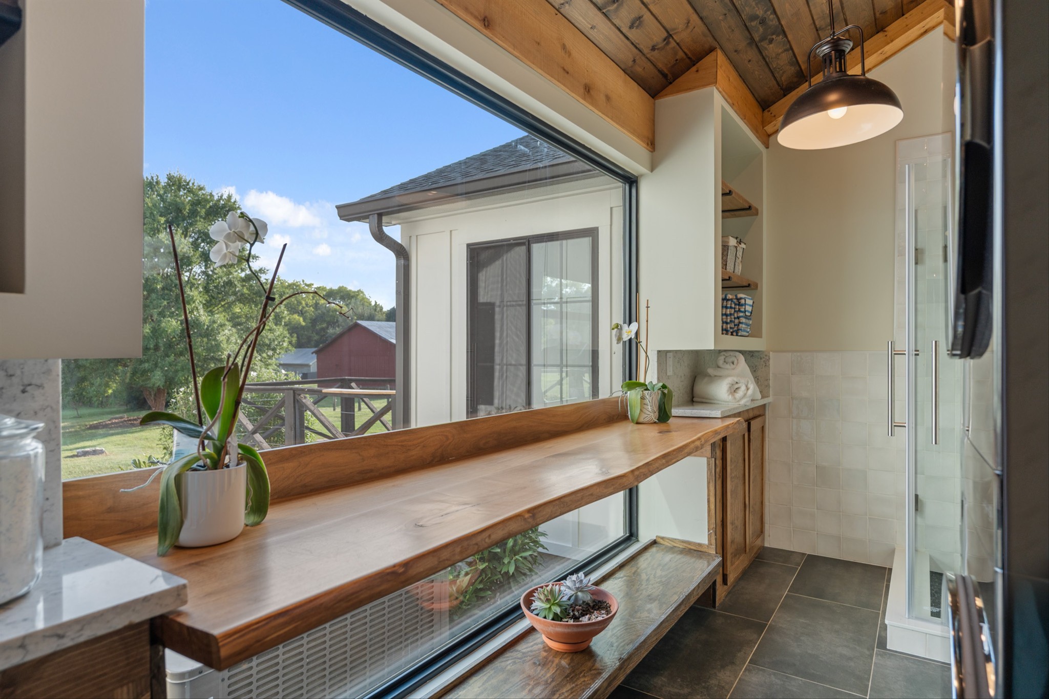 Details like a live-edge laundry shelf overlooking the backyard, a custom dog spa bath/shower, and seamless indoor-outdoor living elevate the everyday. Entertain with ease in the covered outdoor kitchen and living space, or explore your property complete with walking trails, two fenced areas, a greenhouse, and outbuilding for storage and hobbies.