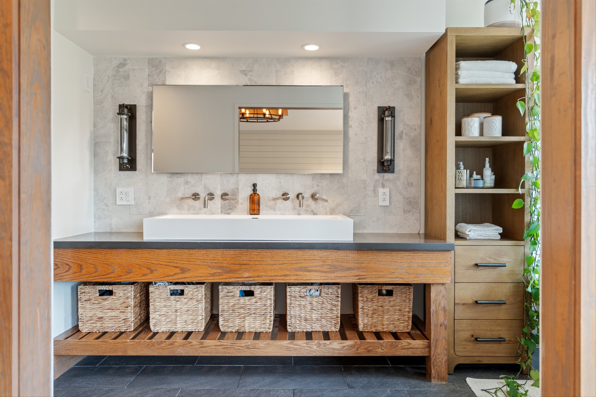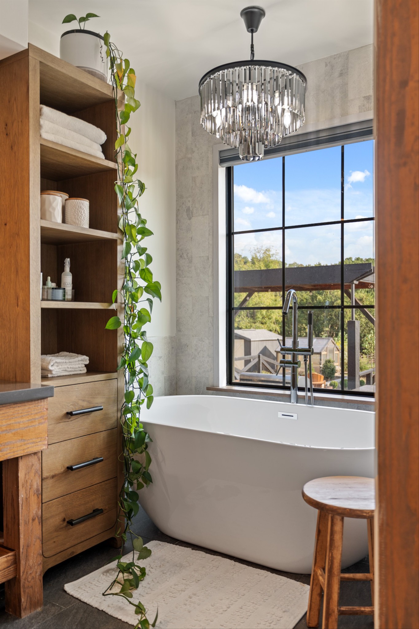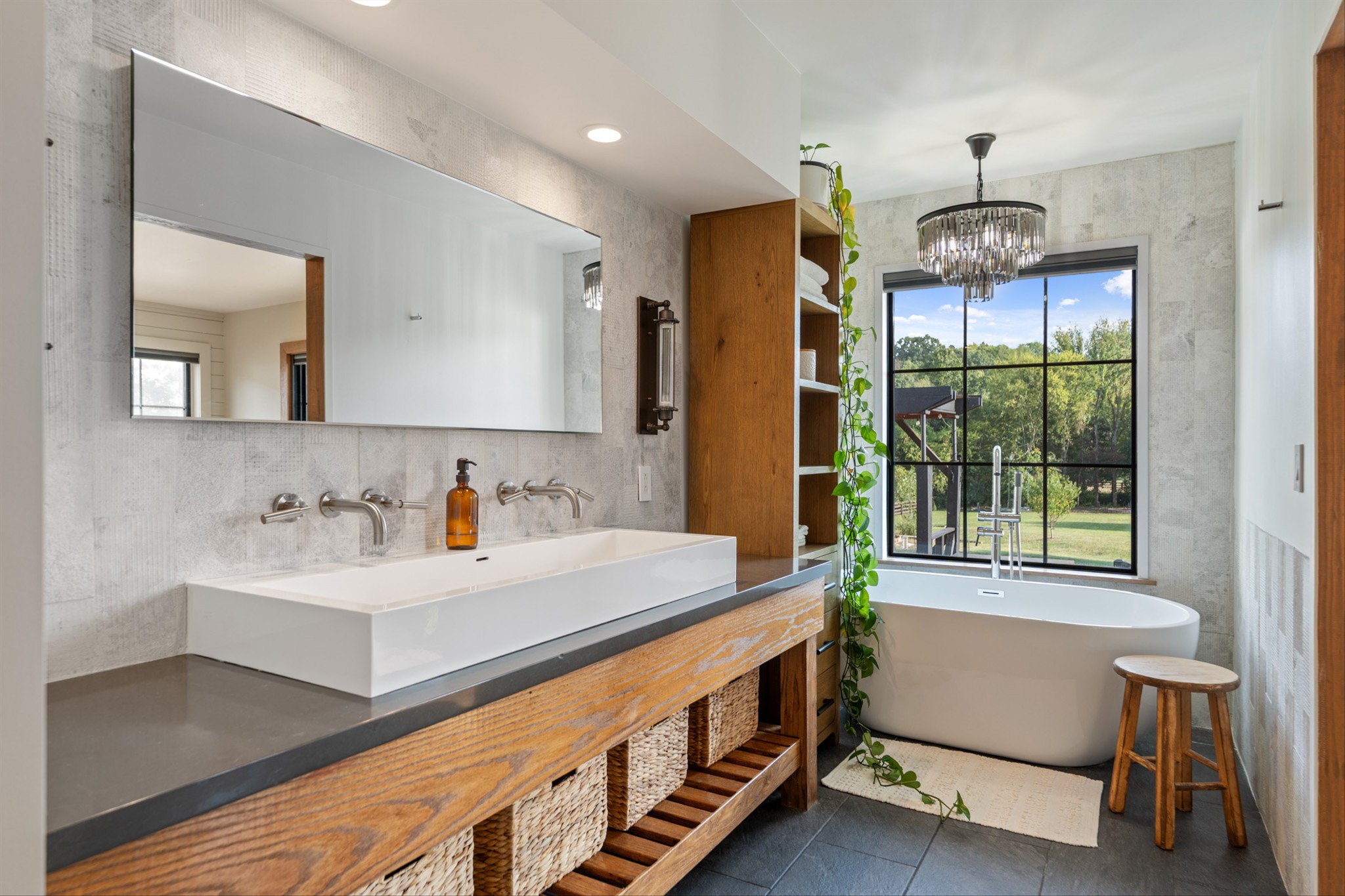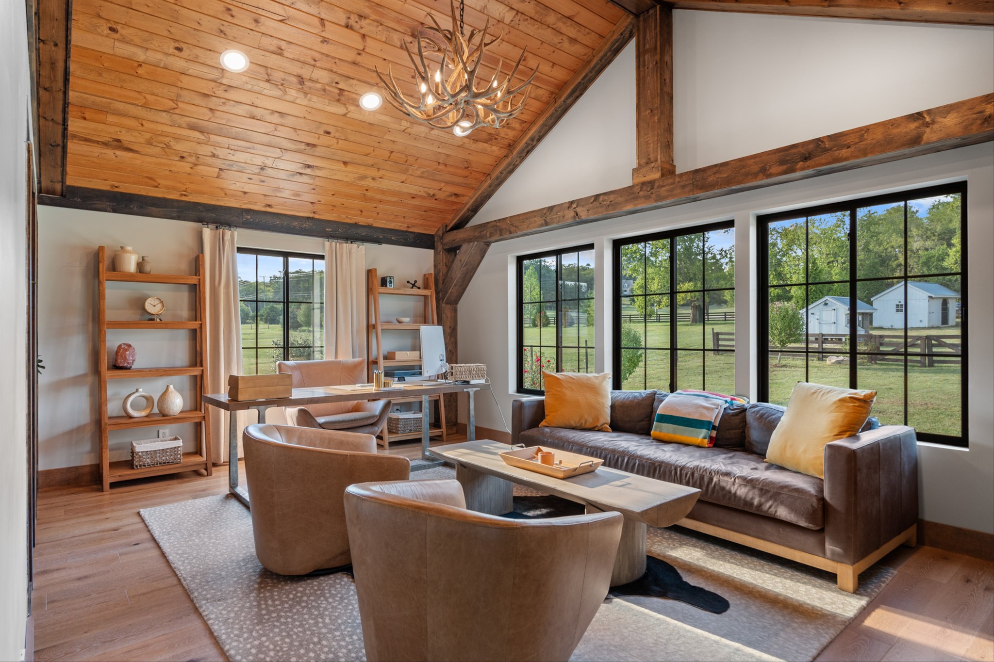 Details like a live-edge laundry shelf overlooking the backyard, a custom dog spa bath/shower, and seamless indoor-outdoor living elevate the everyday. Entertain with ease in the covered outdoor kitchen and living space, or explore your property complete with walking trails, two fenced areas, a greenhouse, and outbuilding for storage and hobbies.