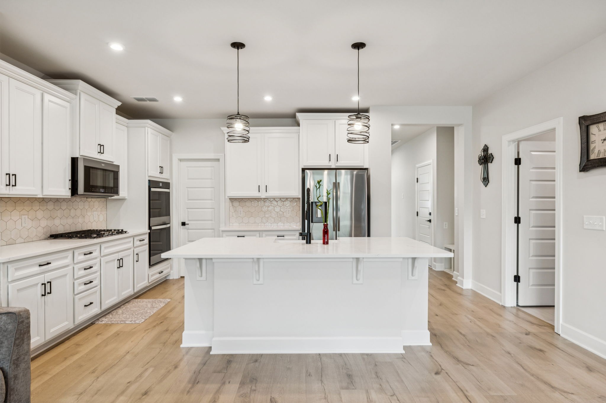 Better Than New in a Prime Location! Just minutes from the interstate, schools, and shopping in Mount Juliet, this home has it all. Inside, you’ll find upgraded flooring throughout including no carpet on the main level, upgraded hardware, lighting, and so much more! The kitchen features quartz countertops, double oven, farmhouse sink, tile backsplash, and large pantry. The fully fenced and tree-lined backyard offers privacy and space to enjoy quiet evenings with friends and family. Neighborhood perks include a zero-entry pool with lounging deck, clubhouse with fitness center, playground, and walking trails.Why wait for new construction when this one is move-in ready? This house has all the upgrades, and already includes window treatments, refrigerator, washer and dryer!! See upgrades list attached!