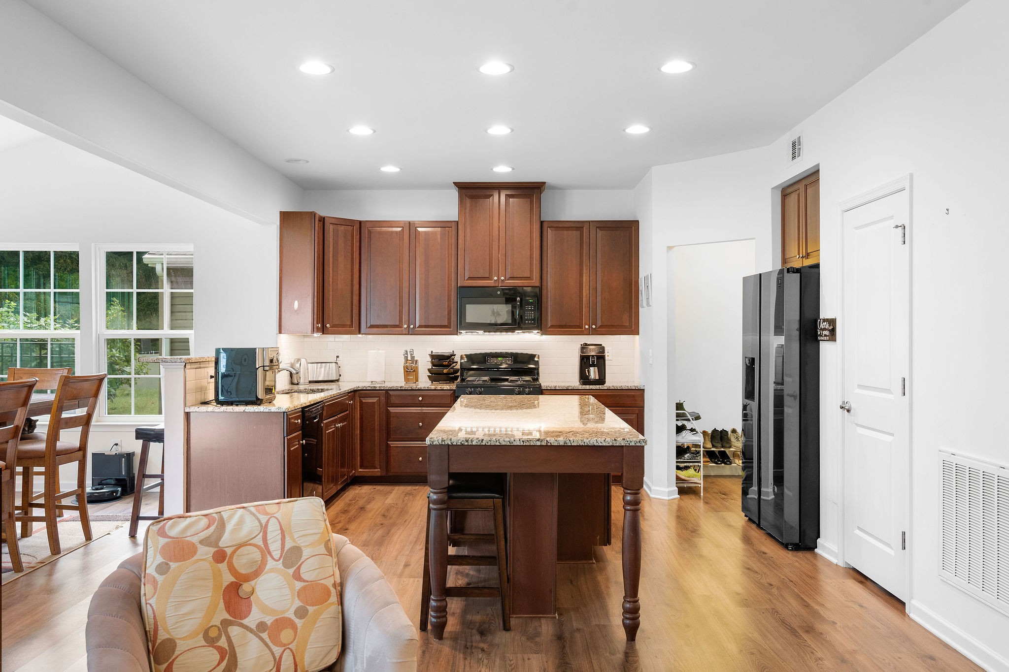 The main level is built for the way people actually live. Wide-open living anchored by a statement fireplace flows seamlessly into a designer kitchen with a massive center island, granite counters, and top of the line appliances. Natural light pours into the dining room with a stunning view of the backyard. There is even an extra space on the first level that's perfect for a home office or play room!