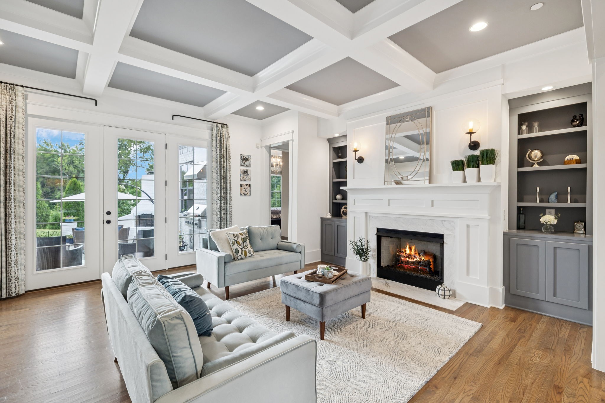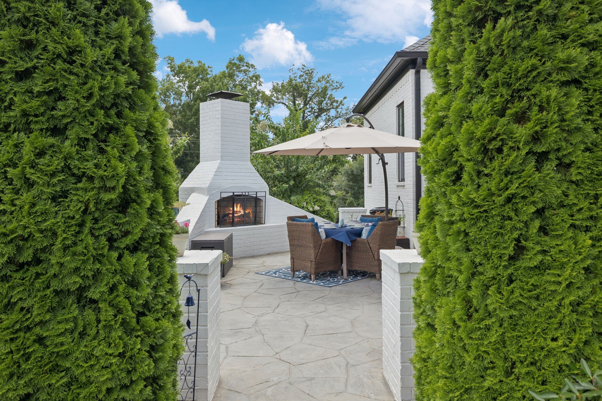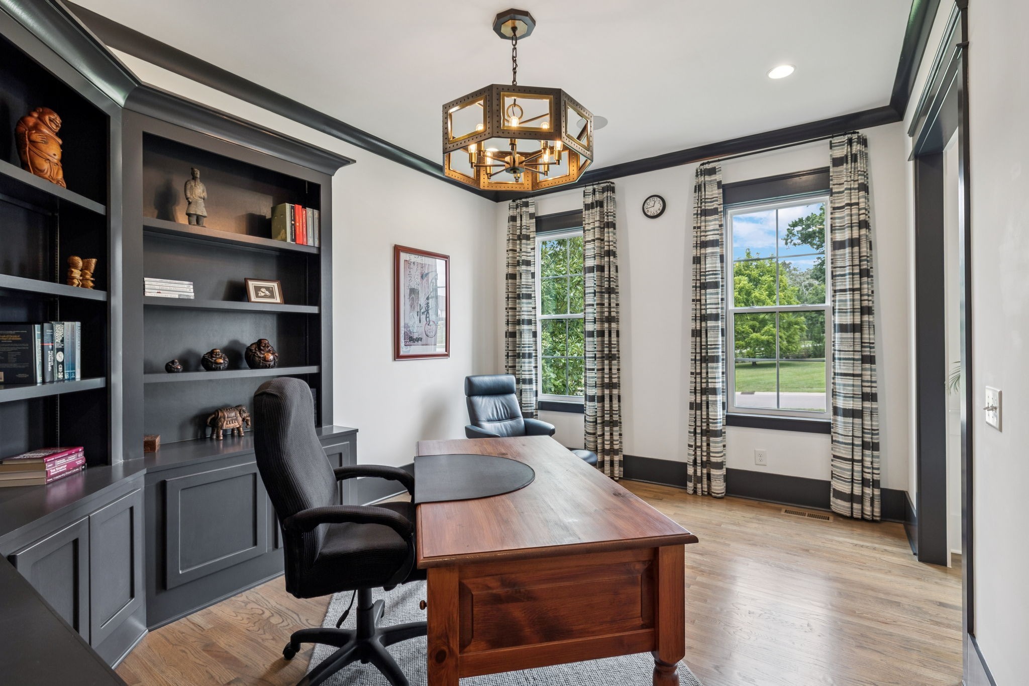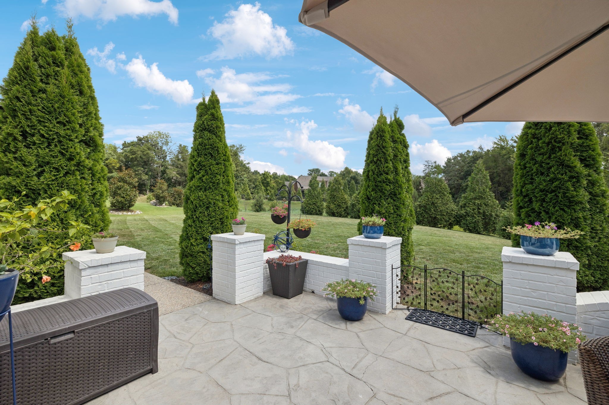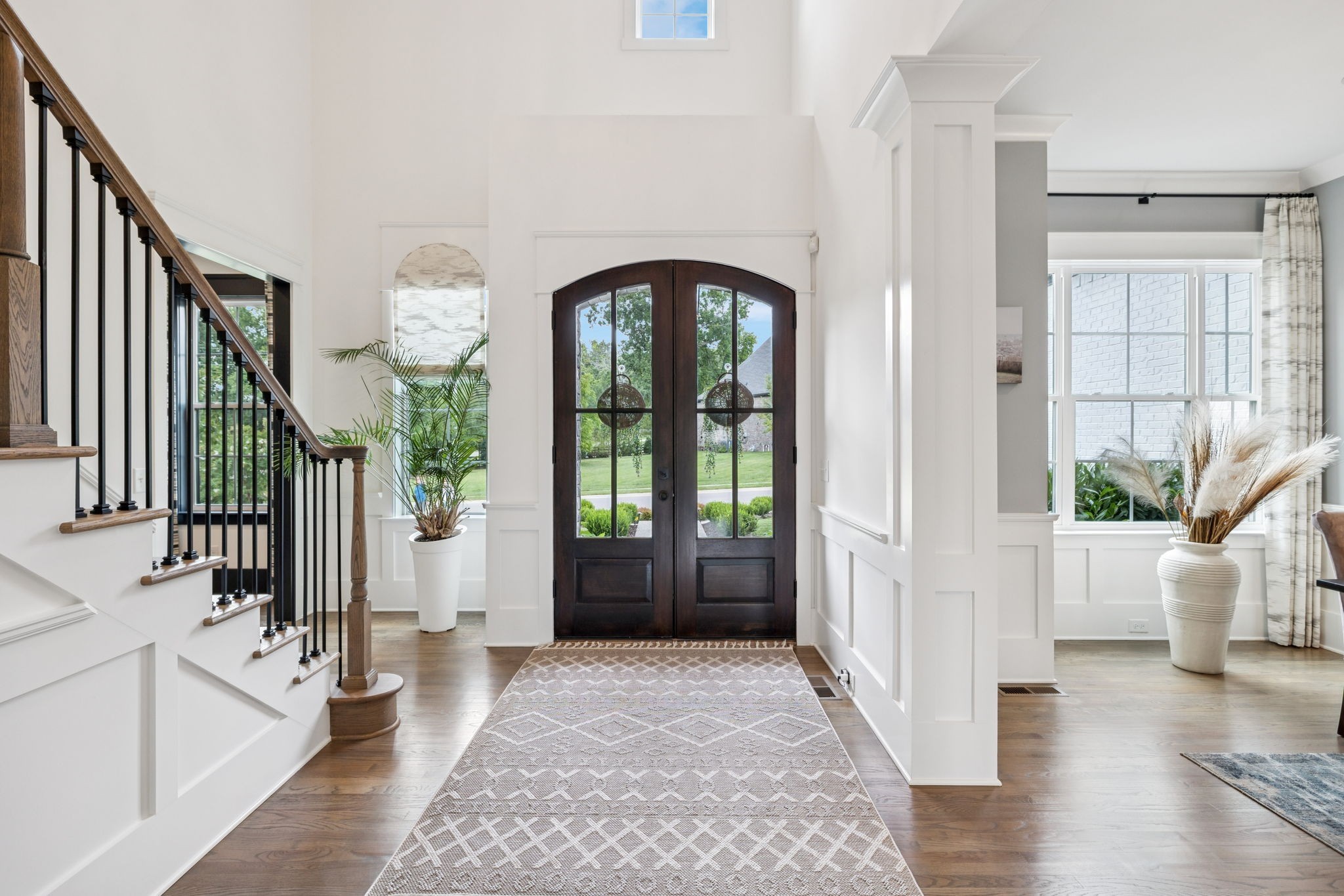 Former Award-Winning "Westchester" Model Home by Turnberry Homes, occupied less than 2 years, is nestled on a private, flat 0.56-acre, pool-sized lot, features over-the-top amenities throughout. From the outdoor living space to the interior details, this residence is perfect for both everyday living & entertaining. Inside, enjoy tall ceilings, 8-foot doors, tall baseboards, crown molding, & wainscoting. Step outside to your private oasis, featuring a covered porch & beautiful courtyard w/ wood-burning fireplace. Front and backyard are fully landscaped & irrigated. The covered porch is complemented by stamped concrete terrace, & outdoor kitchen equipped w/grill, refrigerator, & speakers. Front yard uplighting adds a warm glow. Gourmet kitchen is equipped w/upgraded cabinetry, quartz counters, double wall oven, built-in microwave, & walk-in pantry. Formal dining room showcases wainscoting & flows into the butler's serving bar, complete w/wine storage & wine chiller. The elegant living room boasts a coffered ceiling w/ wood beams, marble surround gas fireplace, & custom built-ins. The great room is equally impressive w/vaulted ceilings, wooden beams, a stone fireplace, & more built-ins. The main-level study w/built-ins, a closet, & full bath, can serve as a 5th bedroom. The primary bedroom is also on the main-level & compliments the primary bath w/ 2 walk-in closets, car wash shower & soaking tub. 3 generously-sized bedrooms upstairs have walk-in closets & ensuites. The massive bonus/media room with large bar features leathered granite, wine chiller, ice maker, & surround sound. Functional & Practical Details include a private friend’s entrance w/ key pad lock, large drop zone w/storage bins, epoxy garage floors, custom window coverings, laundry room w/built-in sink, upper & lower cabinets, & shelves, fire sprinkler system, security system, double staircase, & attic storage. Located in highly sought after Williamson County School District, in premier Neighborhood.