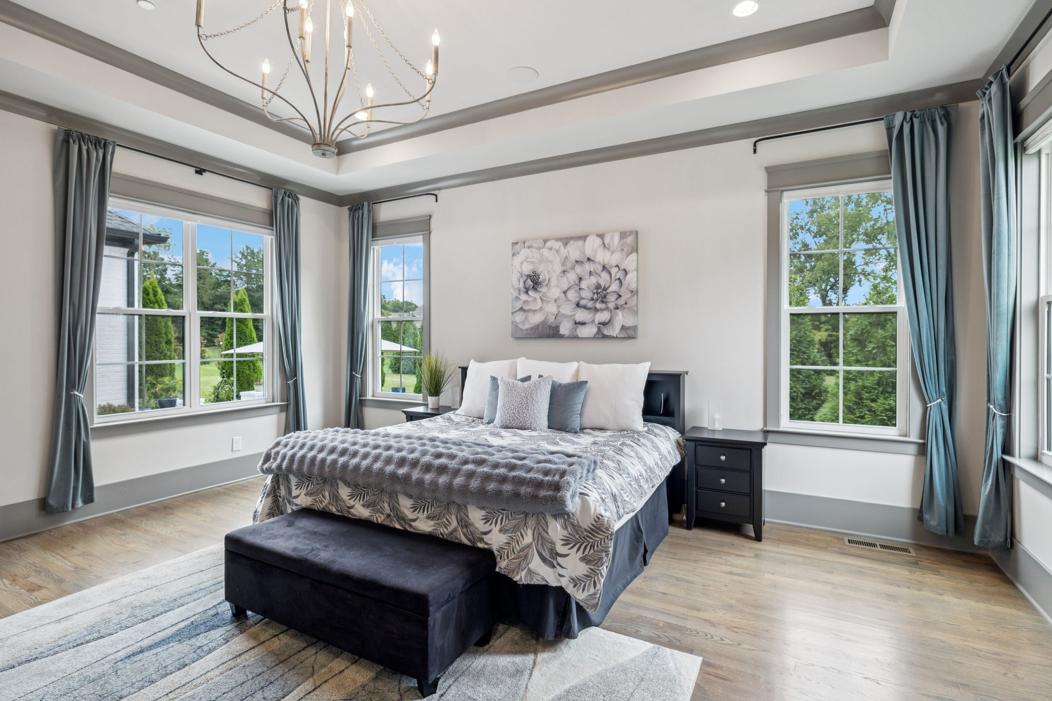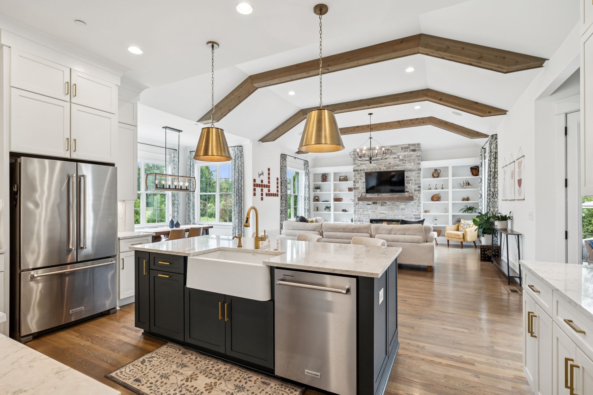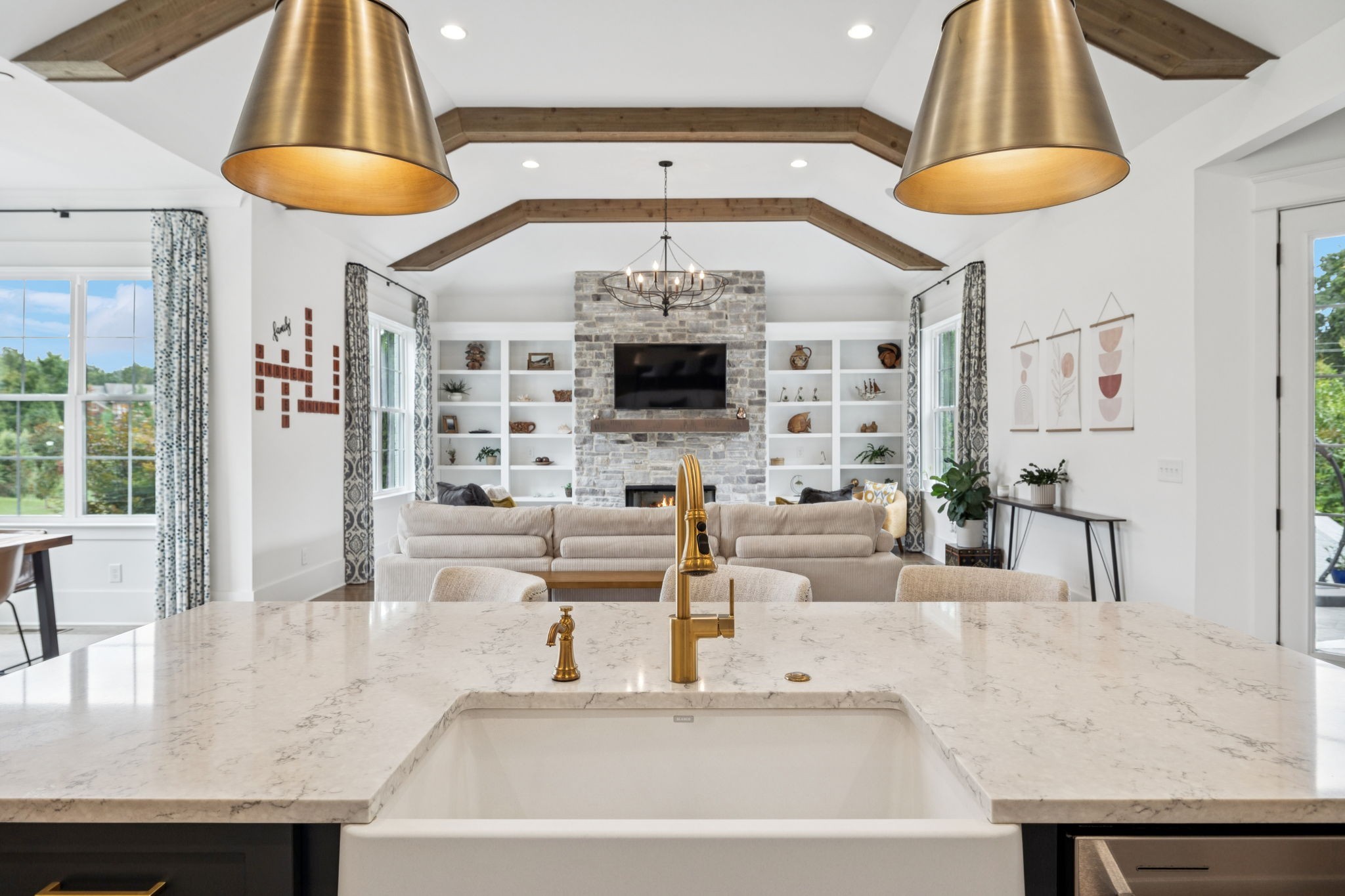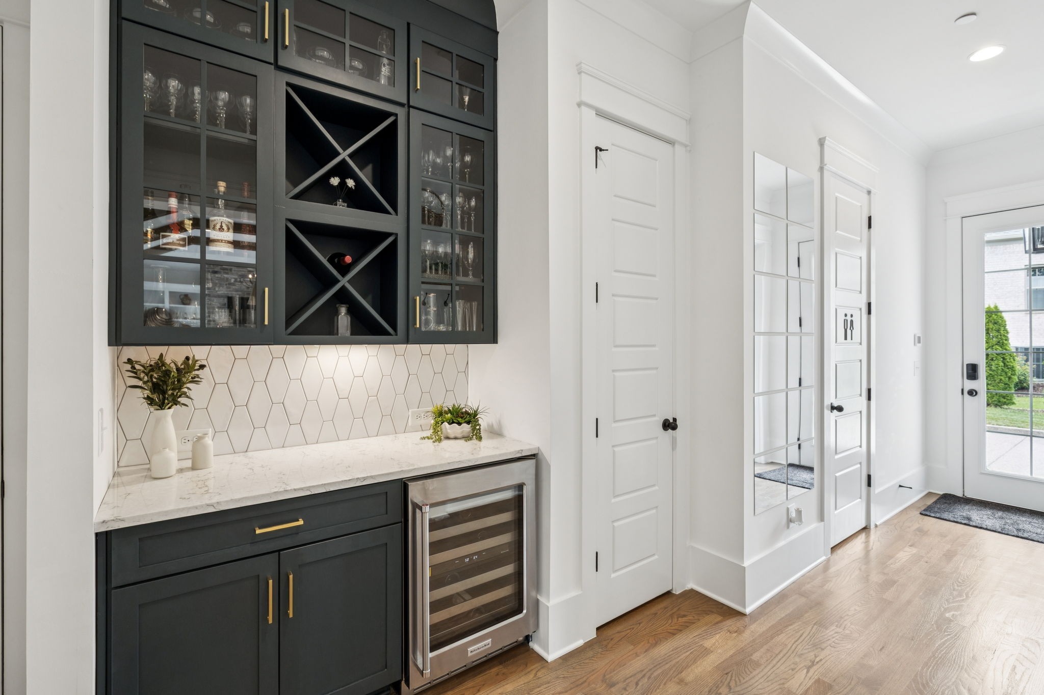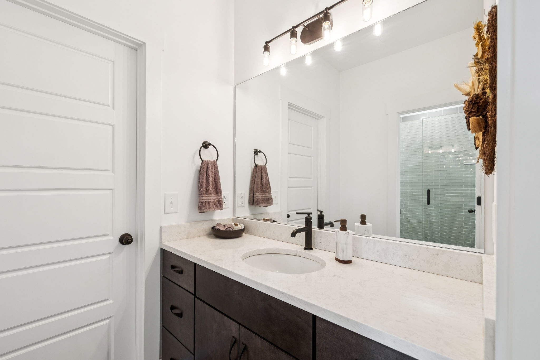 Former Award-Winning "Westchester" Model Home by Turnberry Homes, occupied less than 2 years, is nestled on a private, flat 0.56-acre, pool-sized lot, features over-the-top amenities throughout. From the outdoor living space to the interior details, this residence is perfect for both everyday living & entertaining. Inside, enjoy tall ceilings, 8-foot doors, tall baseboards, crown molding, & wainscoting. Step outside to your private oasis, featuring a covered porch & beautiful courtyard w/ wood-burning fireplace. Front and backyard are fully landscaped & irrigated. The covered porch is complemented by stamped concrete terrace, & outdoor kitchen equipped w/grill, refrigerator, & speakers. Front yard uplighting adds a warm glow. Gourmet kitchen is equipped w/upgraded cabinetry, quartz counters, double wall oven, built-in microwave, & walk-in pantry. Formal dining room showcases wainscoting & flows into the butler's serving bar, complete w/wine storage & wine chiller. The elegant living room boasts a coffered ceiling w/ wood beams, marble surround gas fireplace, & custom built-ins. The great room is equally impressive w/vaulted ceilings, wooden beams, a stone fireplace, & more built-ins. The main-level study w/built-ins, a closet, & full bath, can serve as a 5th bedroom. The primary bedroom is also on the main-level & compliments the primary bath w/ 2 walk-in closets, car wash shower & soaking tub. 3 generously-sized bedrooms upstairs have walk-in closets & ensuites. The massive bonus/media room with large bar features leathered granite, wine chiller, ice maker, & surround sound. Functional & Practical Details include a private friend’s entrance w/ key pad lock, large drop zone w/storage bins, epoxy garage floors, custom window coverings, laundry room w/built-in sink, upper & lower cabinets, & shelves, fire sprinkler system, security system, double staircase, & attic storage. Located in highly sought after Williamson County School District, in premier Neighborhood.