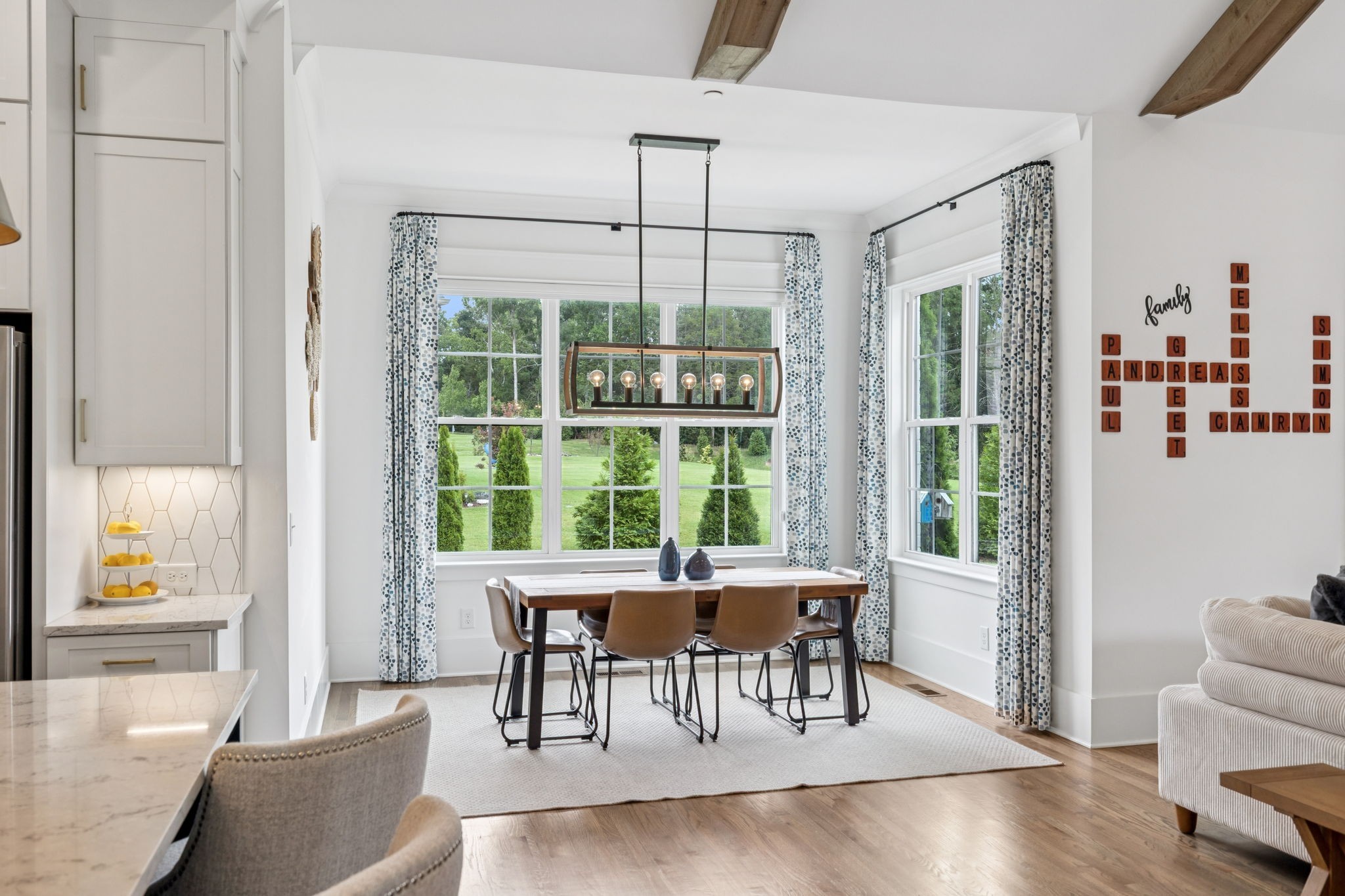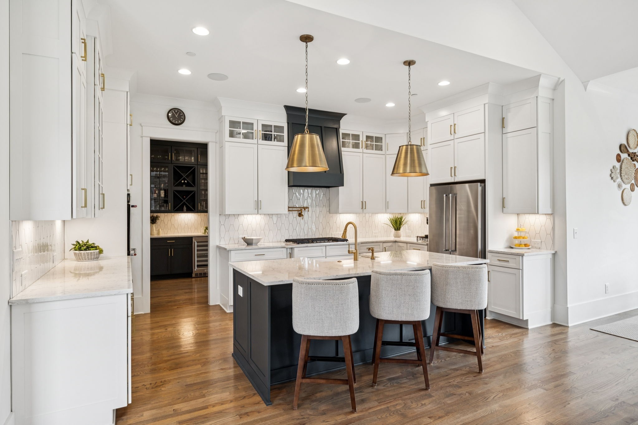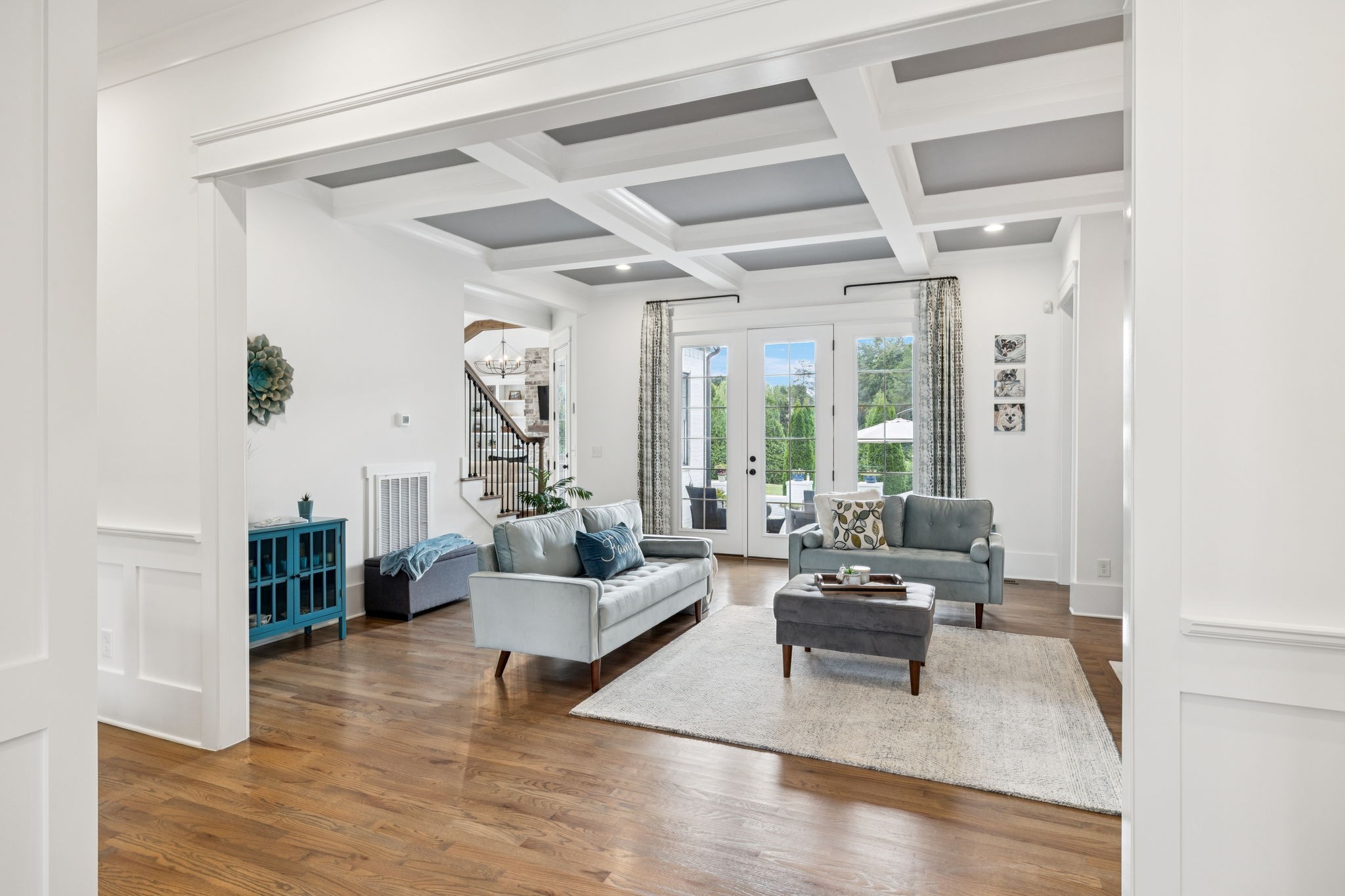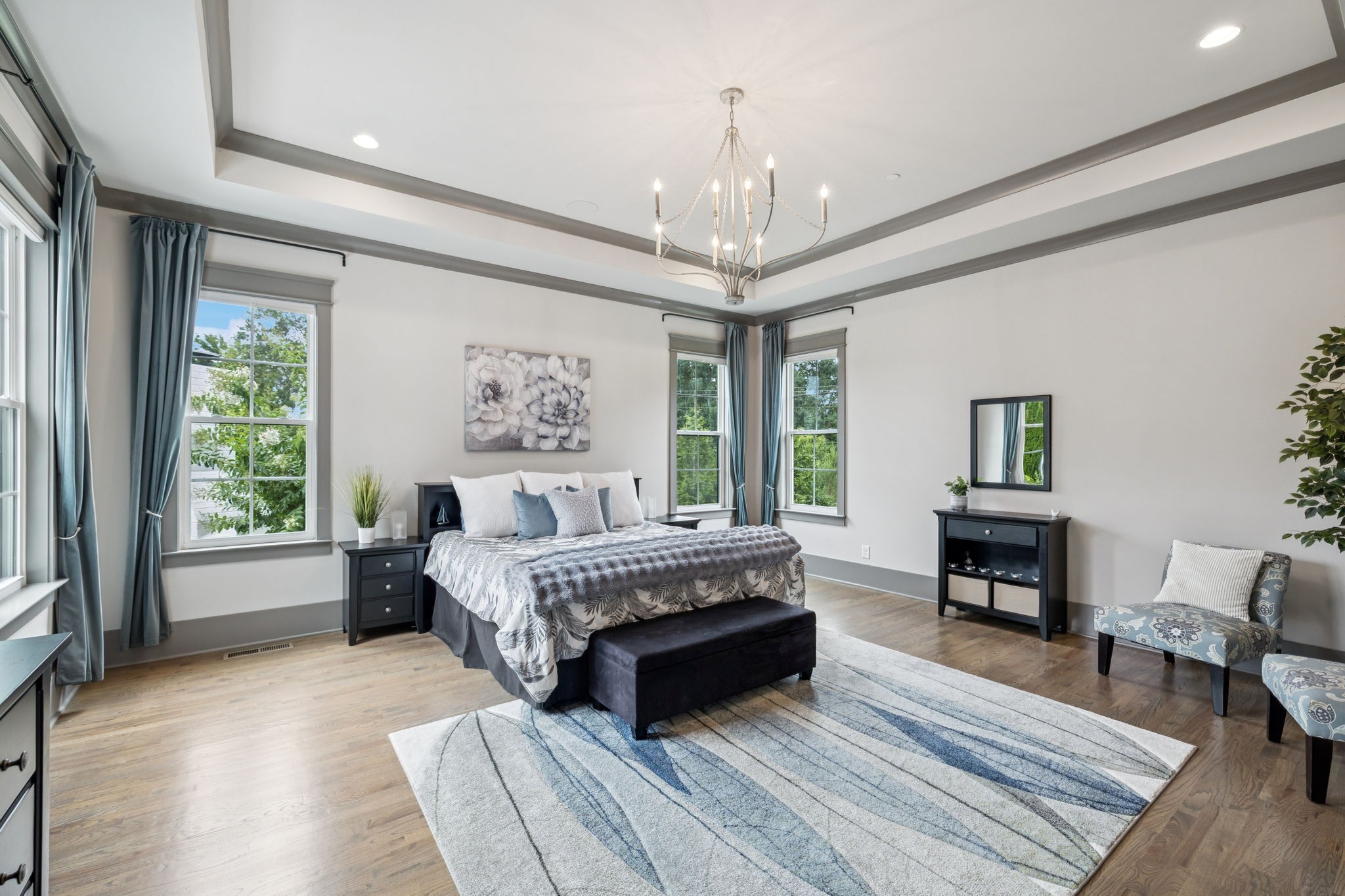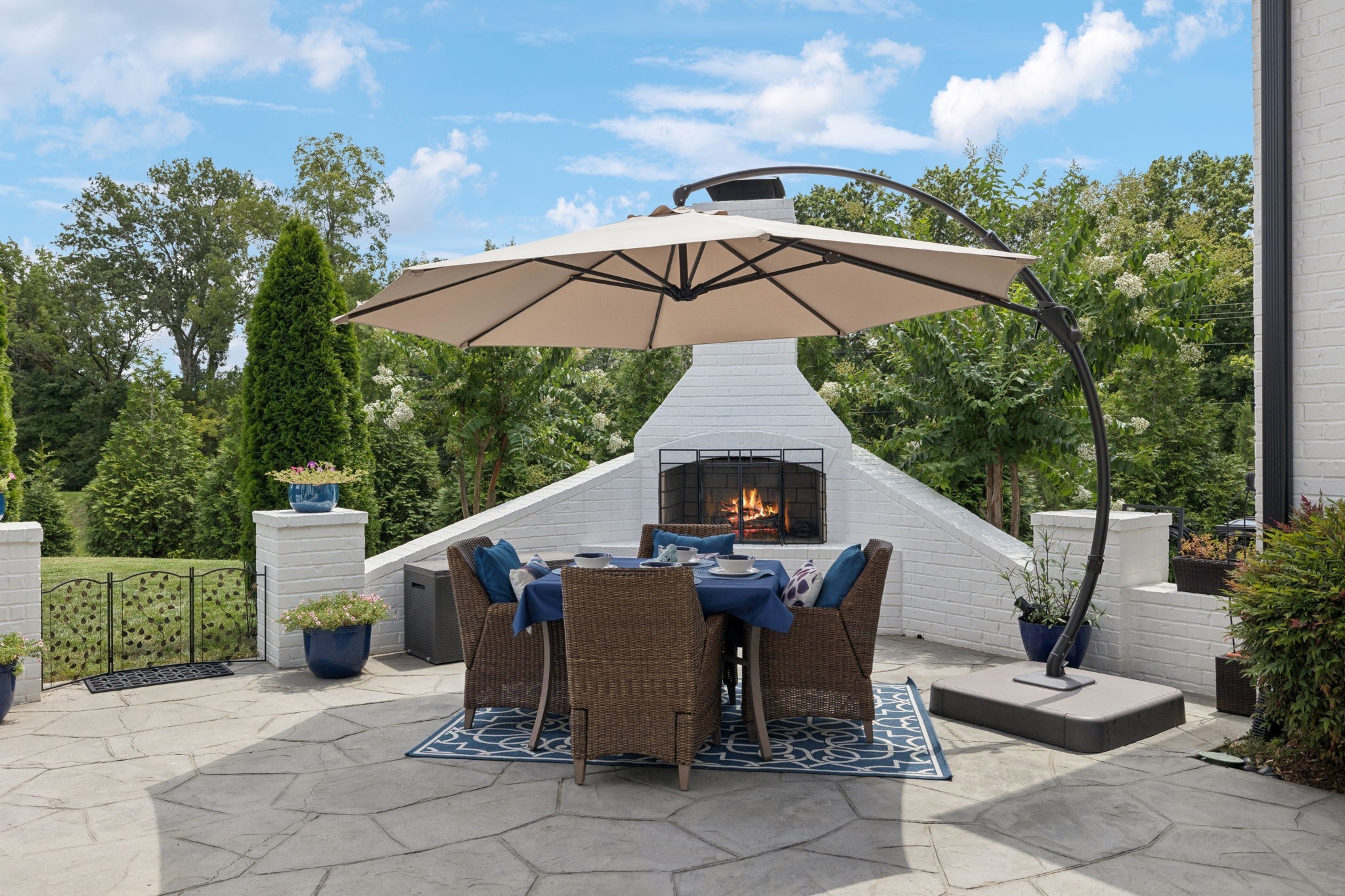 Former Award-Winning "Westchester" Model Home by Turnberry Homes, occupied less than 2 years, is nestled on a private, flat 0.56-acre, pool-sized lot, features over-the-top amenities throughout. From the outdoor living space to the interior details, this residence is perfect for both everyday living & entertaining. Inside, enjoy tall ceilings, 8-foot doors, tall baseboards, crown molding, & wainscoting. Step outside to your private oasis, featuring a covered porch & beautiful courtyard w/ wood-burning fireplace. Front and backyard are fully landscaped & irrigated. The covered porch is complemented by stamped concrete terrace, & outdoor kitchen equipped w/grill, refrigerator, & speakers. Front yard uplighting adds a warm glow. Gourmet kitchen is equipped w/upgraded cabinetry, quartz counters, double wall oven, built-in microwave, & walk-in pantry. Formal dining room showcases wainscoting & flows into the butler's serving bar, complete w/wine storage & wine chiller. The elegant living room boasts a coffered ceiling w/ wood beams, marble surround gas fireplace, & custom built-ins. The great room is equally impressive w/vaulted ceilings, wooden beams, a stone fireplace, & more built-ins. The main-level study w/built-ins, a closet, & full bath, can serve as a 5th bedroom. The primary bedroom is also on the main-level & compliments the primary bath w/ 2 walk-in closets, car wash shower & soaking tub. 3 generously-sized bedrooms upstairs have walk-in closets & ensuites. The massive bonus/media room with large bar features leathered granite, wine chiller, ice maker, & surround sound. Functional & Practical Details include a private friend’s entrance w/ key pad lock, large drop zone w/storage bins, epoxy garage floors, custom window coverings, laundry room w/built-in sink, upper & lower cabinets, & shelves, fire sprinkler system, security system, double staircase, & attic storage. Located in highly sought after Williamson County School District, in premier Neighborhood.