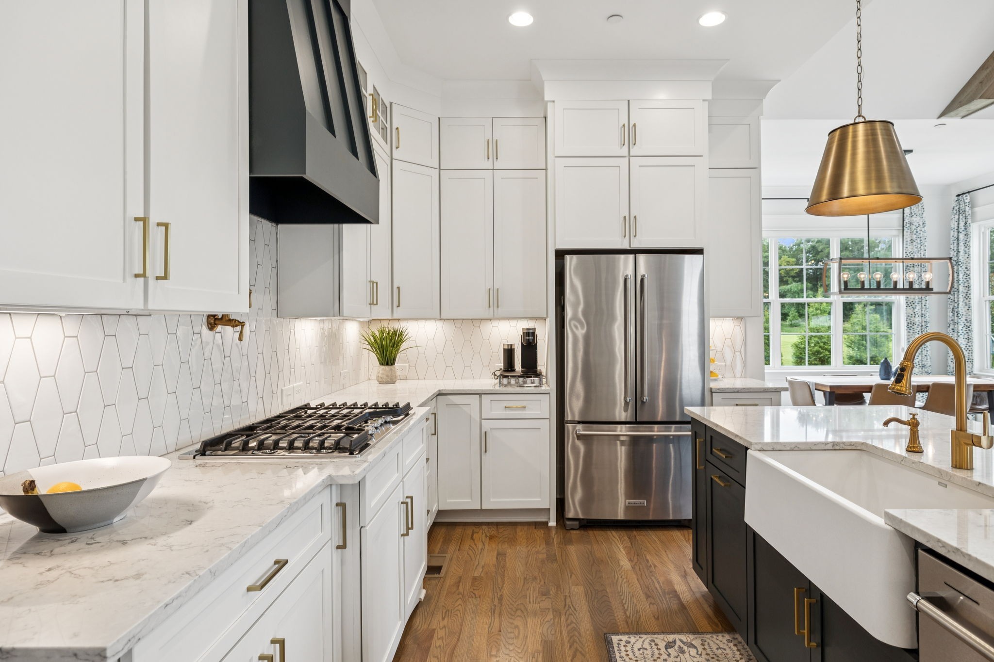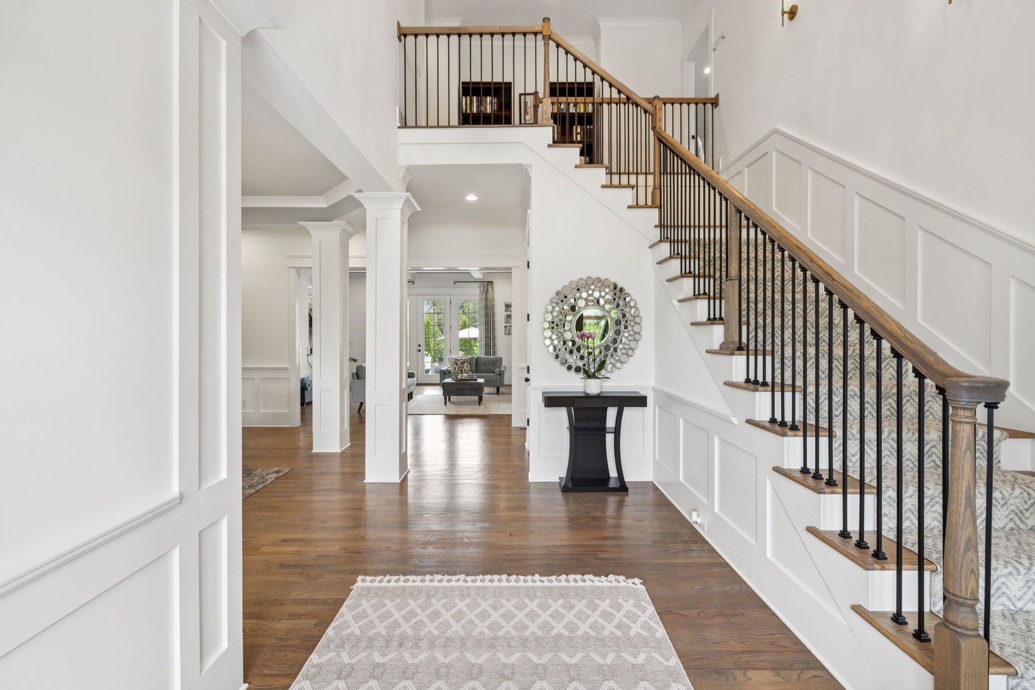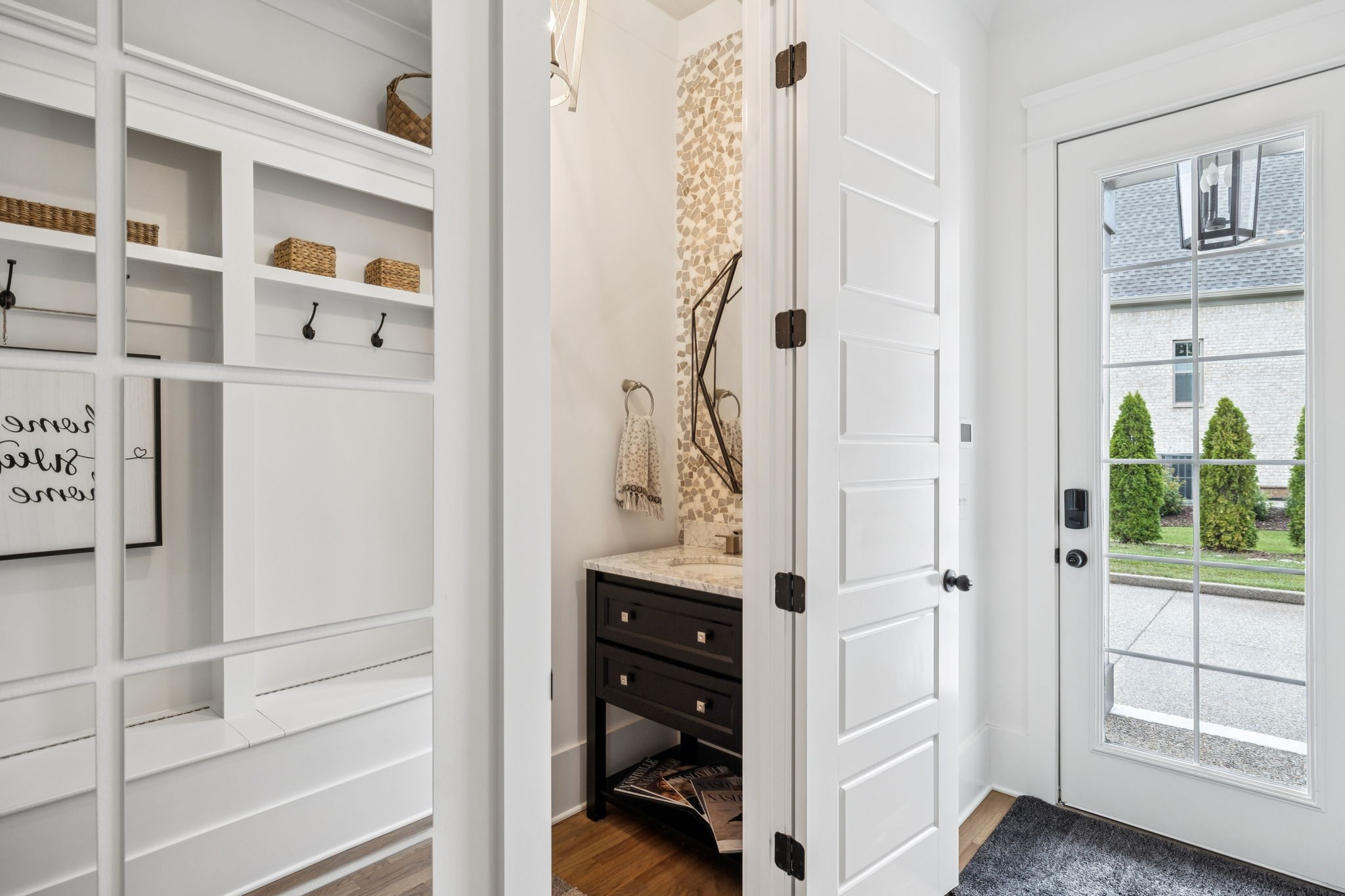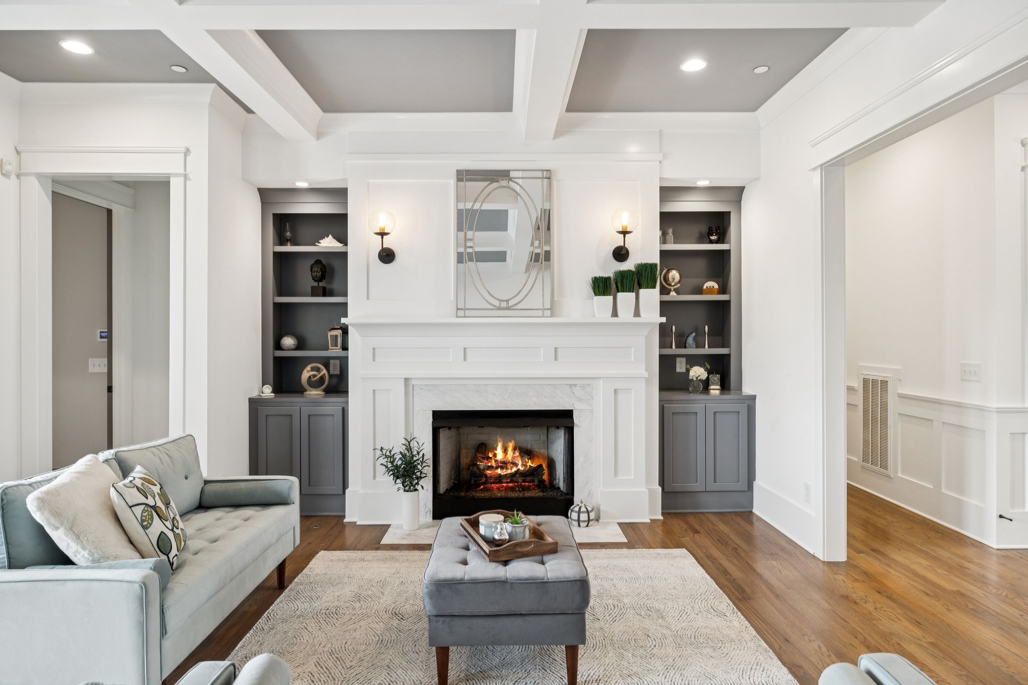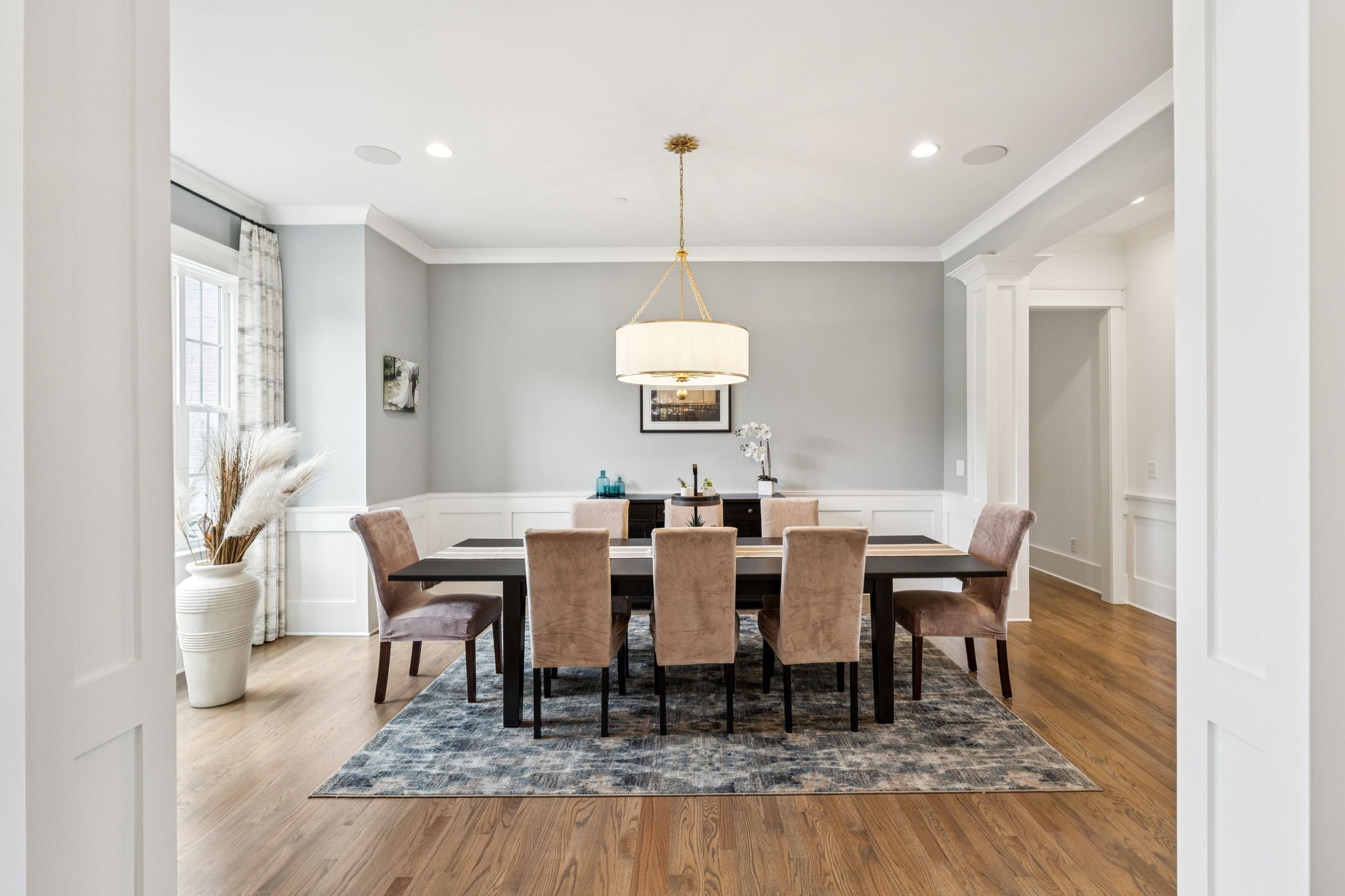 Former Award-Winning "Westchester" Model Home by Turnberry Homes, occupied less than 2 years, is nestled on a private, flat 0.56-acre, pool-sized lot, features over-the-top amenities throughout. From the outdoor living space to the interior details, this residence is perfect for both everyday living & entertaining. Inside, enjoy tall ceilings, 8-foot doors, tall baseboards, crown molding, & wainscoting. Step outside to your private oasis, featuring a covered porch & beautiful courtyard w/ wood-burning fireplace. Front and backyard are fully landscaped & irrigated. The covered porch is complemented by stamped concrete terrace, & outdoor kitchen equipped w/grill, refrigerator, & speakers. Front yard uplighting adds a warm glow. Gourmet kitchen is equipped w/upgraded cabinetry, quartz counters, double wall oven, built-in microwave, & walk-in pantry. Formal dining room showcases wainscoting & flows into the butler's serving bar, complete w/wine storage & wine chiller. The elegant living room boasts a coffered ceiling w/ wood beams, marble surround gas fireplace, & custom built-ins. The great room is equally impressive w/vaulted ceilings, wooden beams, a stone fireplace, & more built-ins. The main-level study w/built-ins, a closet, & full bath, can serve as a 5th bedroom. The primary bedroom is also on the main-level & compliments the primary bath w/ 2 walk-in closets, car wash shower & soaking tub. 3 generously-sized bedrooms upstairs have walk-in closets & ensuites. The massive bonus/media room with large bar features leathered granite, wine chiller, ice maker, & surround sound. Functional & Practical Details include a private friend’s entrance w/ key pad lock, large drop zone w/storage bins, epoxy garage floors, custom window coverings, laundry room w/built-in sink, upper & lower cabinets, & shelves, fire sprinkler system, security system, double staircase, & attic storage. Located in highly sought after Williamson County School District, in premier Neighborhood.