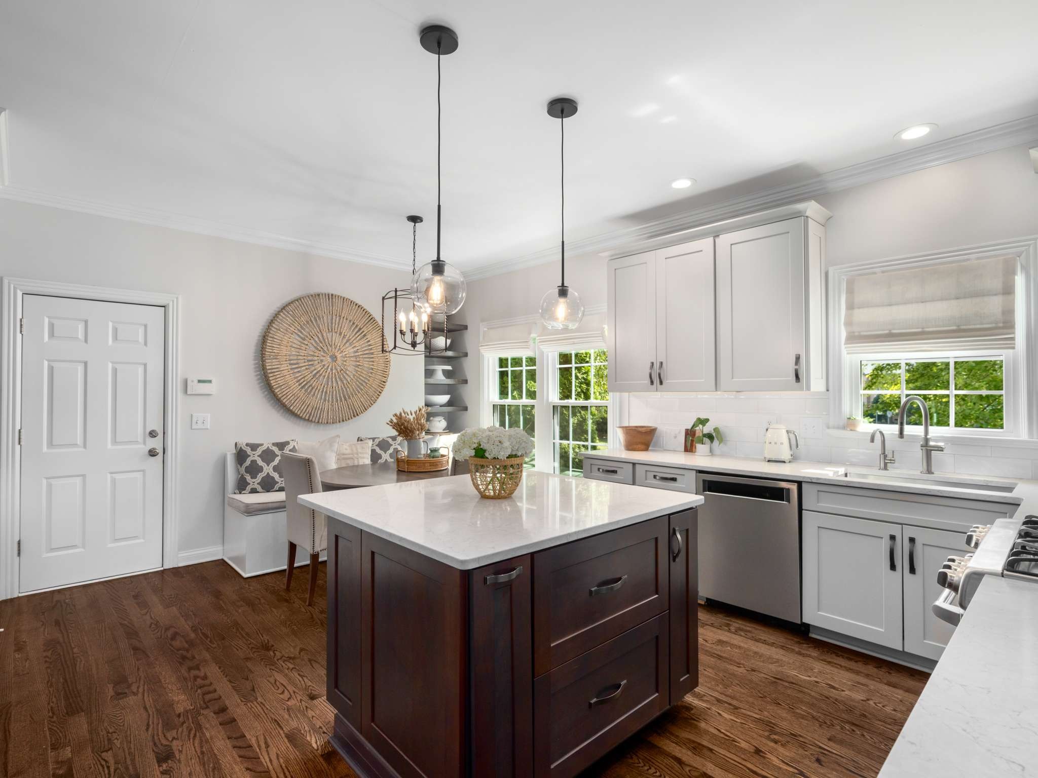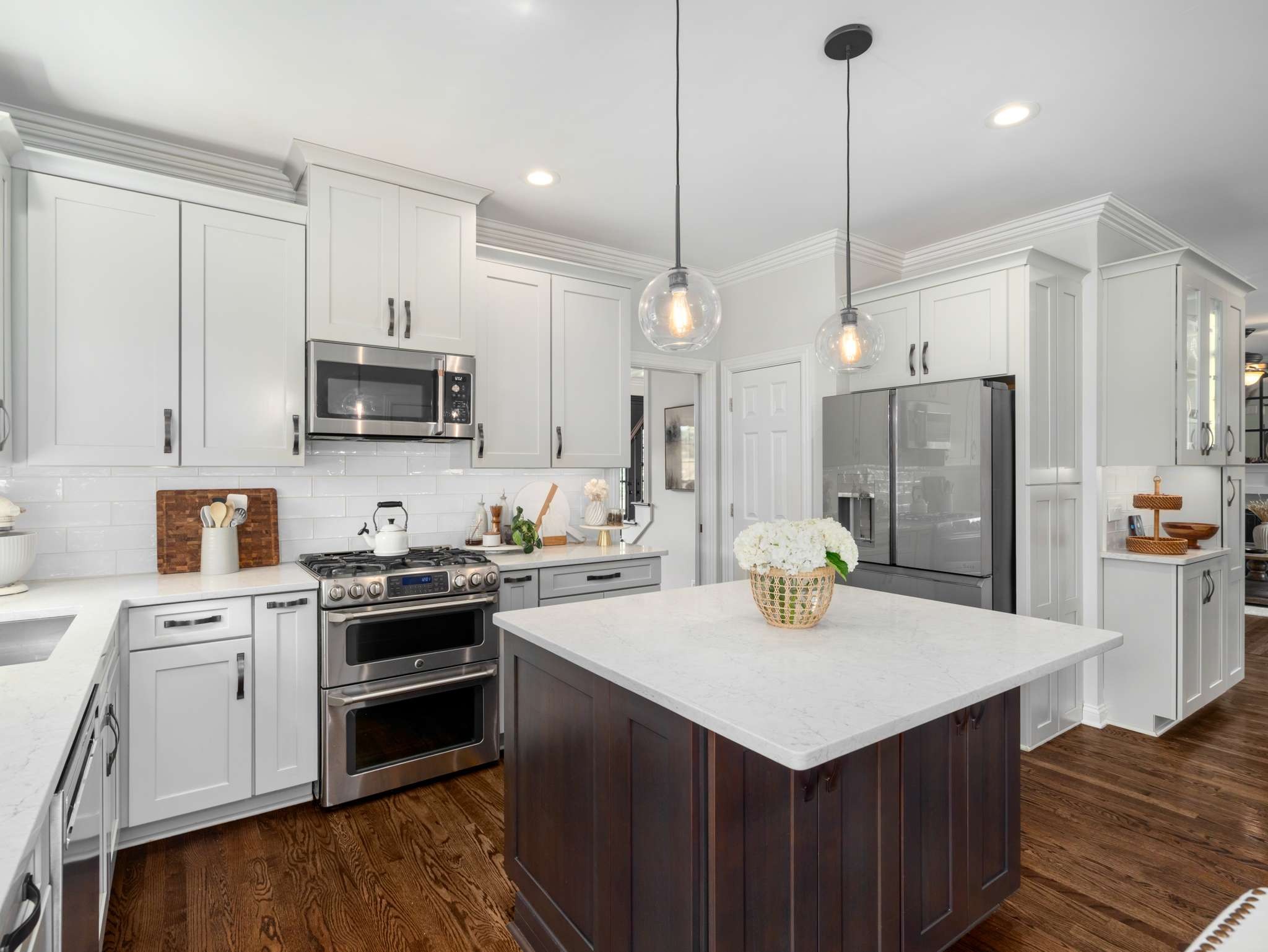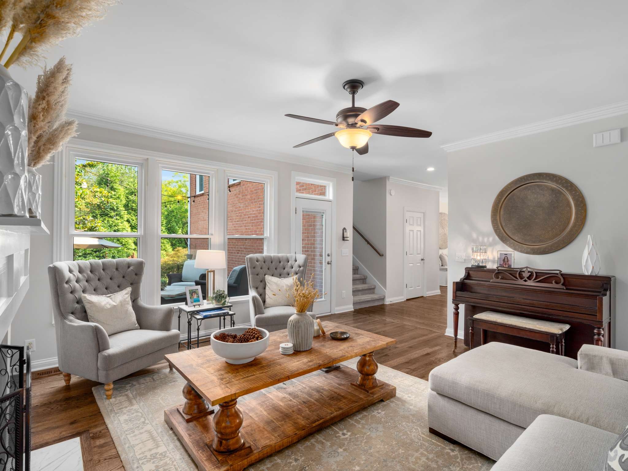 Rare opportunity in the highly desirable Ivy Glen community, just minutes from historic Downtown Franklin with its charming shops and restaurants, a short drive to Cool Springs and Brentwood, and easy access to I-65 for commuting to Nashville. Situated on a prime corner lot, this home combines privacy, convenience, and beautiful outdoor space. The private fenced backyard features a large patio, deck, and a custom firepit, surrounded by beautiful mature trees and lush landscaping. Ivy Glen residents enjoy access to community amenities including a sparkling pool, playground, walking trails, and a tranquil pond. Inside, the main level offers hardwood floors throughout and includes a formal dining room, private office, and a living room with a gas fireplace. The updated kitchen features a Cafe five-burner gas range w/double oven, a sleek Cafe refrigerator, quartz countertops, tall cabinets and large island w/storage. Upstairs, the primary suite is comfortable and spacious, with a tray ceiling, walk-in closet, and a breathtaking bath featuring double vanity, gorgeous tile detail, and standalone soaking tub. Three bedrooms, a full bath, and a versatile bonus room complete the second level, while the third-floor loft offers an ideal space for an office, creative studio, or play area. With its mature landscaping, corner-lot privacy, community amenities, and unbeatable location near Franklin’s historic district, Ivy Glen offers a lifestyle of comfort, convenience, and charm. Williamson County Schools. **All information deemed accurate, but not guaranteed. Buyer/agent to verify important information.