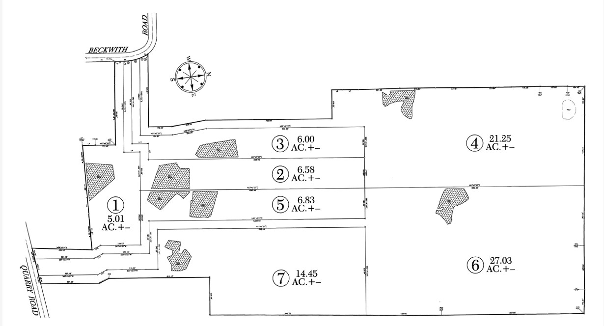 *** SELLING AT ABSOLUTE AUCTION Saturday October 4, 2025 @ 10am*** Tract 1 - 5.01 Acres of 87.15 +/- Acres selling in 7 estate tracts ranging in size from 5.01 - 27.03 acres. Tracts 1-4 Front Beckwith Rd, Tracts 5-7 Front Quarry Rd. Close proximity to both Mt. Juliet & Lebanon. 15 miles to Nashville International Airport. Very seldom does property of this caliber come available at absolute auction! Utility water available. Soils tested & septic approved. Land open for inspection.