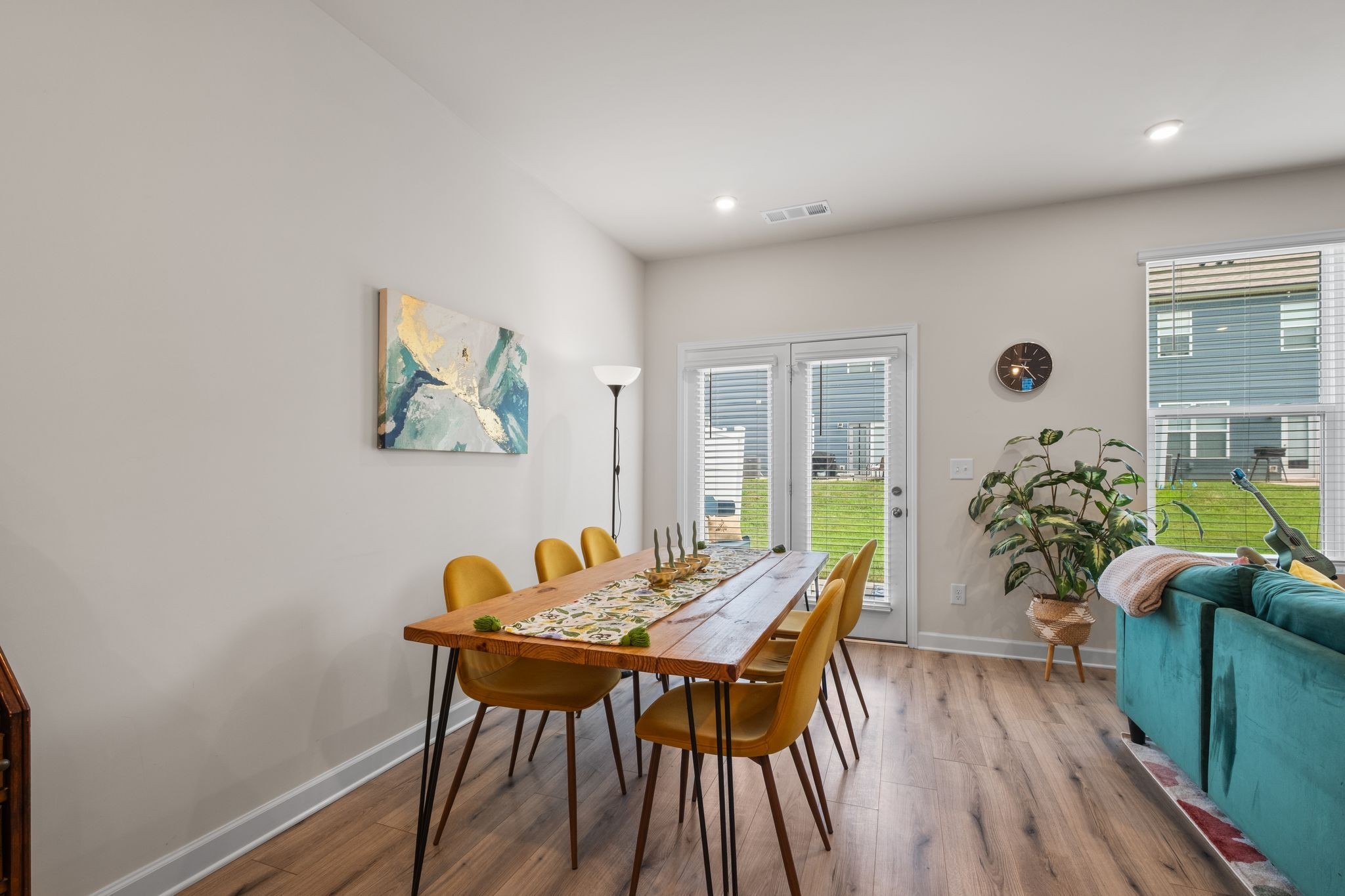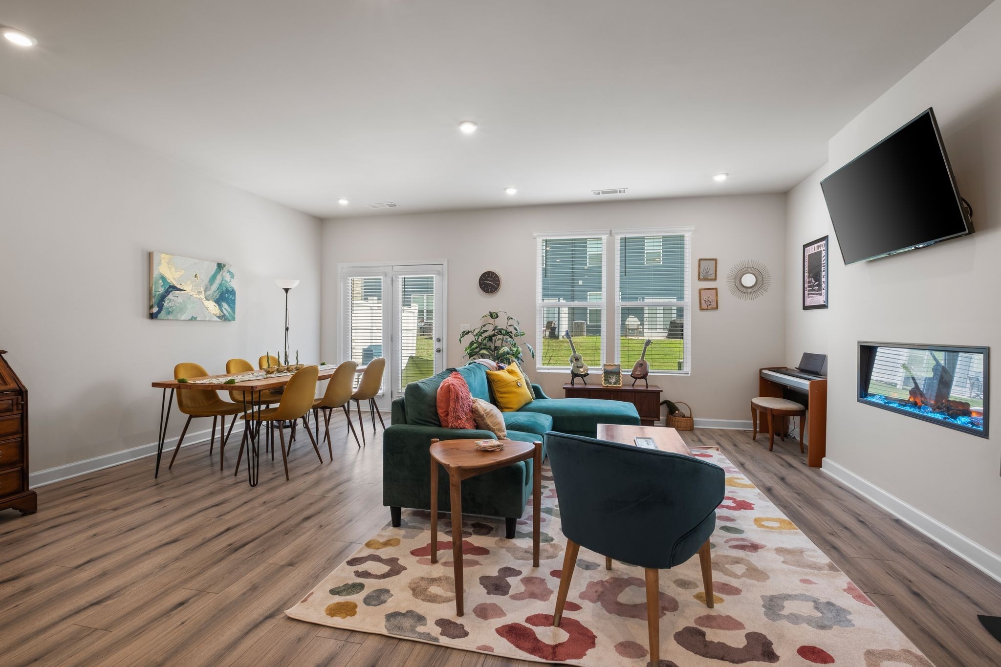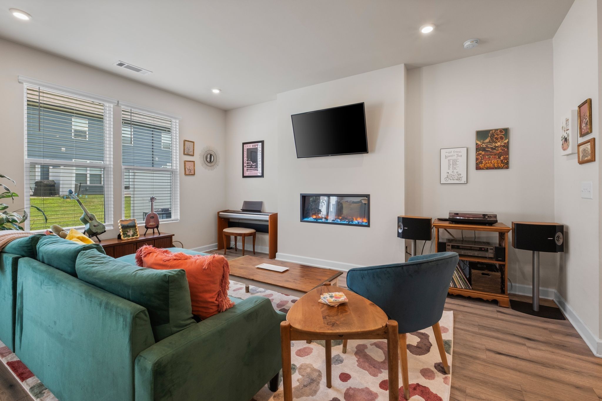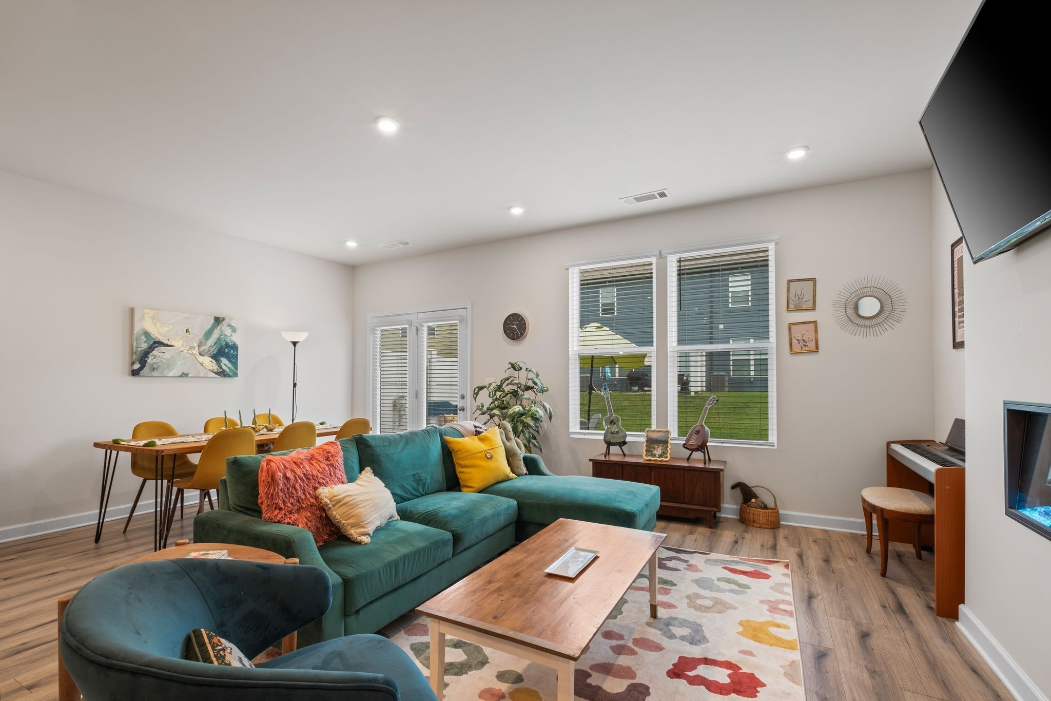 This well-maintained home features wood-look laminate flooring in the main living areas, upgraded lighting, and modern brushed nickel fixtures. The stylish kitchen boasts white shaker-style cabinets, granite countertops, a tiled backsplash, stainless steel appliances, and a spacious walk-in pantry. Enjoy cozy evenings by the electric fireplace or relax on the large back patio, which includes a partial privacy fence.