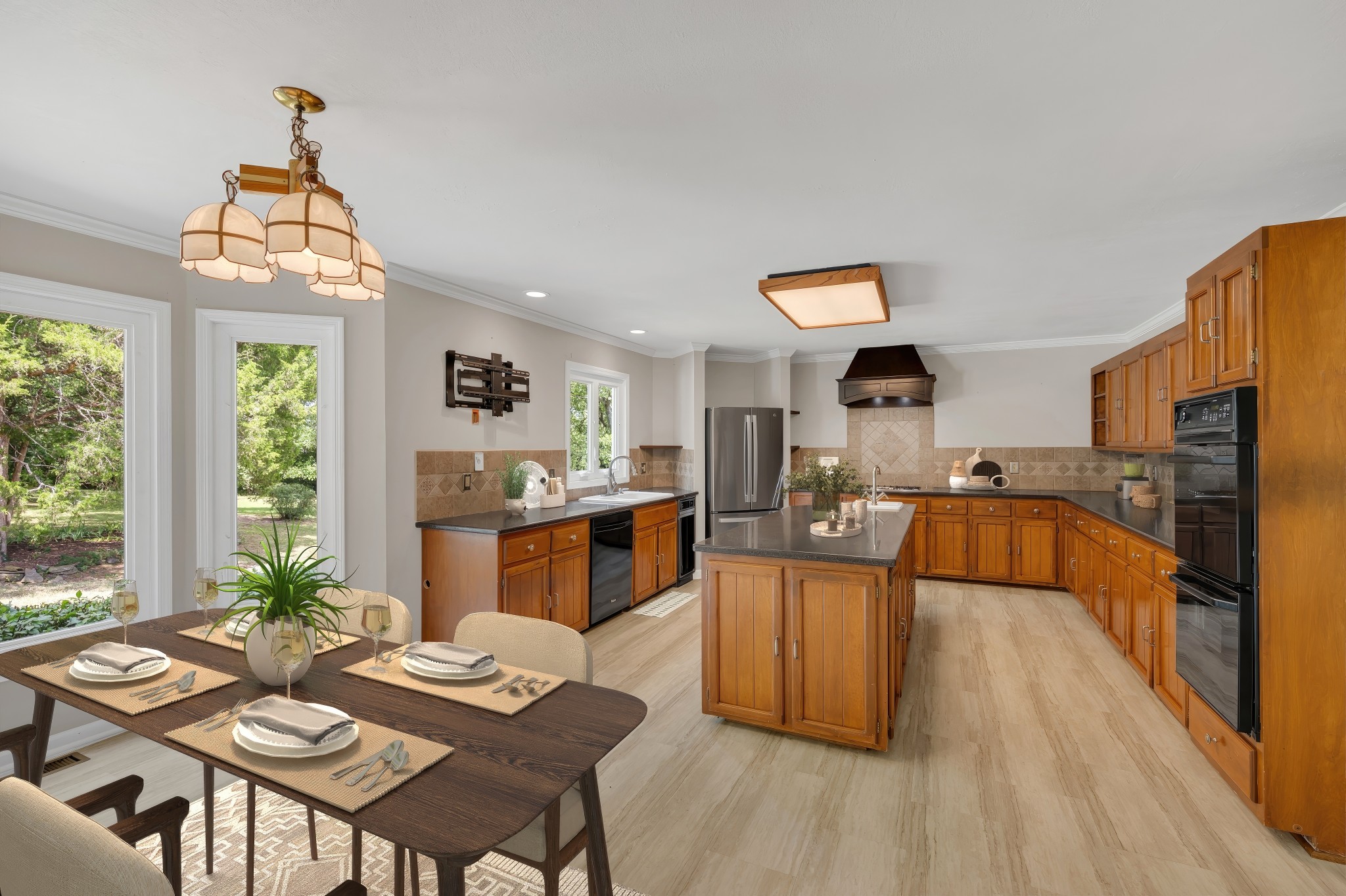 - AppliancesDouble Oven, Cooktop, Dishwasher, Disposal, Refrigerator