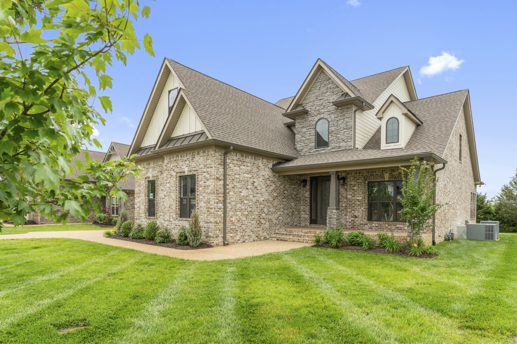 $10,000 toward closing cost and/or rate buy down with Preferred Lender. Exceptional Quality Construction by Eastland Construction Inc., . The Englemoore Cottage Plan, , Great 4BR plan, Living rm w/ Brick Gas Fireplace & Wood Beams. Hardwood Floors In Living Rm, Kitchen, Eat-In, & Primary BR, Kitchen with Upgraded Custom Maple Cabinets, Tile Backsplash, Hardwood Floors, Quartz tops, Double Ovens, Walk-In Pantry, Microwave, and Dishwasher, Primary BR on Main Level with Large Bath w/ Separate Shower and Large Tub, Double Vanities, & Custom Wood Walk-In Closet. Tile in Baths and Full Utility Rm, Formal Dining Rm, Office, 17x16 Recreation Rm w/ pre-wired Surround Sound, Tankless Water Heater, Irrigation System with all SOD yard, Covered Back porch, and Open Patio Area, 3 Car Garage and Much More!