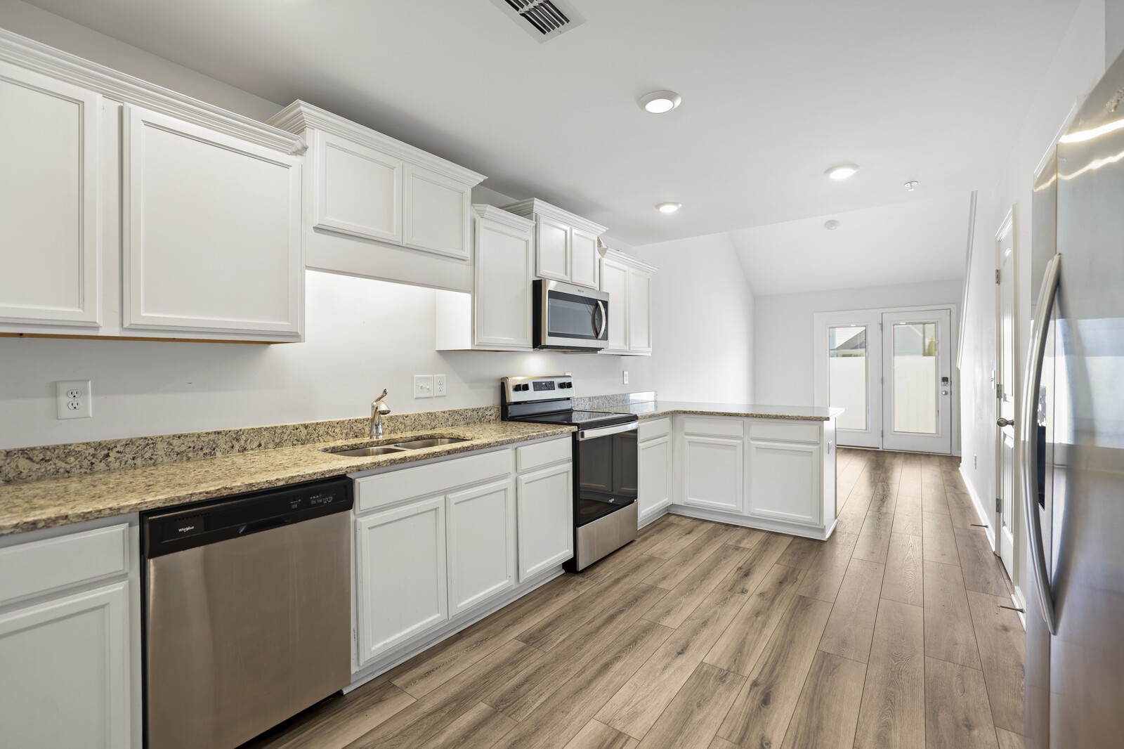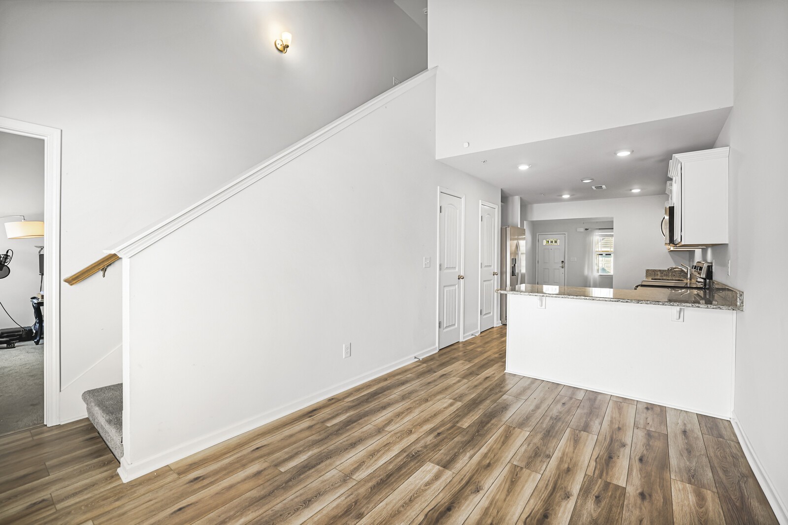 Up to 1% lender credit on the loan amount when buyer uses Seller's Preferred Lender. Welcome to Brandon Woods! This nearly new corner-unit townhome offers a thoughtful layout with the primary suite conveniently located on the main level and a second bedroom plus loft upstairs. The open kitchen features granite countertops, stainless steel appliances, and plenty of cabinet space, with all appliances to remain. High ceilings and large windows create a bright, airy feel throughout. Step outside to enjoy a covered front porch or relax on the private fenced patio—perfect for morning coffee or evening gatherings.