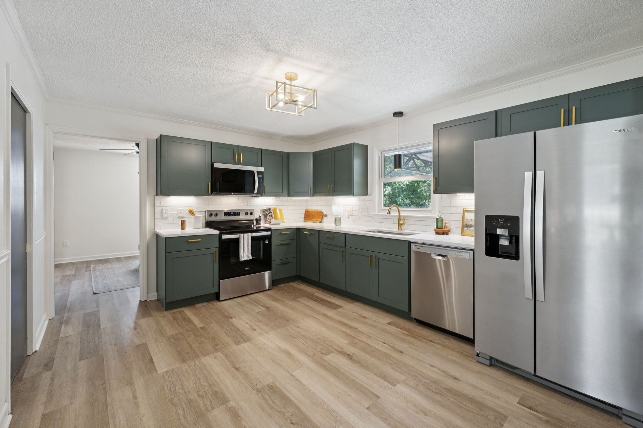 - AppliancesElectric Oven, Electric Range, Dishwasher, Microwave, Refrigerator, Stainless Steel Appliance(s)
