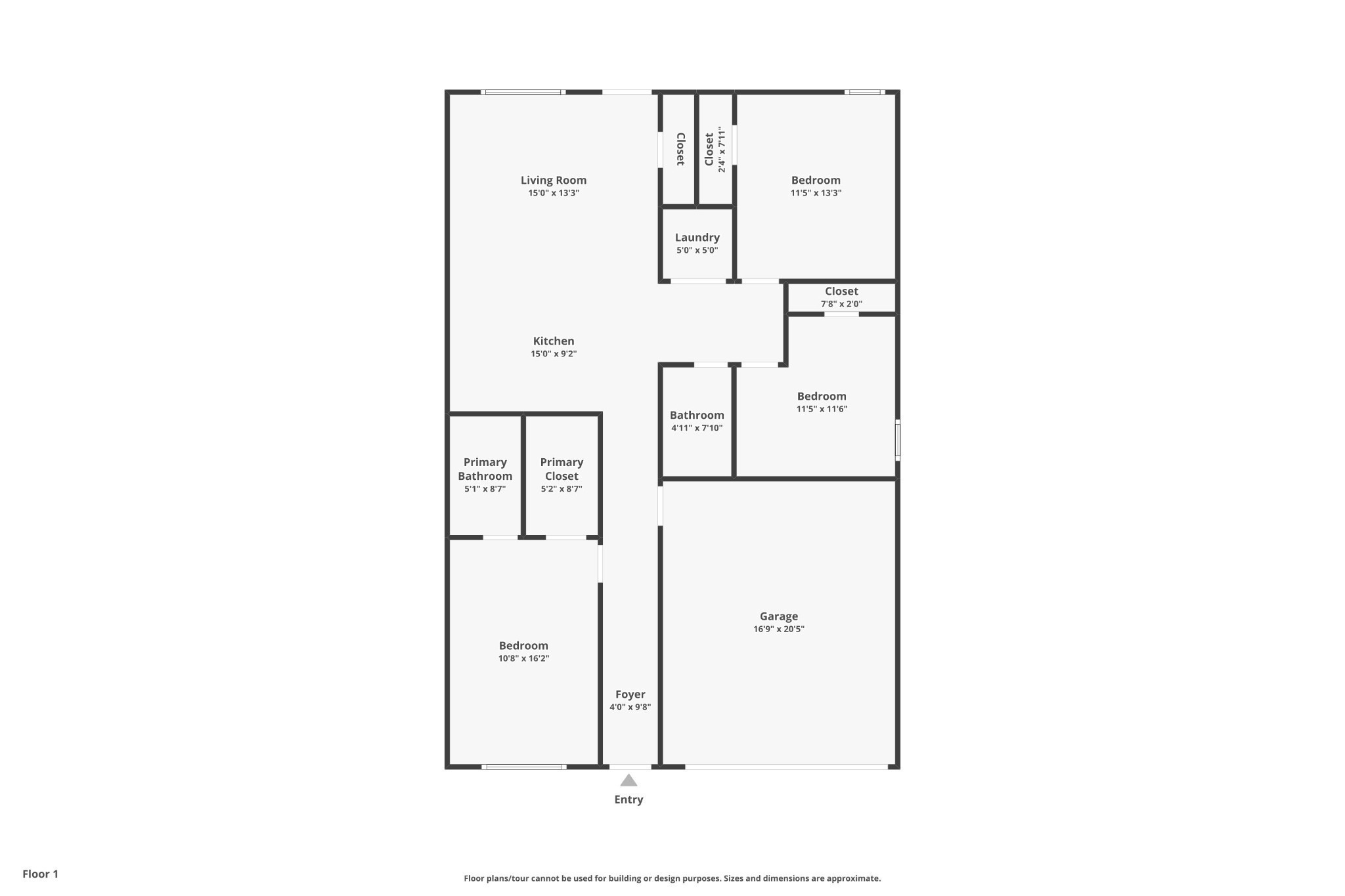 2 full baths 1,300sq. ft.