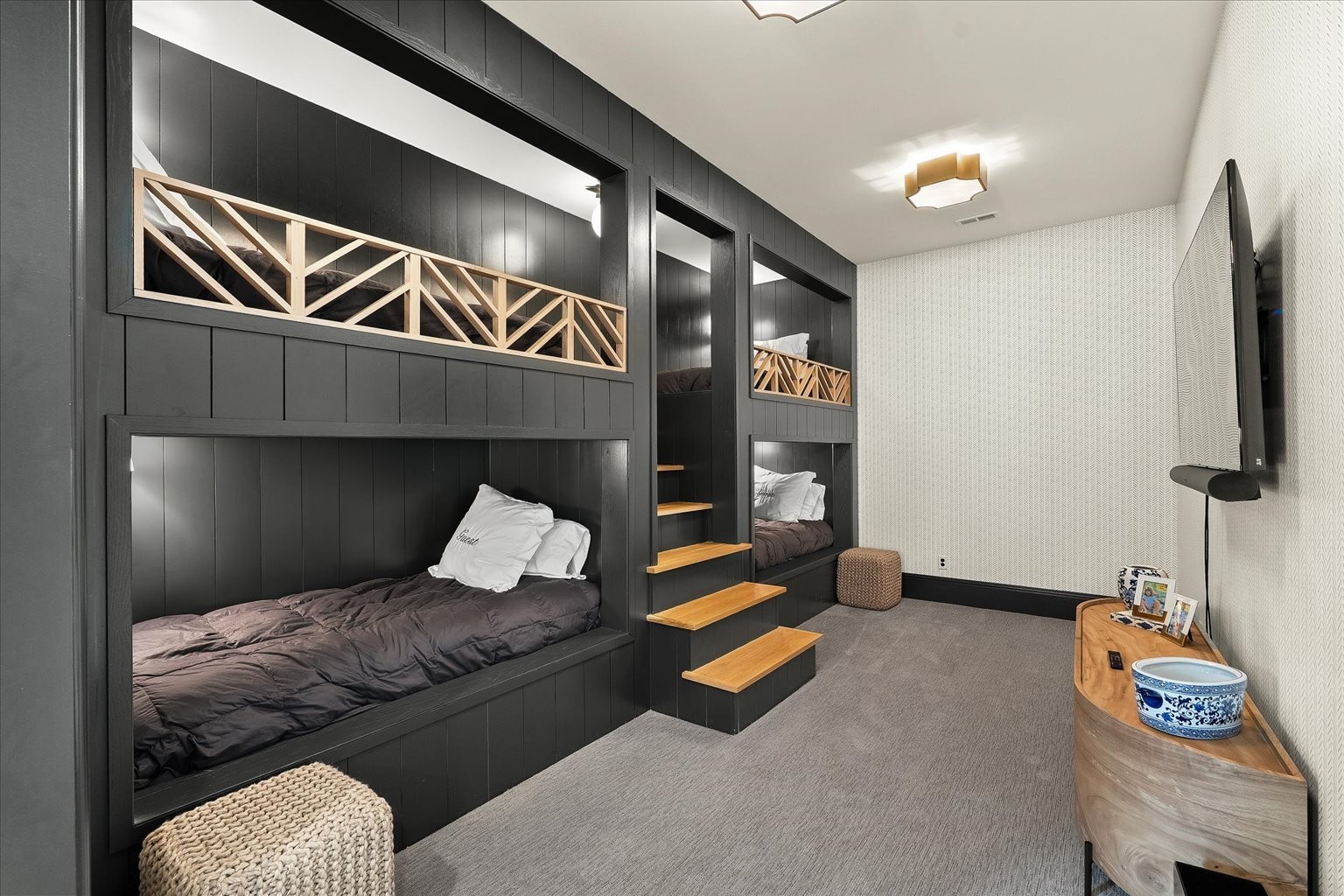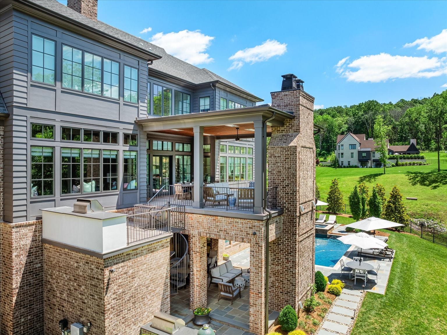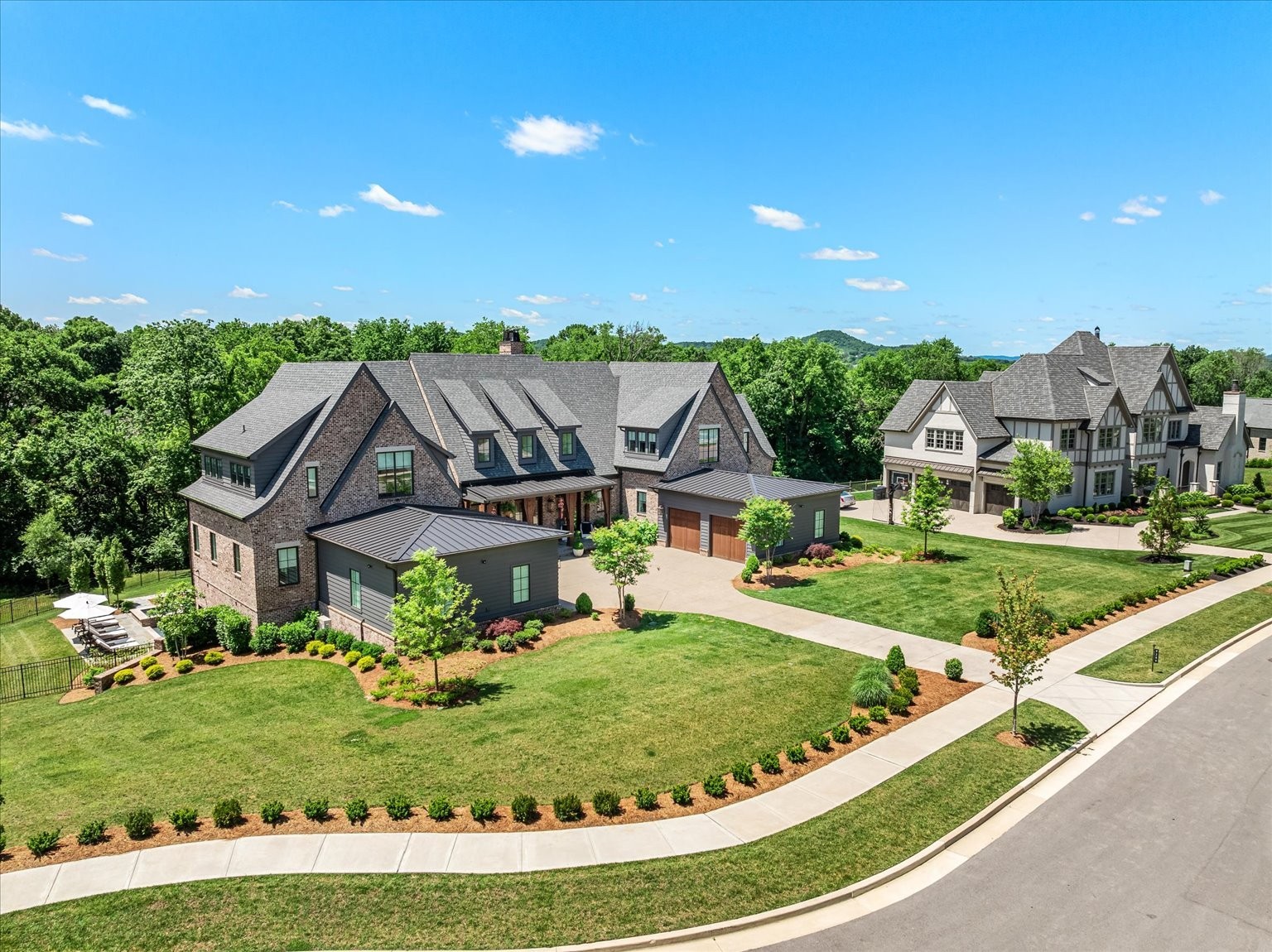 Welcome to an unparalleled luxury estate in the prestigious Witherspoon community of Brentwood, TN. This "Sailer Design" 11,218 sq. ft. home built by Davis Properties sits on an expansive 0.89-acre lot, blending timeless elegance with modern convenience. Boasting 7 bedrooms, 8 full baths, and 1 half bath, this home is an architectural masterpiece designed for both comfort and grandeur. Step inside to discover a grand two-story great room featuring custom built-ins, a fireplace, a wine bar and a Club Room, perfect for entertaining. The gourmet kitchen offers state-of-the-art appliances (Wolf, Sub-Zero, Asko), a spacious island, and a prep pantry featuring Kitchen Aid appliances. It seamlessly connects to the large dining area with picturesque views of the outdoor living area. Beautiful white oak flooring runs in most areas of the home. For your added convenience, the home has laundry facilities on each floor and a Lutron lighting system that controls most of the home. Outside you will find one of two covered porches with a fireplace, in-ceiling heaters (upper level porch) and two grilling stations, all of which overlook the private SiteWorks pool and spa, creating an idyllic setting for relaxation and entertainment. The main level primary suite is a private retreat, featuring a spa-like bathroom with dual closets, motorized blinds and luxurious finishes. Upstairs, three additional ensuite bedrooms, a loft with built-ins, a bonus room, and a secondary laundry room offer versatile living space. The fully finished walk-out basement includes two guest suites, one of which could be considered a second primary suite, a rec room with a fireplace, a kitchenette, an exercise room with a sauna, & a safe room/storm shelter for ultimate peace of mind. A dedicated bunk room adds charm and functionality. Practicality meets sophistication with an elevator serving all three levels, two 2-car garages each with their own mini-split HVAC units, & one garage bay featuring a car lift.