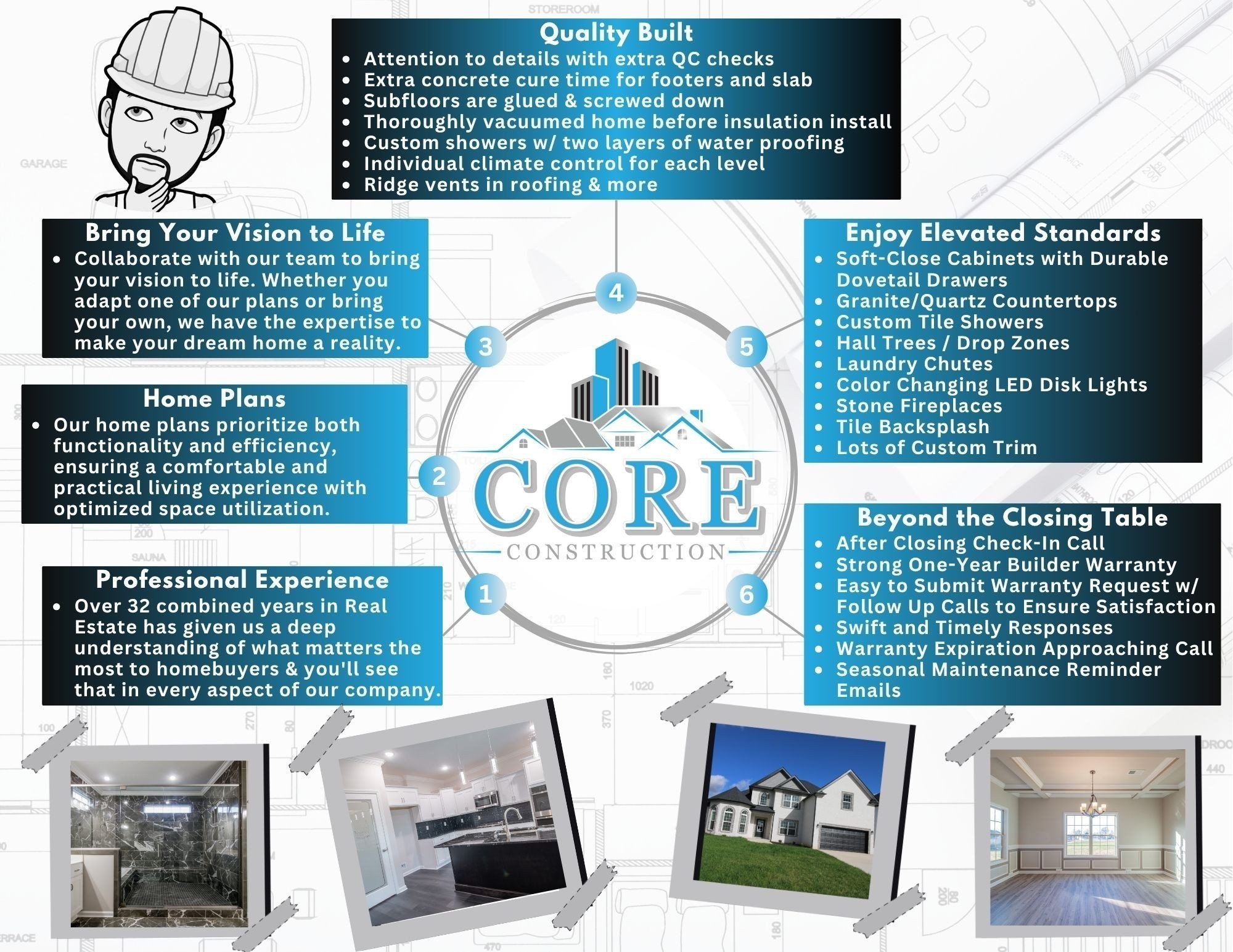 "The Victoria" Built by Core Construction LLC. Large Covered Front Porch & Spacious 2 Story Entry Foyer w/ Wood Flooring Welcomes You In! Spacious Living Rm w/ a Stone FP & Views of the Catwalk Upstairs! Kitchen Features a Cooktop, Smart Double Oven, Huge Island w/ a Sink & Lots of Seating Space, Granite Counters, Cabinets w/ Soft Close Doors & Drawers & a Large Walk-in Pantry! Spacious Formal Dining Rm w/ a Coffered Ceiling! Amazing Primary Suite on Main Level Features 2 Walk-in Closets, Double Vanity, Private Toilet Rm, Luxurious Walk-in Tile Shower w/ 2 Shower Heads & a Garden Tub All Enclosed Behind Glass & Access to the Laundry Rm! Off the Garage is a Mudroom w/ a Built-in Hall Tree & a Laundry Chute! Private Guest Bedroom & Another Full Bathroom Downstairs! Upstairs Features 2 Guest Rooms-Each w/ Walk-in Closets & Connected Full Bathrooms, a Huge Bonus Rm & Attic Storage Space! SPC Flooring Throughout Foyer, Living Rm, Kitchen, Dining & Mud Rm! Crown Molding, Custom Trim, Beautiful Archways & a Large Covered Patio!!