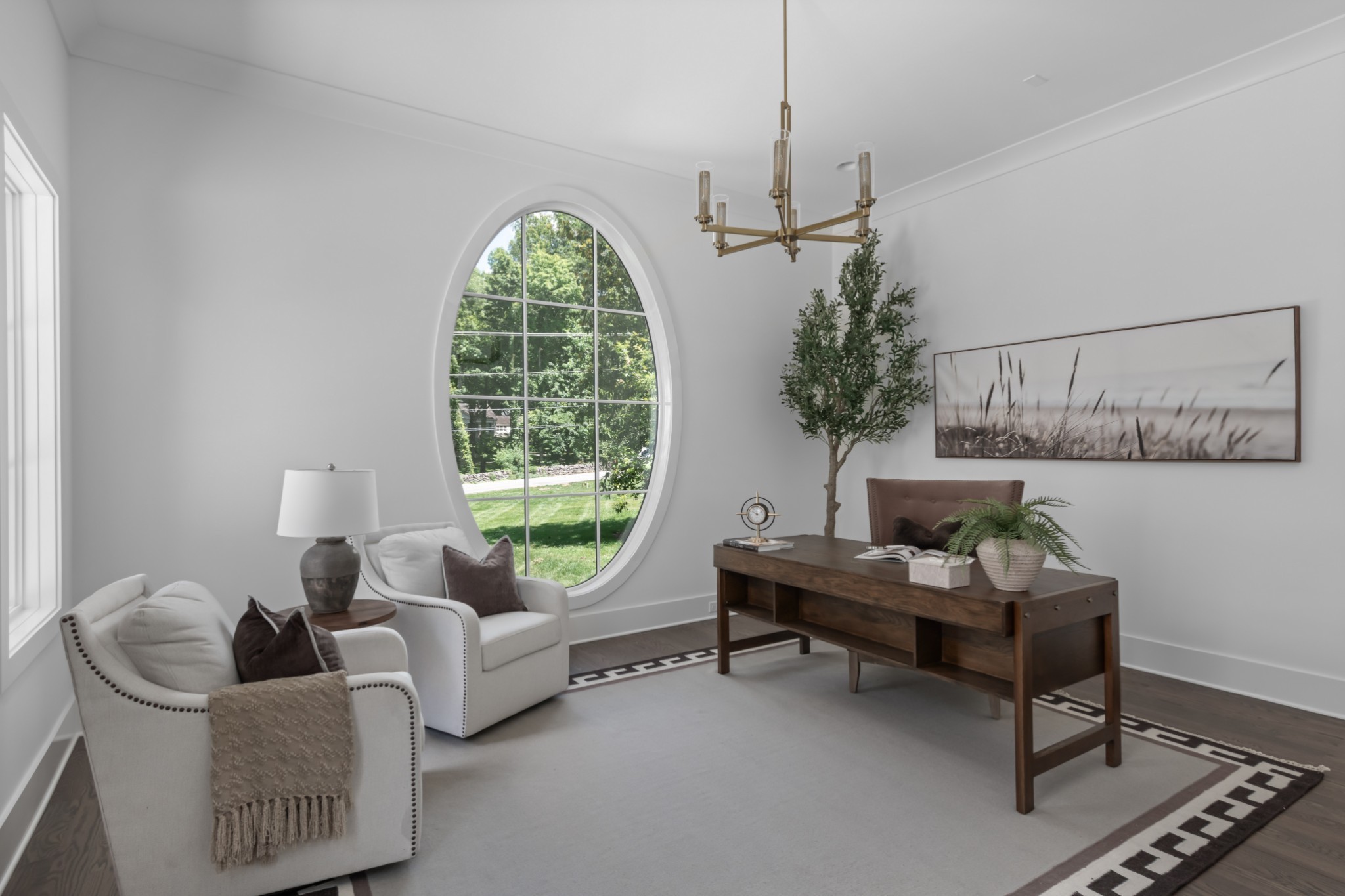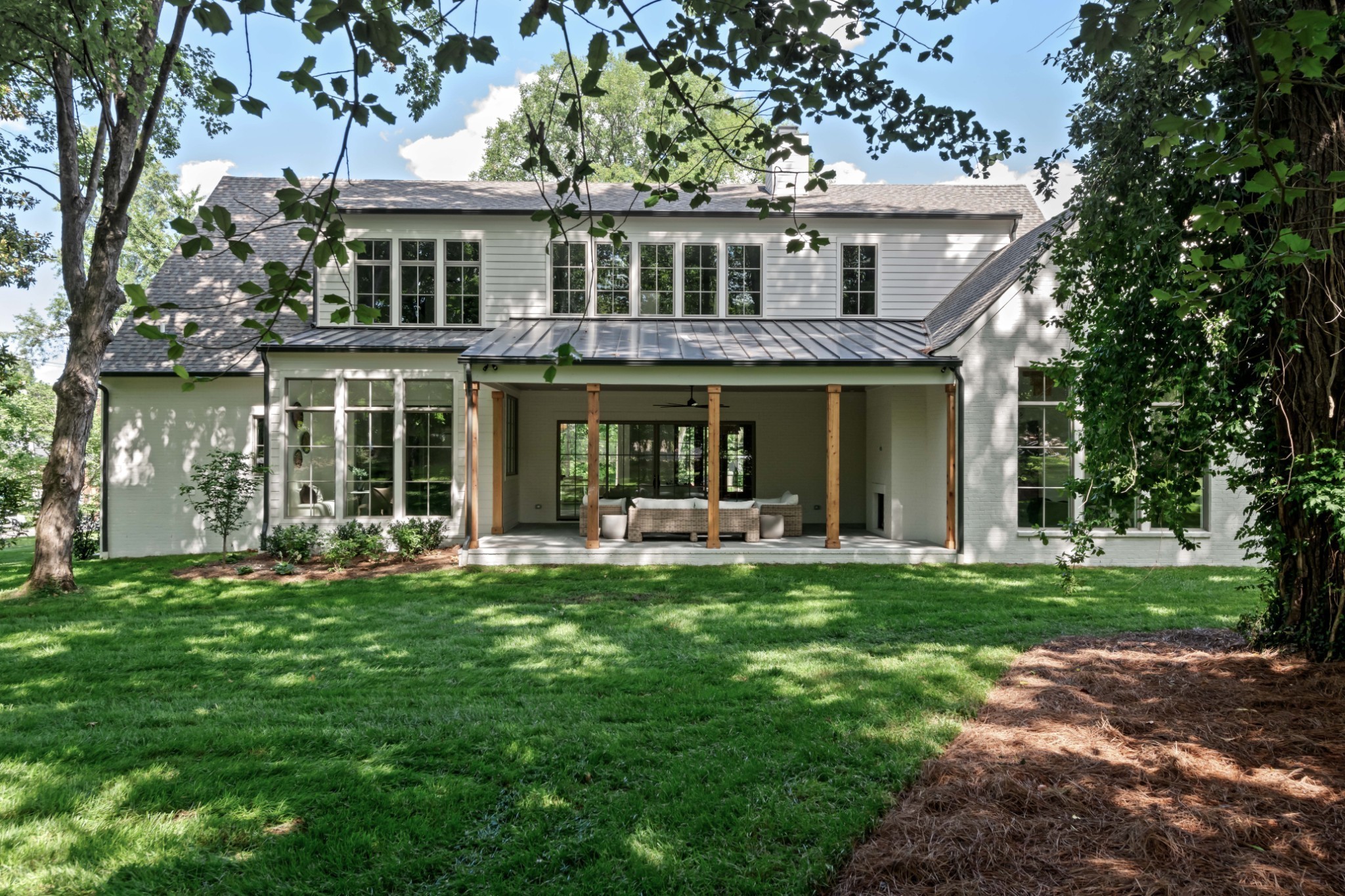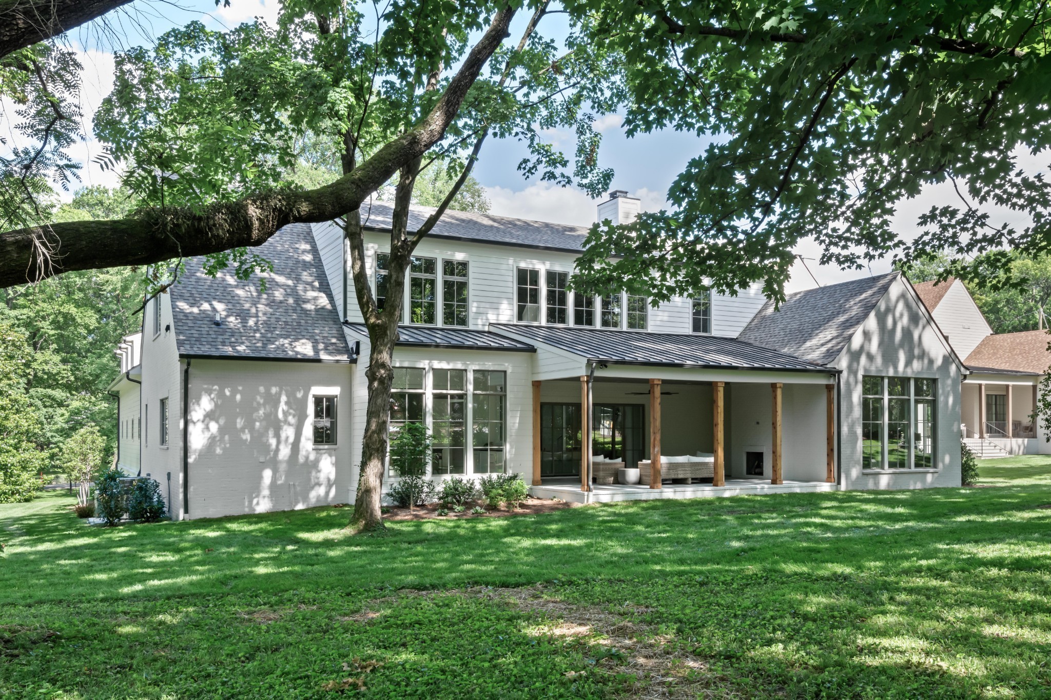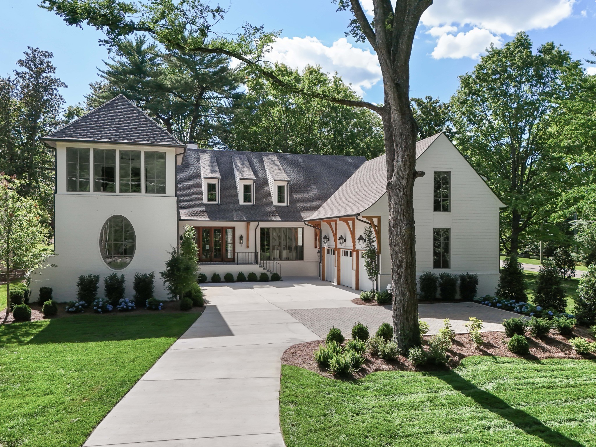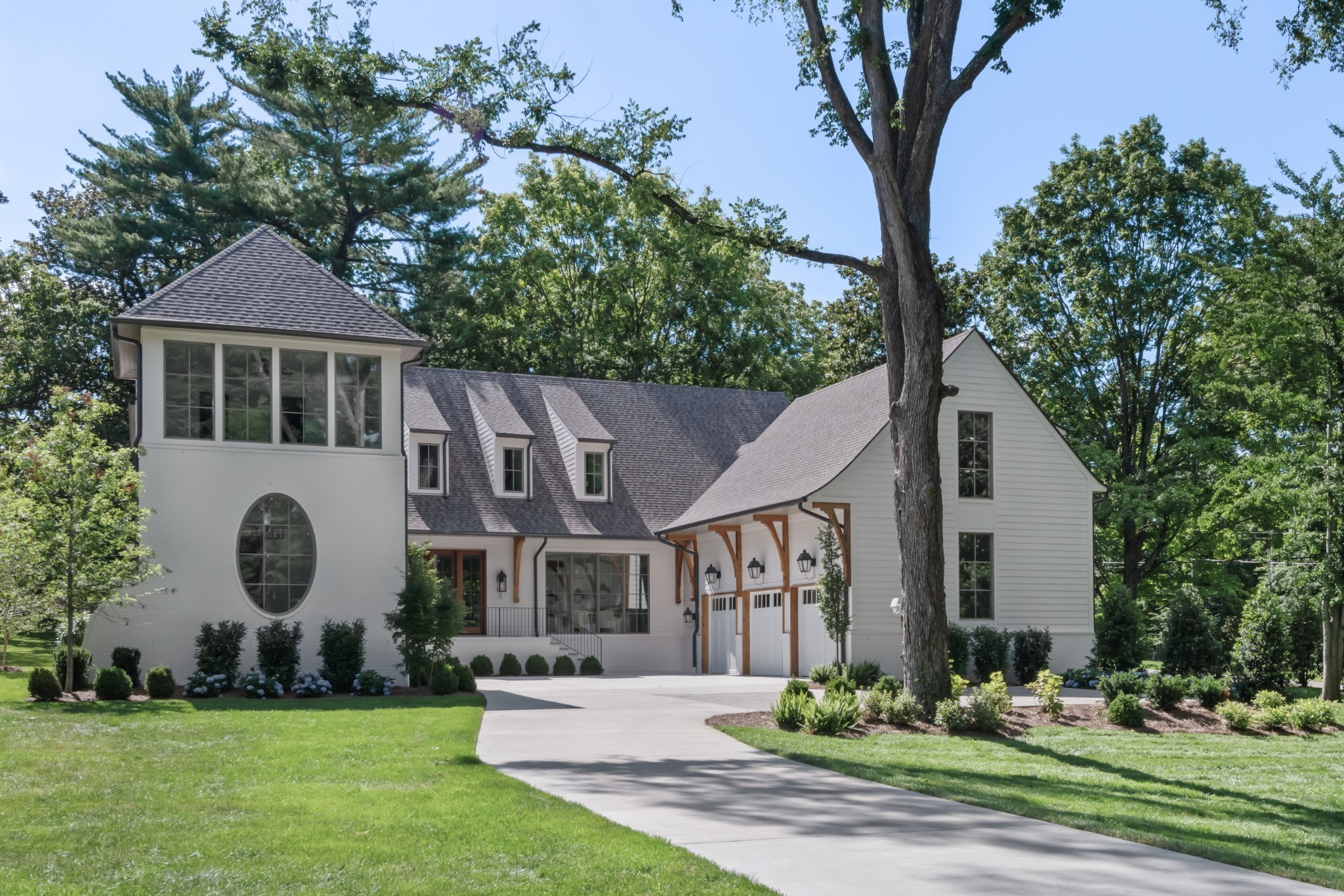Southern charm meets true modern tranquility at this one-of-a-kind Vintage South home. Featuring a first-floor office with an iconic oval window, this striking residence sits on nearly an acre at the corner of Bowling Ave and Woodlawn Dr in one of Nashville's most desirable neighborhoods. Thoughtfully designed to blend seamlessly with its historic surroundings, the home was made for entertaining with a stunning formal dining room, oversized working pantry, and a breakfast nook with bar and French windows that open to a covered patio with fireplace overlooking the spacious backyard.