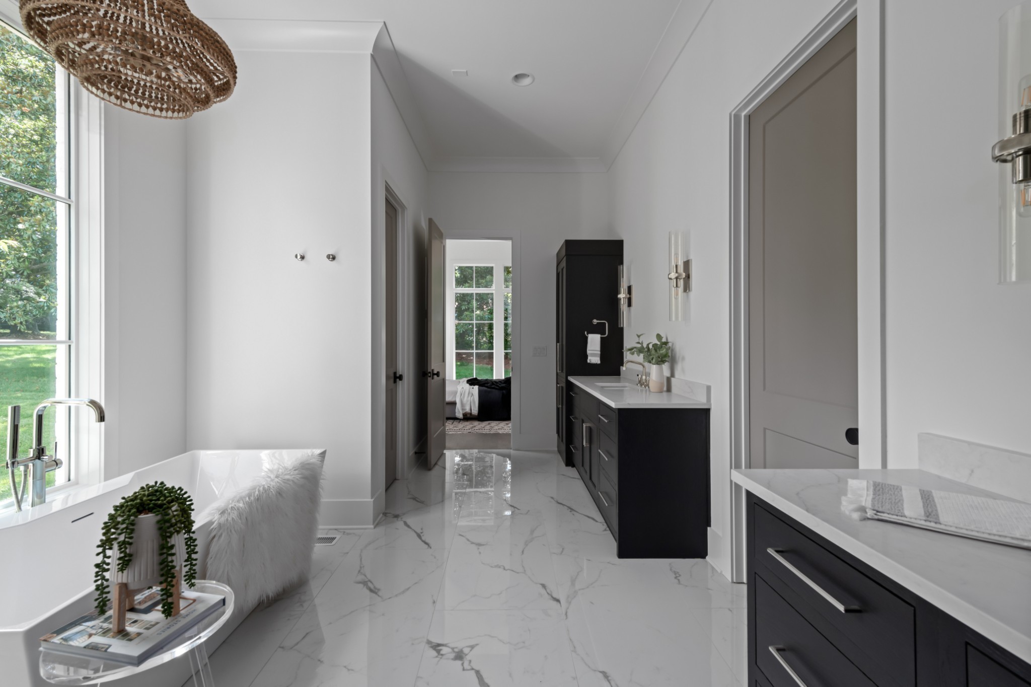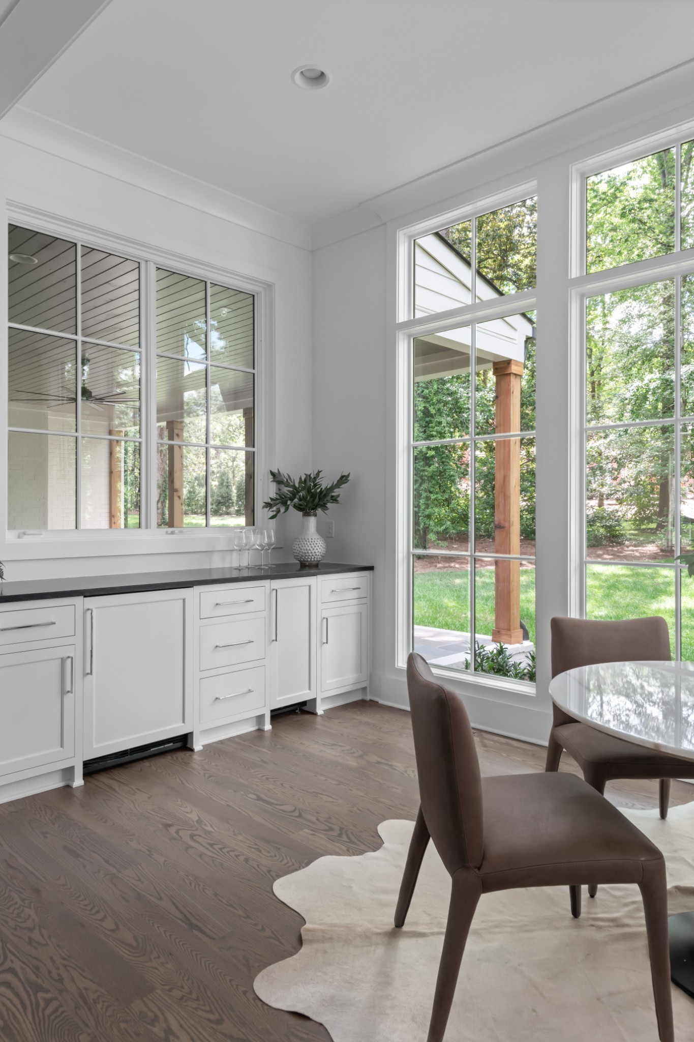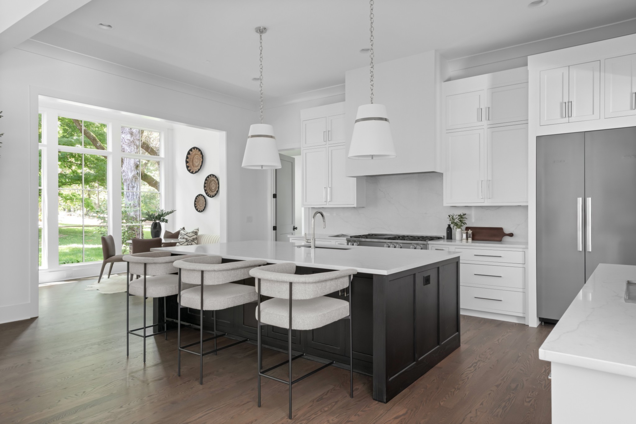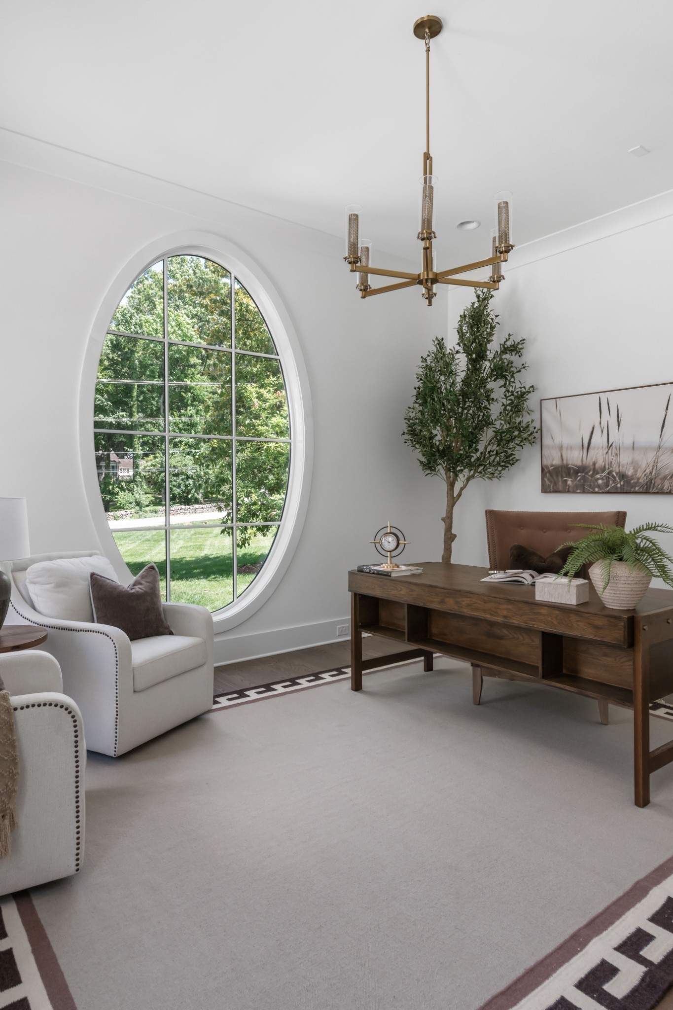 Southern charm meets true modern tranquility at this one-of-a-kind Vintage South home. Featuring a first-floor office with an iconic oval window, this striking residence sits on nearly an acre at the corner of Bowling Ave and Woodlawn Dr in one of Nashville's most desirable neighborhoods. Thoughtfully designed to blend seamlessly with its historic surroundings, the home was made for entertaining with a stunning formal dining room, oversized working pantry, and a breakfast nook with bar and French windows that open to a covered patio with fireplace overlooking the spacious backyard.