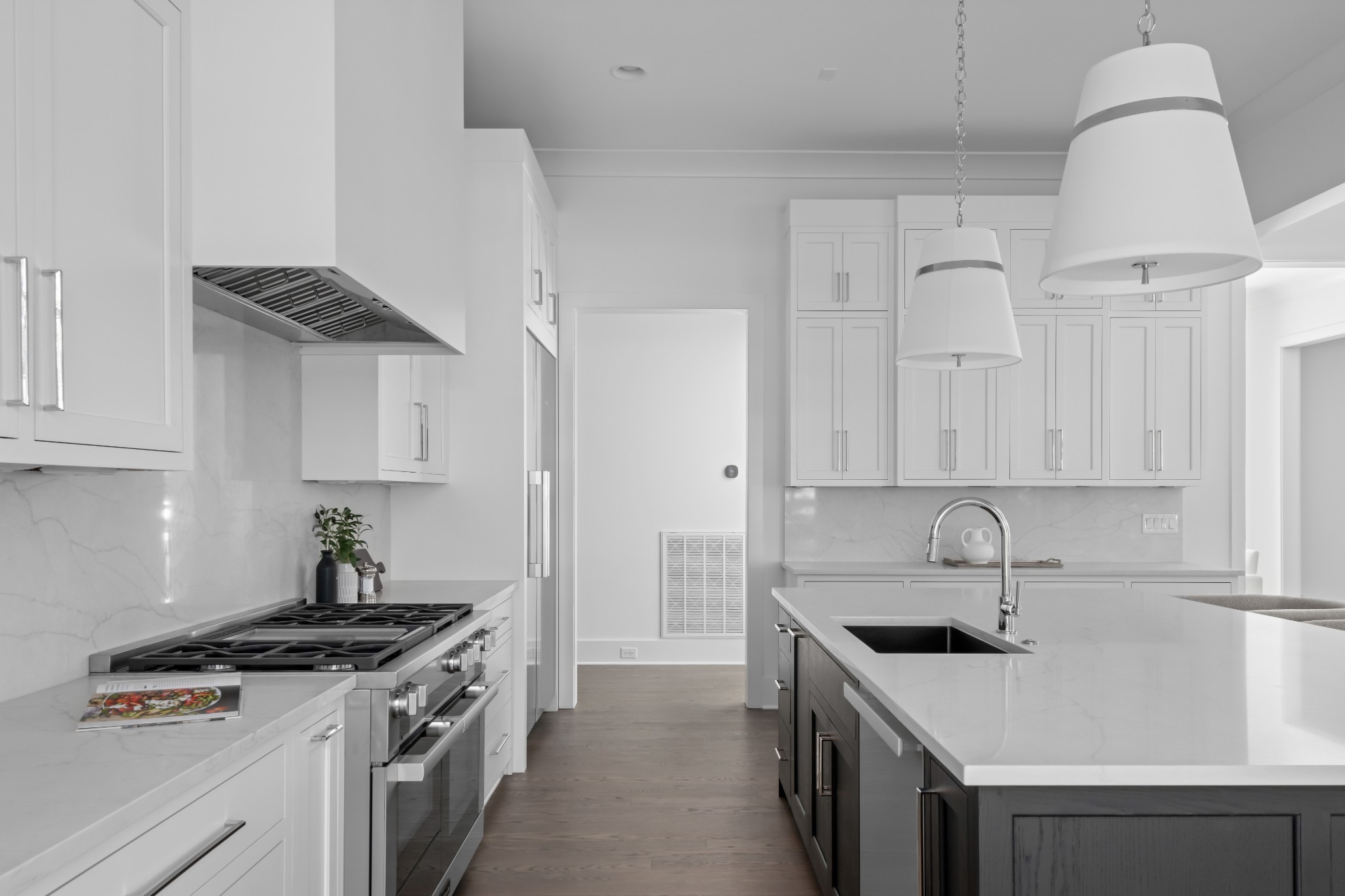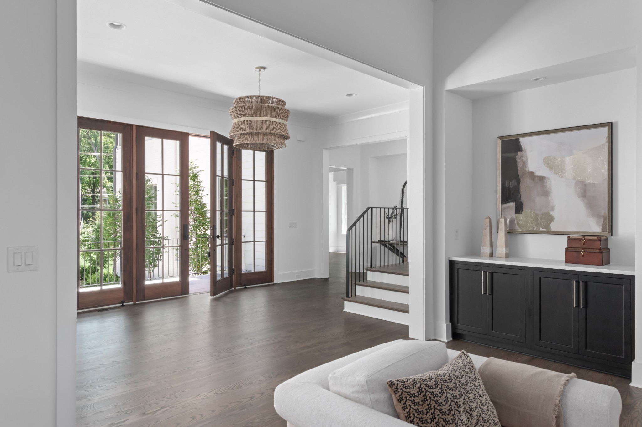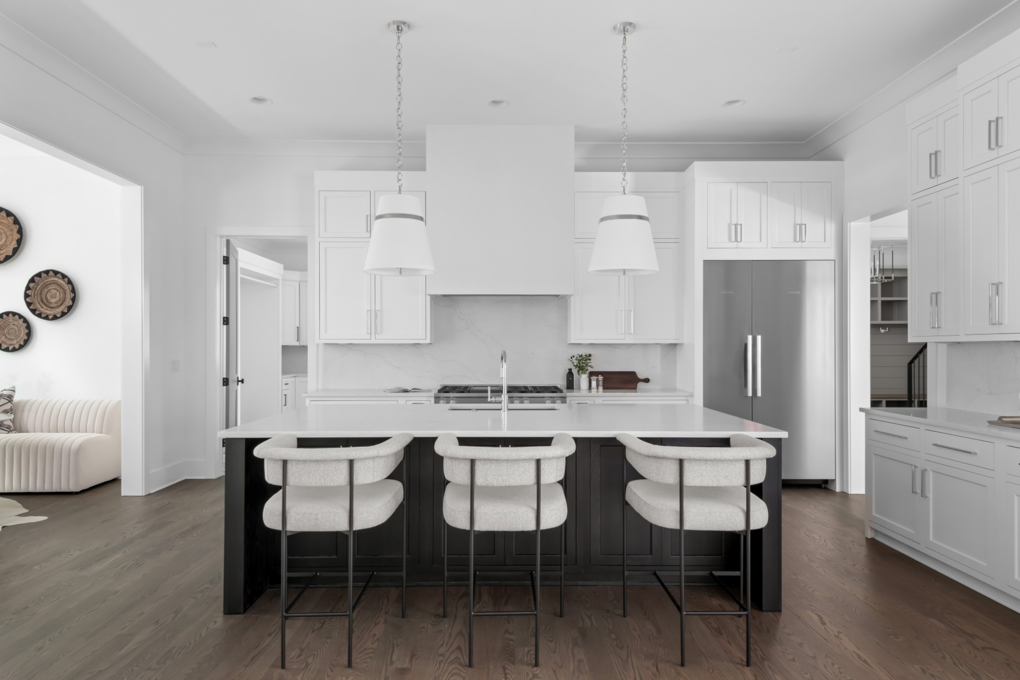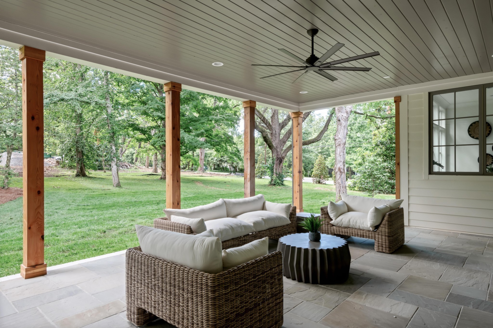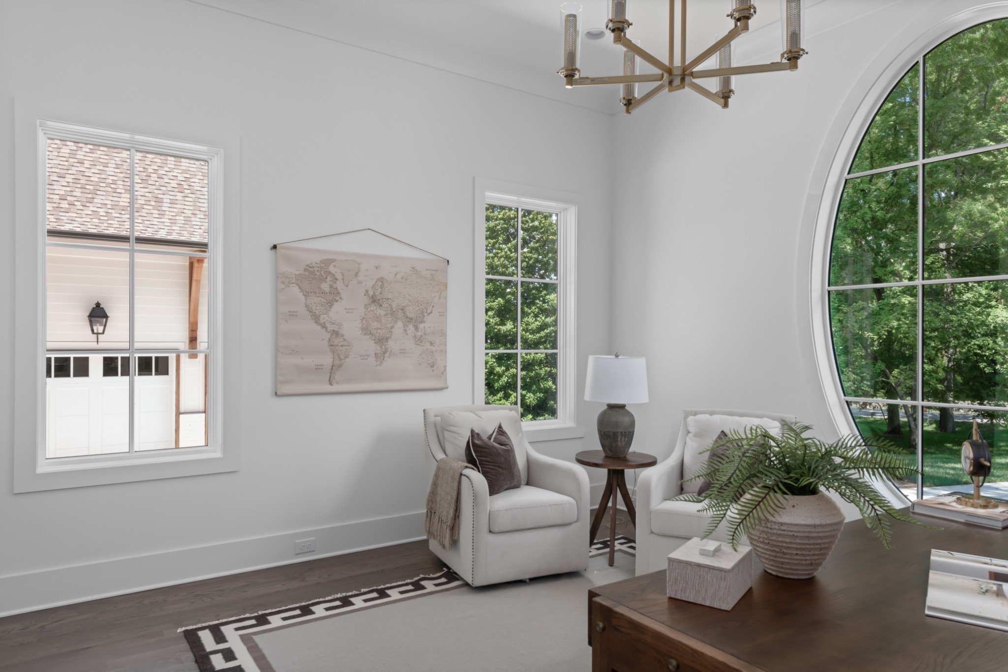 Southern charm meets true modern tranquility at this one-of-a-kind Vintage South home. Featuring a first-floor office with an iconic oval window, this striking residence sits on nearly an acre at the corner of Bowling Ave and Woodlawn Dr in one of Nashville's most desirable neighborhoods. Thoughtfully designed to blend seamlessly with its historic surroundings, the home was made for entertaining with a stunning formal dining room, oversized working pantry, and a breakfast nook with bar and French windows that open to a covered patio with fireplace overlooking the spacious backyard.